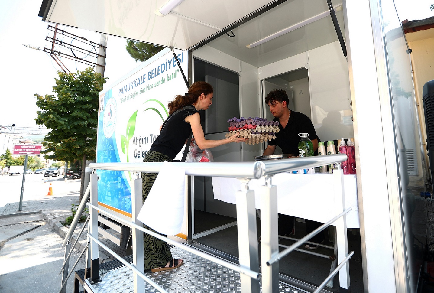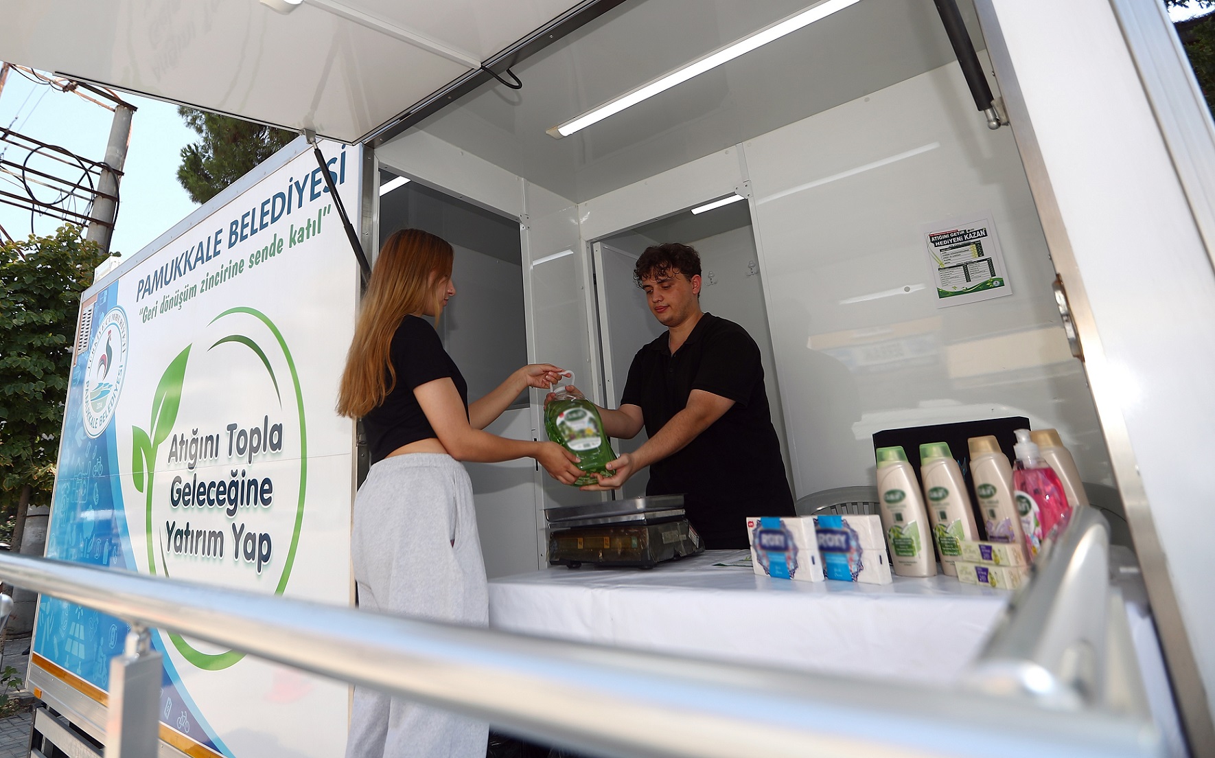 İklim değişikliği ve sıfır atık konusunda önemli çalışmalara imza atan T.C. Pamukkale Belediyesi, Denizli’de bir ilki daha hayata geçirdi. “Mobil Atık Toplama Aracı”, mahalle mahalle dolaşarak vatandaşların geri dönüşebilen atıklarını toplamaya başladı. Pamukkaleliler topladıkları puanlarla çeşitli hediyeler alabiliyor.