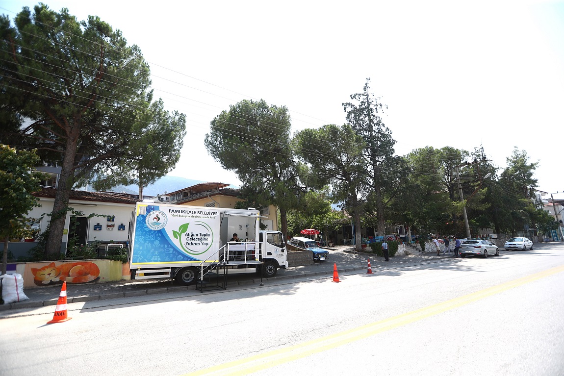 Pamukkale Belediye Başkanı Ali Rıza Ertemur, iklim değişikliği ve sıfır atık konusunda önemli çalışmalar imza attıklarını belirterek, “İlçe genelinde birçok mahallemizde atıkların ayrıştırılması için atık getirme merkezlerimiz var. Bağbaşı Mahallesi’nde ise ‘Geri Dönüşüm Noktası’ hizmet veriyor. Yeni hayata geçecek olan ‘Mobil Atık Toplama Aracı’ projemiz ile şimdilik şehir merkezindeki 27 mahallemizde yaşayan vatandaşlarımız atıkları bu araca teslim edip, kartlarında puan biriktirebilecekler. Vatandaşlarımızda atık toplama ve ayrıştırma bilinci oluşturmak ve teşvik etmek amacıyla çeşitli hediyeler verilecek. Bu proje ile amacımız, evlerde ayrıştırmayı teşvik ederek sıfır atığa katkı sağlamak ve bilinçli nesiller yetiştirmektir. Hedefimiz ise geleceğe daha temiz ve yaşanabilir bir Pamukkale bırakmak” dedi.