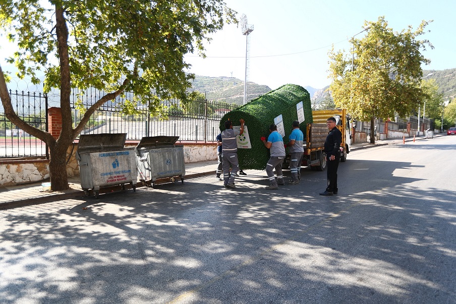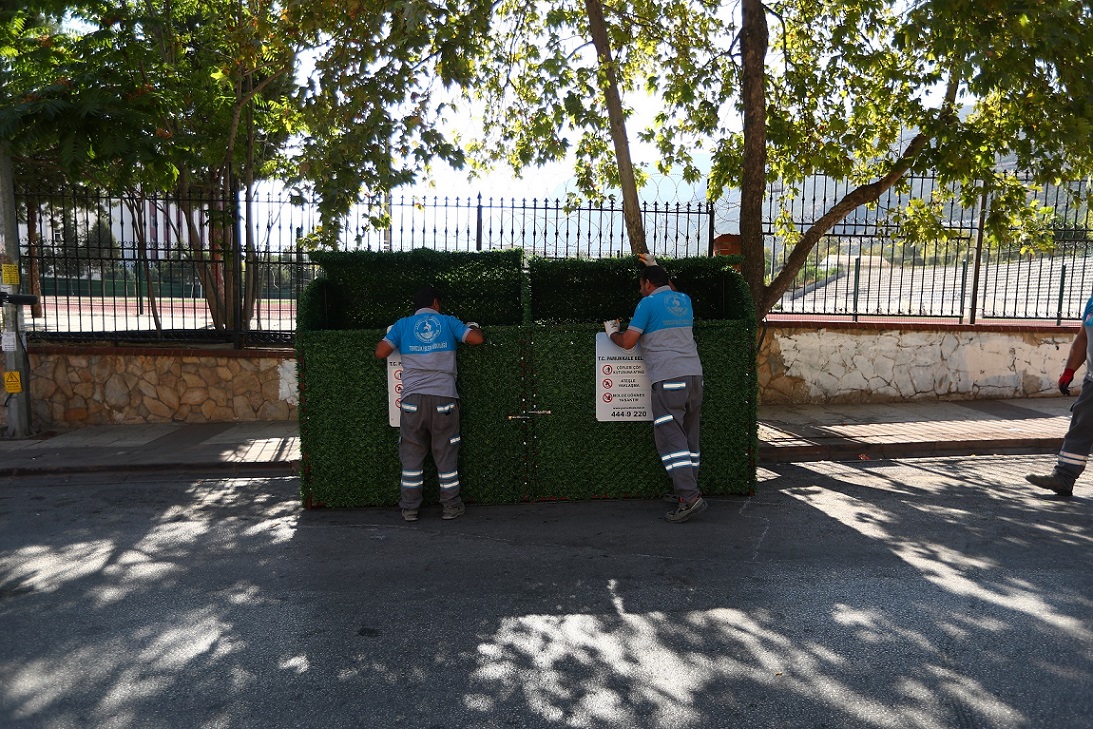 T.C. Pamukkale Belediyesi Temizlik İşleri Müdürlüğü, şehir estetiğini ve çevre düzenini ön planda tutarak örnek bir uygulamaya daha imza attı. Ekipler, ilçenin muhtelif noktalarındaki çöp konteynerlerini özel olarak tasarlanmış yeşil çitlerle kaplayarak hem görsel kirliliği önlemeyi hem de çevreye daha modern ve temiz bir görünüm kazandırmayı hedefliyor.