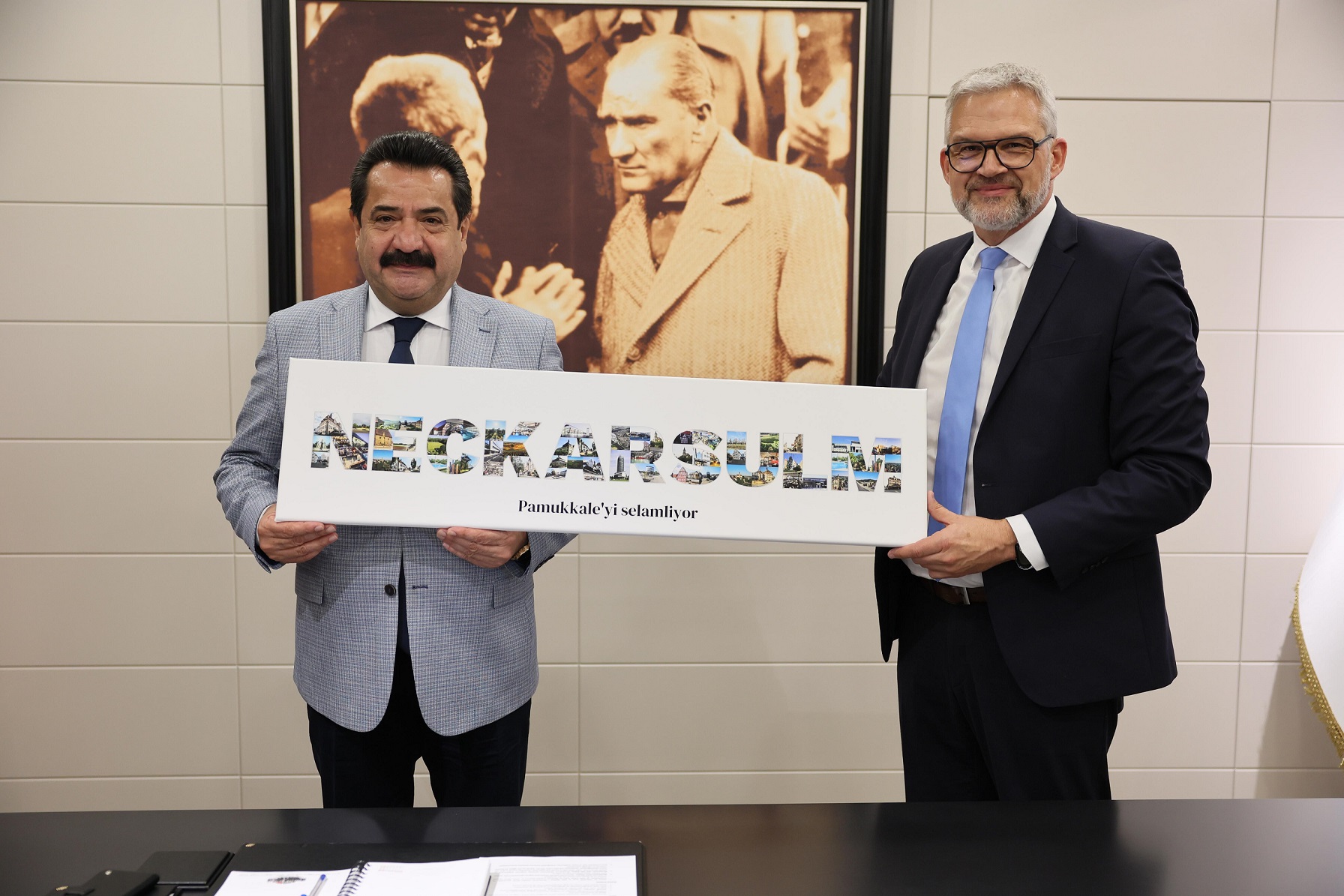 Geçtiğimiz eylül ayında Pamukkale Belediyesi Olağan Meclisi'nde alınan kararla Pamukkale ve Neckarsulm’un kardeş şehir olması kararlaştırılmıştı. Bu kararın ardından, Alman heyeti, Başkan Ali Rıza Ertemur ile görüşmek ve Pamukkale’yi daha yakından tanımak amacıyla ziyarete geldi. Heyeti, Pamukkale Belediyesi’nde bizzat Başkan Ertemur karşıladı. Ziyarete Neckarsulm Belediye Başkanı Steffen Hartwig’in yanı sıra; CDU Parlamento Grubu Başkanı Eberhard Jochim, CDU Meclis Üyesi Jasmin Zoll, SPD Meclis Üyesi Tanja Wache, BIG Meclis Üyesi Hamit Kaya gibi siyaset ve sivil toplum temsilcileri katıldı.