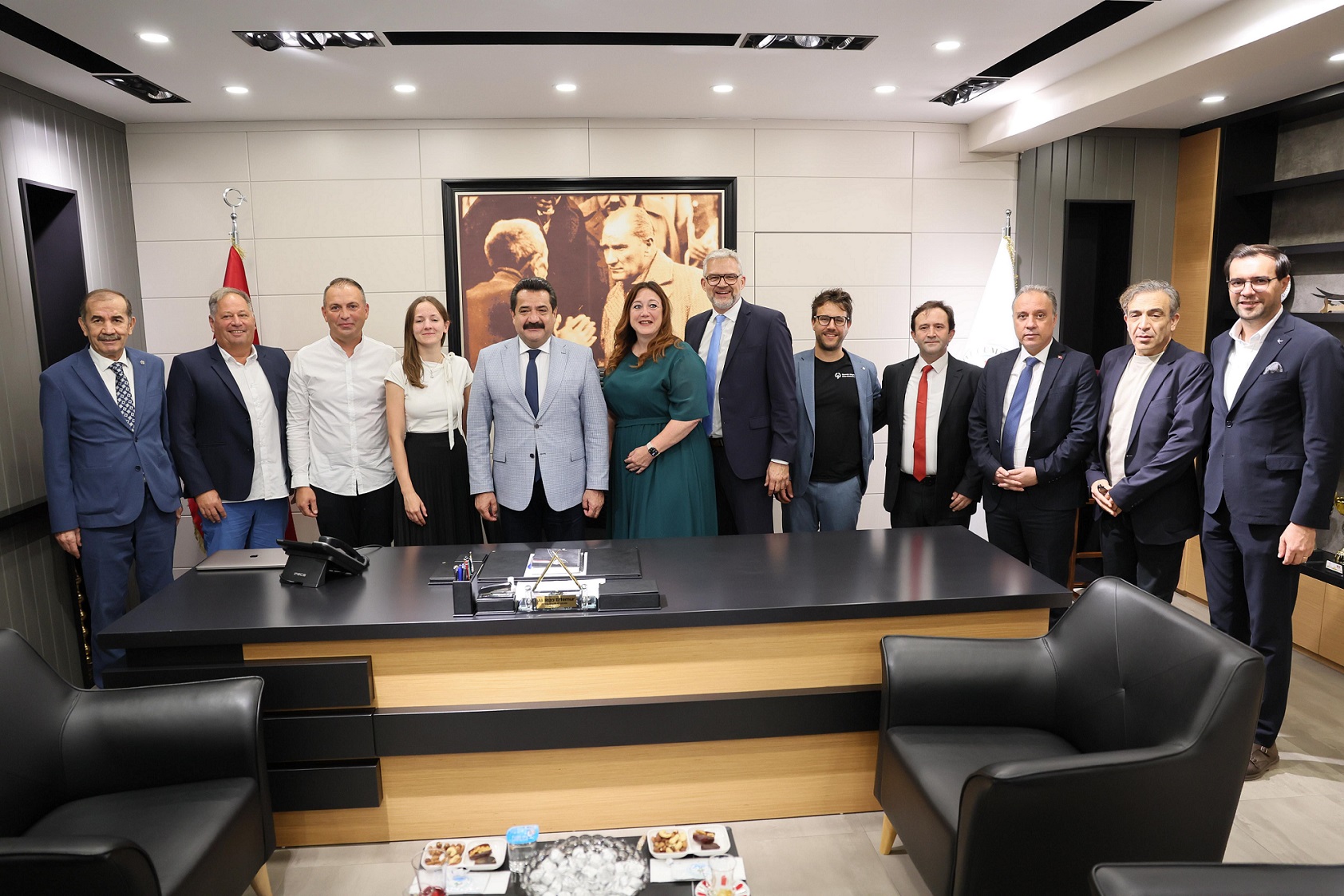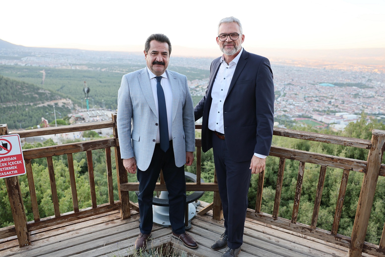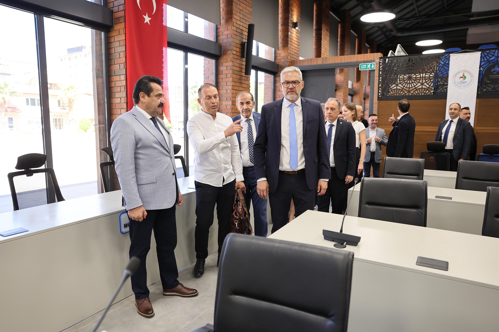 Ziyaretin devamında heyet, Başkan Ertemur eşliğinde Pamukkale Belediyesi Meclis Salonu’nu gezerek şehrin dinamikleri ve geleceğe yönelik projeleri hakkında bilgi aldı. Program kapsamında, heyet Türkiye’nin en büyük tematik kent ormanı parkı olan Seyir Tepesi’ne çıkarak Pamukkale’nin eşsiz manzarasını kuşbakışı izleme fırsatı buldu. Ziyaretin son bölümünde taraflar, iki şehir arasında geliştirilebilecek ortak projeler ve yatırım alanları üzerine fikir alışverişinde bulundu. İkili görüşmelerin ardından heyet, Denizli’den ayrıldı.