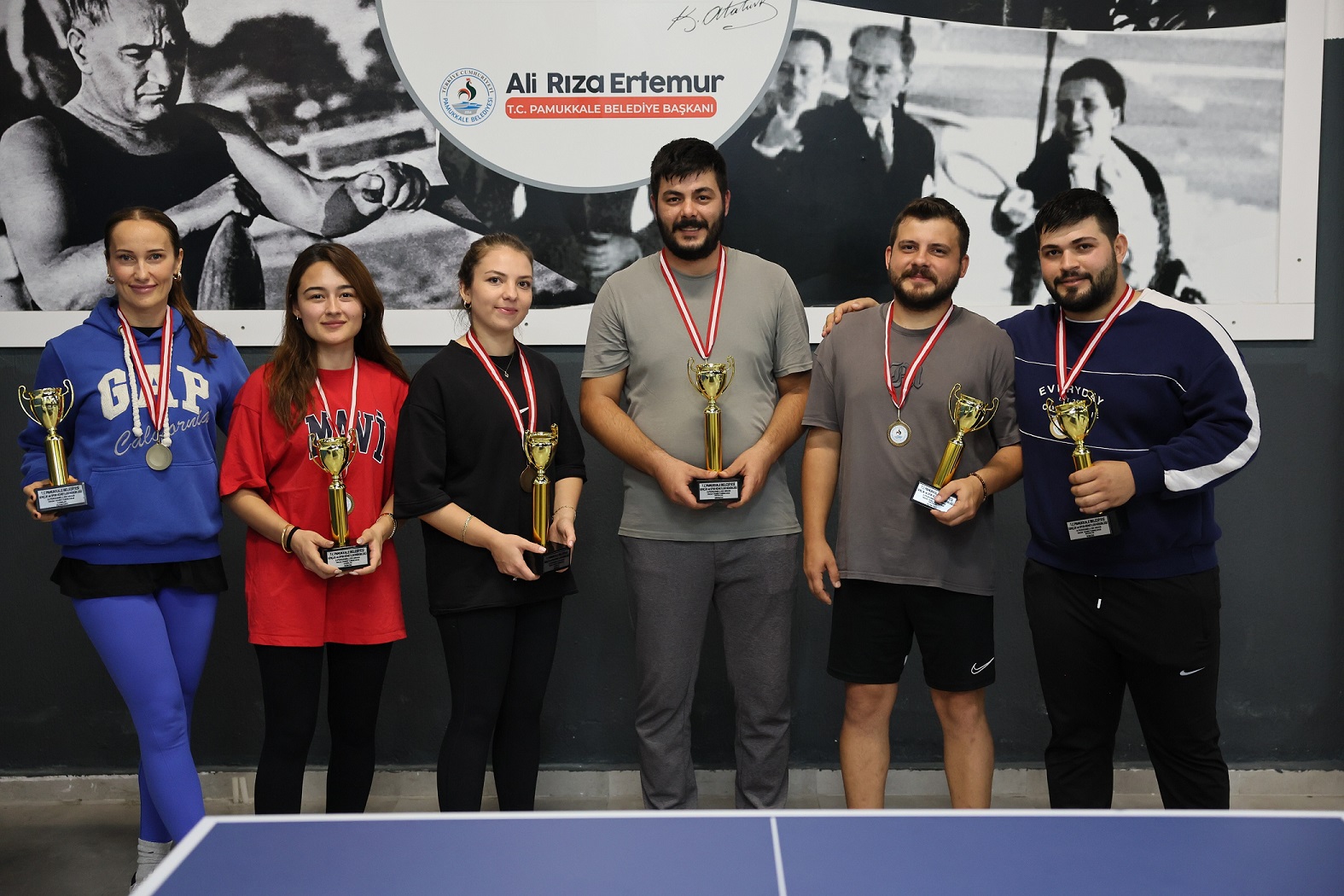 Pamukkale Belediyesi 2. Personeller Arası Masa Tenisi Turnuvası’nda kıyasıya mücadele ederek dereceye giren personeller, performanslarıyla beğeni topladı. Kadınlar kategorisinde birincilik kürsüsüne Şükran Özkan çıkarken, Nurcan Çetinkaya ikinci, Tuğba İbanoğlu üçüncü oldu. Erkekler kategorisinde ise Kenan Kurt birinci, Akif Özkan ikinci, Mehmet Avcıl üçüncü sırada yer aldı. Başarılı sporcular, turnuvanın finalinde düzenlenen törenle madalyalarını Pamukkale Belediye Başkan Yardımcısı Av. Uğur Çizmecioğlu’nun elinden aldı.