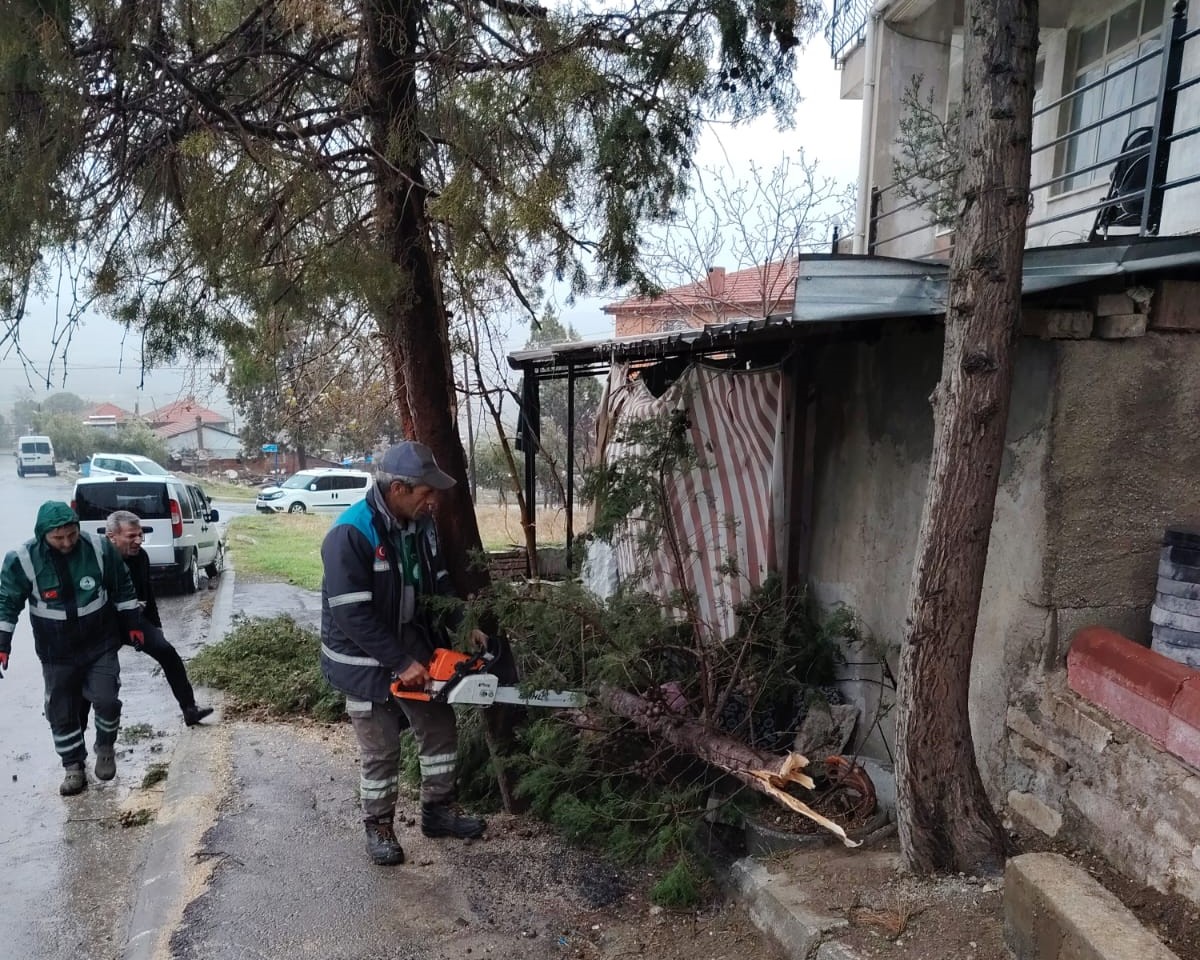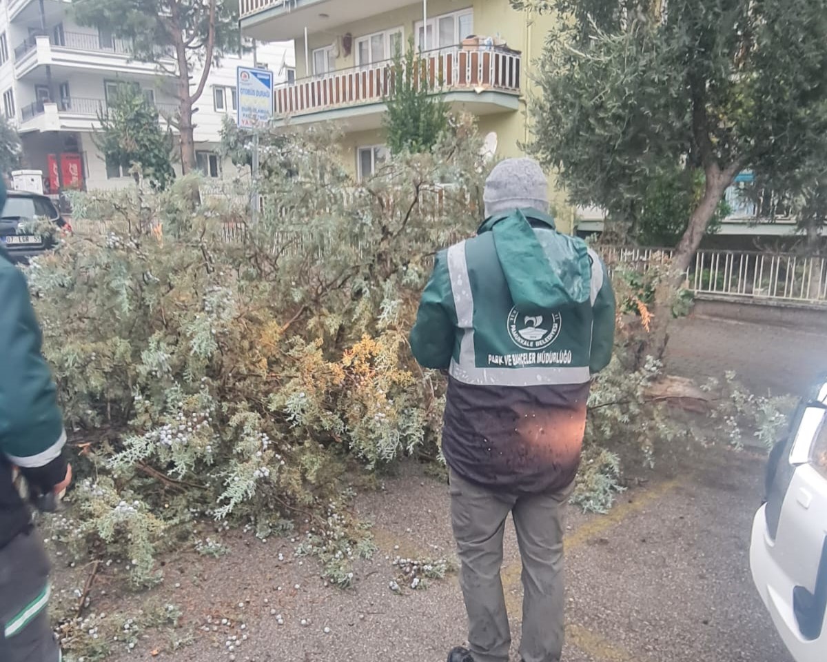 Pamukkale ilçesinde, fırtınanın etkisiyle yaya ve araç trafiğini tehlikeye sokan devrilen ağaçlar, belediye ekiplerince kontrollü şekilde kesilerek kaldırıldı. Çatı uçması yaşanan bölgelerde ise olası yaralanmaların önüne geçmek adına geniş güvenlik önlemleri alındı. Çözüm odaklı bir çalışma yürüten ekipler, stratejik noktalarda yaptıkları müdahalelerle ulaşımın aksamasını engelledi.
