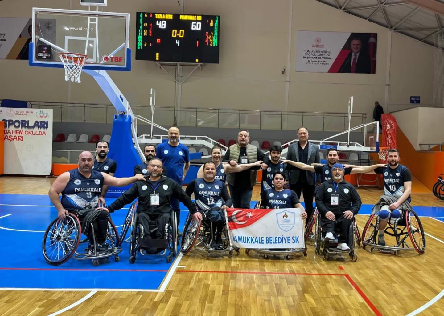 Türkiye Bedensel Engelliler Spor Federasyonu (TBESF) 1. Ligi’nde fırtına gibi esen Pamukkale Belediyespor Tekerlekli Sandalye Basketbol Takımı, deplasmanda karşılaştığı Tuzla Belediyesi Engelliler Spor Kulübü’nü 60-48 mağlup ederek şampiyonluk yolunda dev bir adım daha attı.