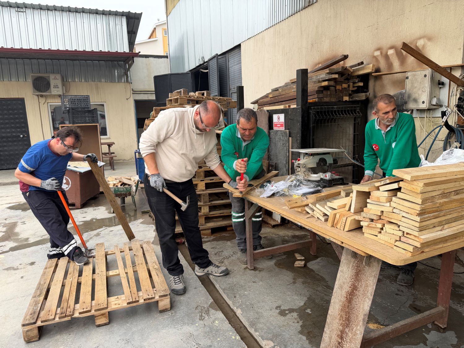 Er-Bakır tesislerinde kullanım ömrünü tamamlamış atıl durumdaki paletler, Pamukkale Belediyesi ekiplerine teslim edilmek üzere hazırlandı. Belediye araçlarıyla toplanan bu atık paletler, geri dönüşüm sürecine dahil edilerek kedi kulübesi formuna dönüştürüldü.