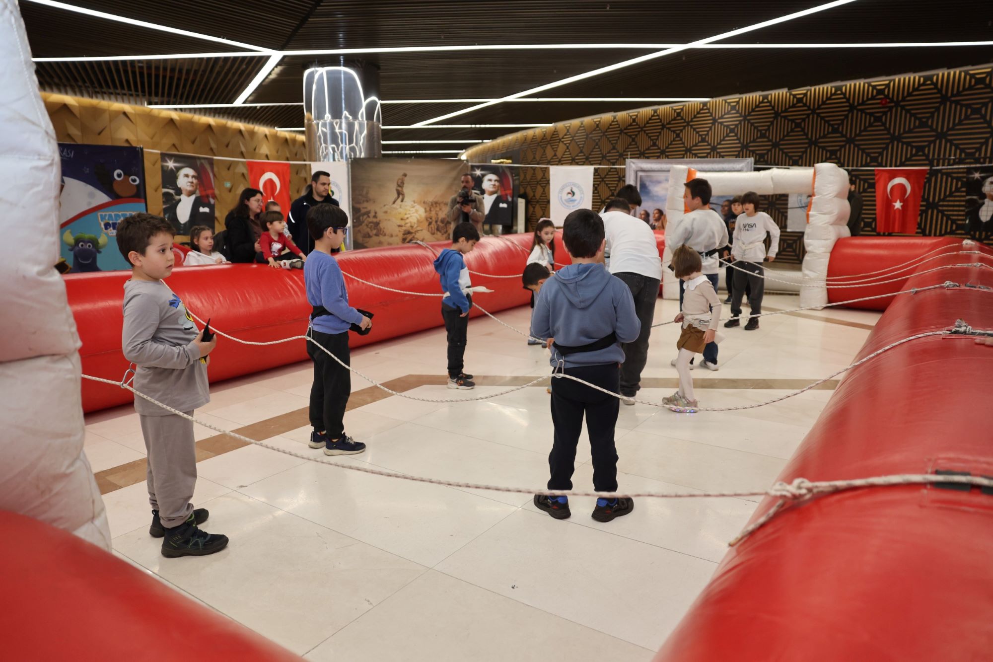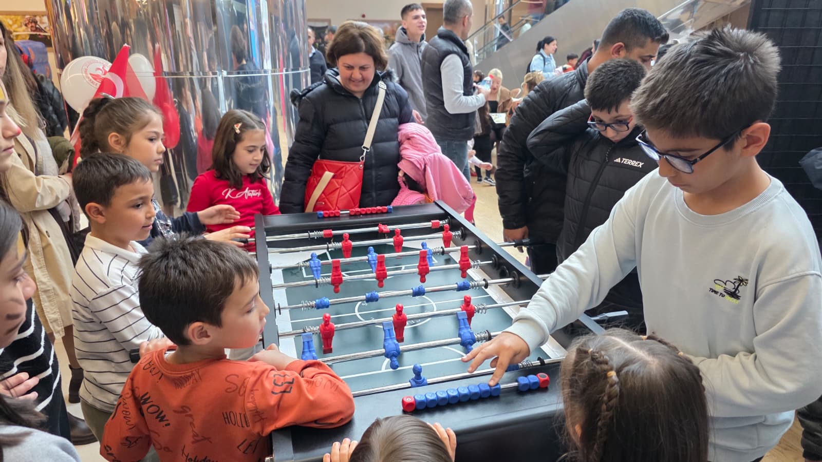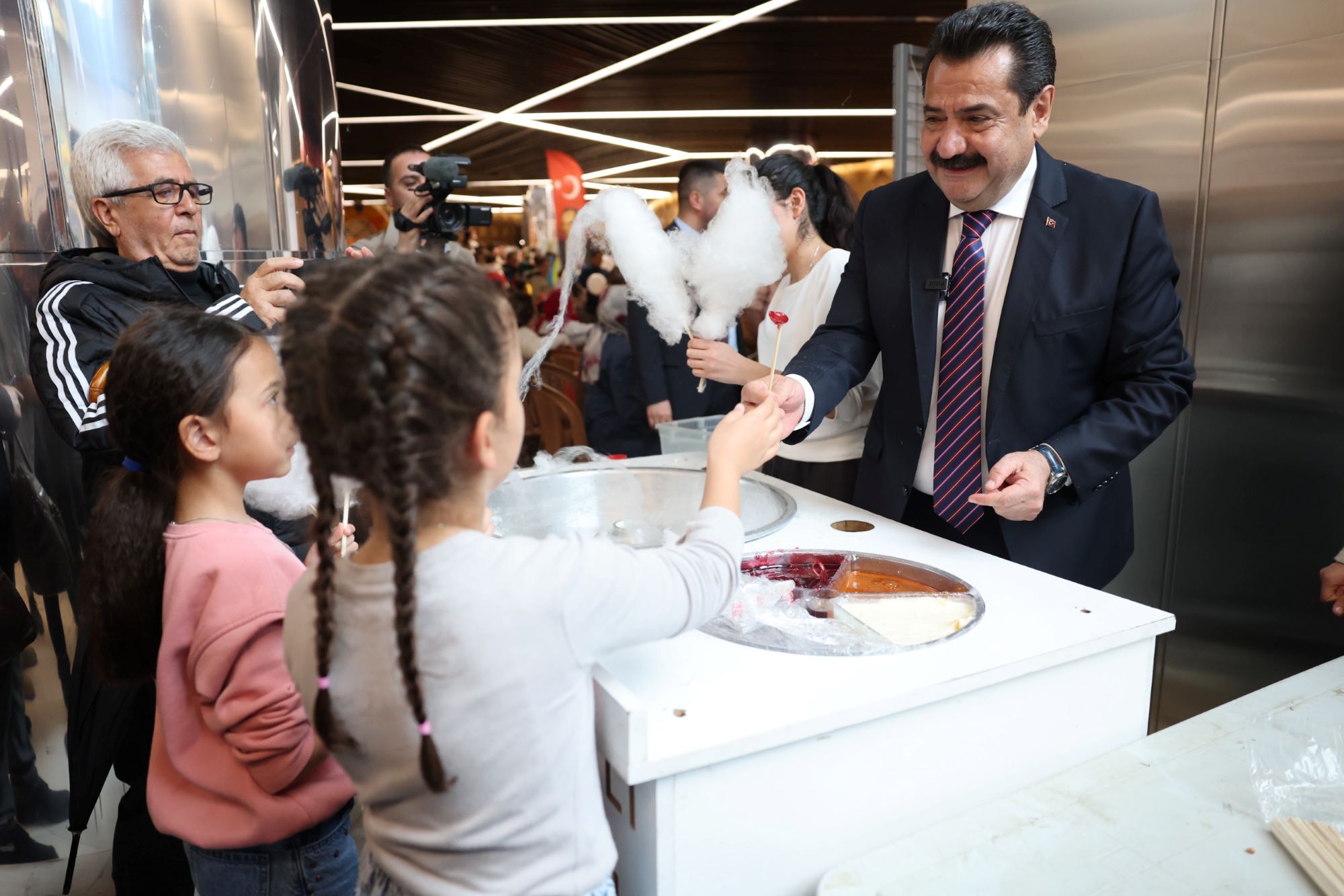 Alanı dolduran binlerce çocuğa dağıtılan Türk bayrakları ve renkli balonlar, merkezi adeta kırmızı-beyaz bir görsel şölene çevirerek bayram ruhunu doruğa çıkardı. Bu coşkuya eşlik eden taze pamuk şeker, popcorn ve geleneksel Osmanlı macunu gibi ücretsiz ikramlar ise minik misafirlerin bayram sevincine tatlı bir dokunuş kattı.