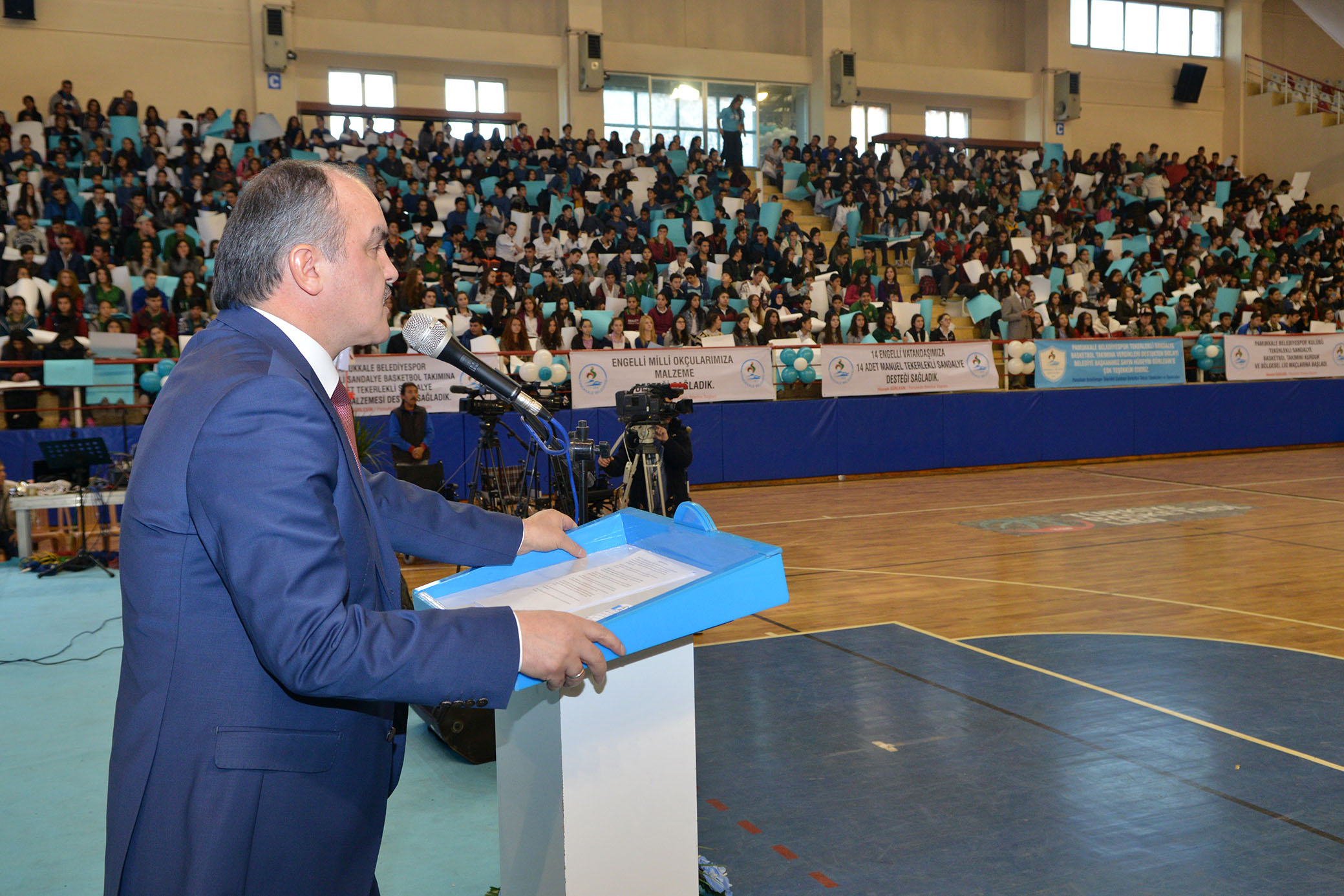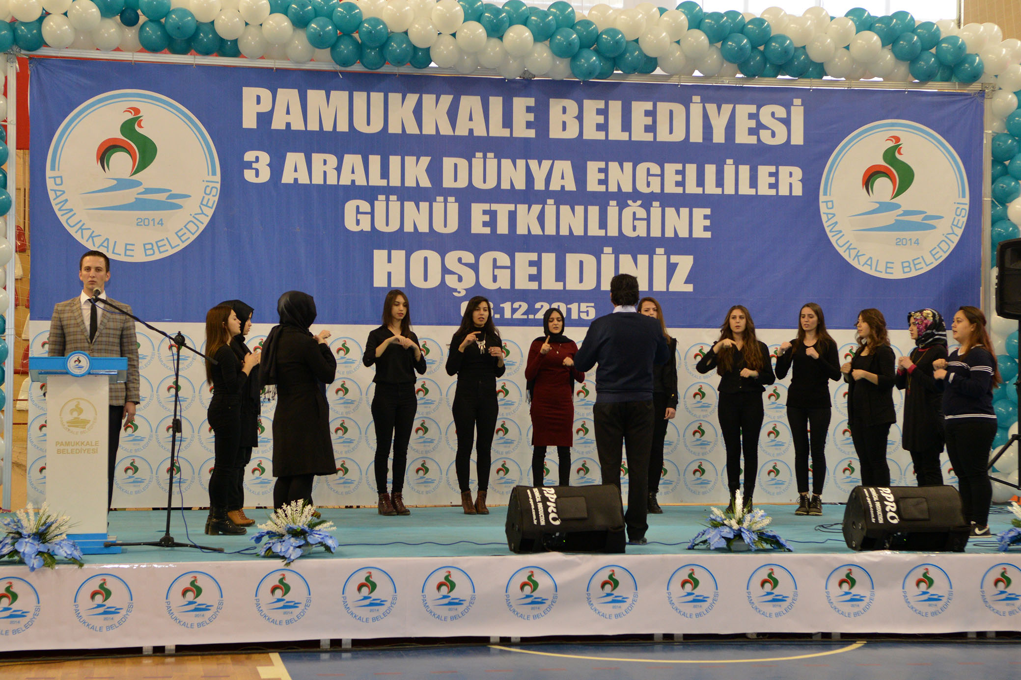 Pamukkale Belediyesi’nin 3 Aralık Dünya Engelliler Gününe özel hazırladığı etkinlik Hasan Güngör Kapalı Spor Salonunda gerçekleştirildi. Etkinliğe Denizli Vali Yardımcısı Cengiz Ata, Denizli Büyükşehir Belediye Başkanı Osman Zolan, Pamukkale Belediye Başkanı Hüseyin Gürlesin, Denizli Milletvekilleri Şahin Tin, Cahit Özkan, Ak Parti İl Başkanı Necip Filiz, Pamukkale Kaymakamı Veysel Beyru, Ak Parti Pamukkale İlçe Başkanı Hasan Aracı, daire müdürleri, STK temsilcileri, vatandaşlar ve çok sayıda öğrenci katıldı. Saygı duruşu ve İstiklal Marşı’nın okunmasının ardından etkinliğin açış konuşmasını Pamukkale Belediye Başkanı Hüseyin Gürlesin yaptı.