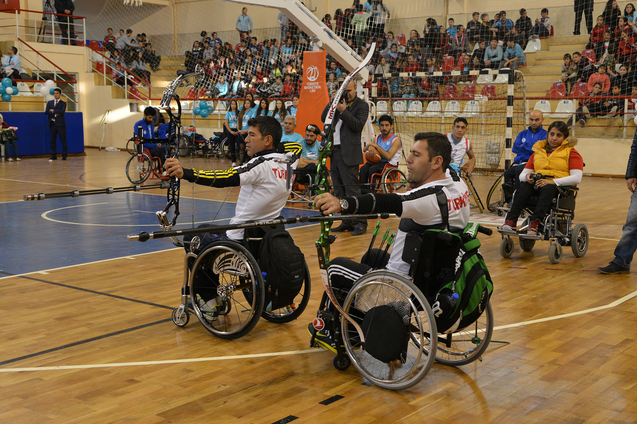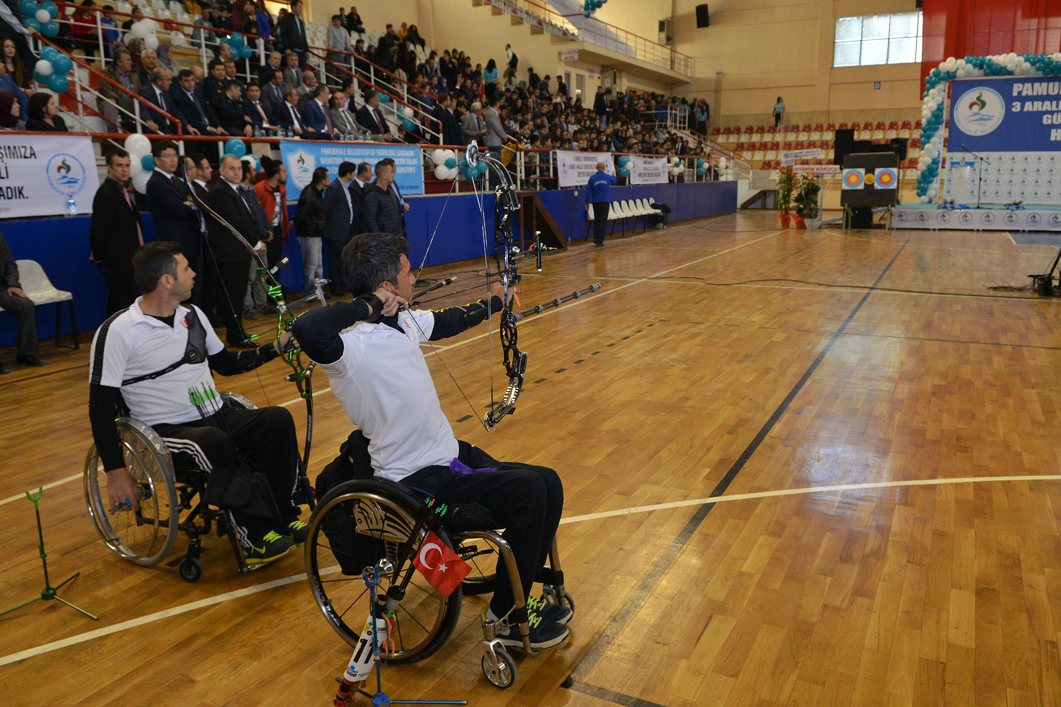Basket gösterilerinin ardından Denizlili Milli Okçular Murat Turan ve Abdullah Söylemez, salonda konulan hedefe oklarını bir bir göndererek engellilerin nasıl yıkıldığını ve ortadan kaldırıldığını gözler önüne serdiler. Attıkları her okta hedefi 12’den vuran iki milli okçuda ayakta alkışlandı. Programda iki milli okçu başta olmak üzere ulusal ve uluslararası spor müsabakalarında derece yapan sporculara Pamukkale Belediye Başkanı Hüseyin Gürlesin ve protokol üyeleri çeşitli hediyeler verdiler.