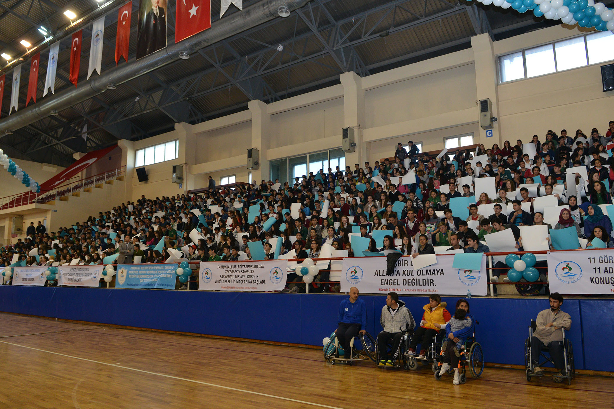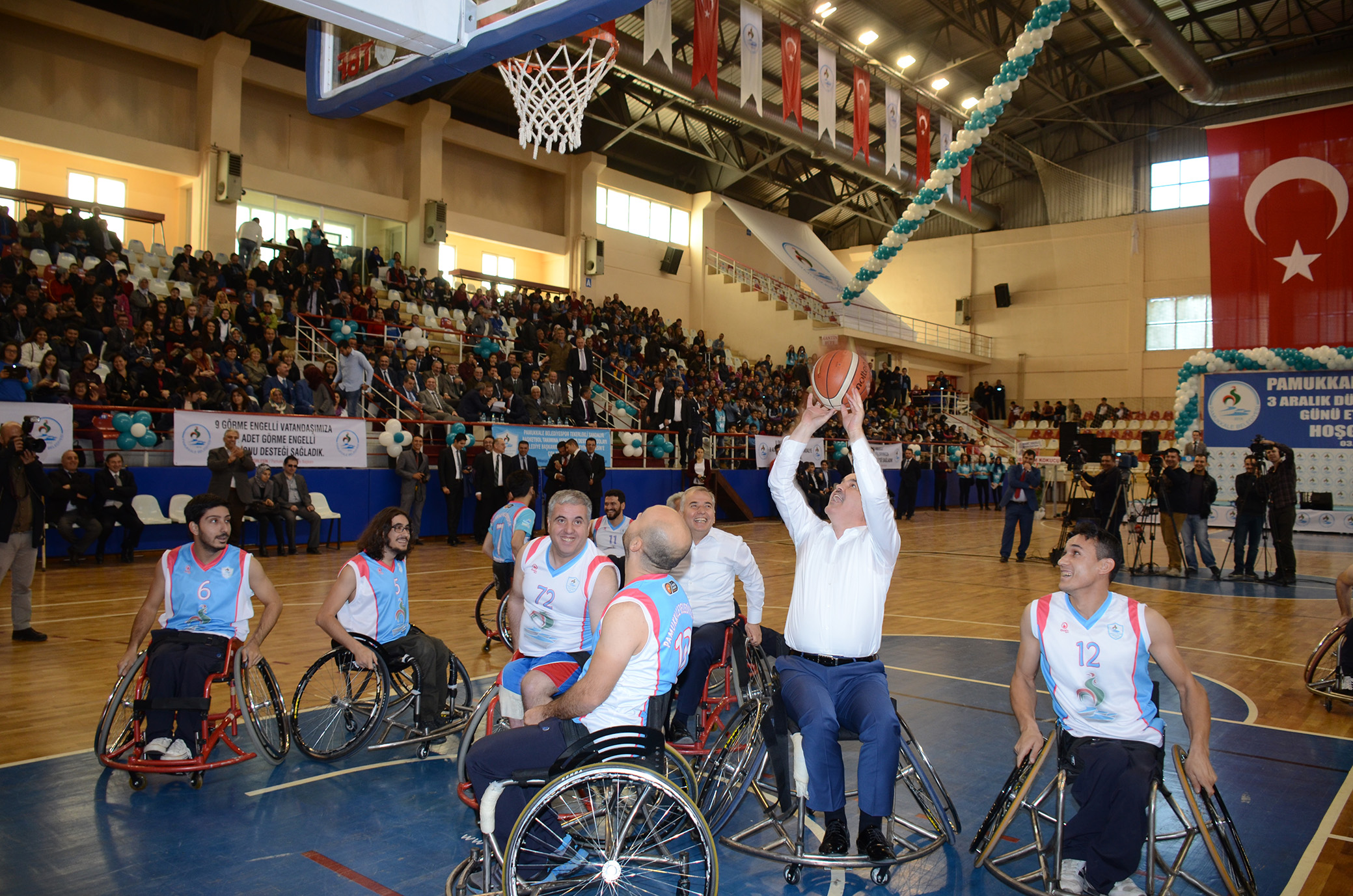 Pamukkale Belediyesi, 3 Aralık Dünya Engelliler Gününe özel hazırladığı etkinlikte engellerin nasıl aşılabildiğini bir kez daha gösterdi. Etkinlikte Pamukkale Belediyesi Tekerlekli Sandalye Basketbol takımının gösterileri, engelli okçuların kendilerine hayran bırakan performansları, yine gitaristi engelli olan Grup S.M.S'in muhteşem müzik ziyafetiyle dolu dolu bir program gerçekleştirildi. Güne damgasını vuran ise, Denizli Büyükşehir Belediye Başkanı Osman Zolan ile Pamukkale Belediye Başkanı Hüseyin Gürlesin’in, Denizli Milletvekilleri Şahin Tin ile Cahit Özkan’ın tekerlekli sandalyeye oturarak, basket takımıyla birlikte yaptıkları maç oldu.