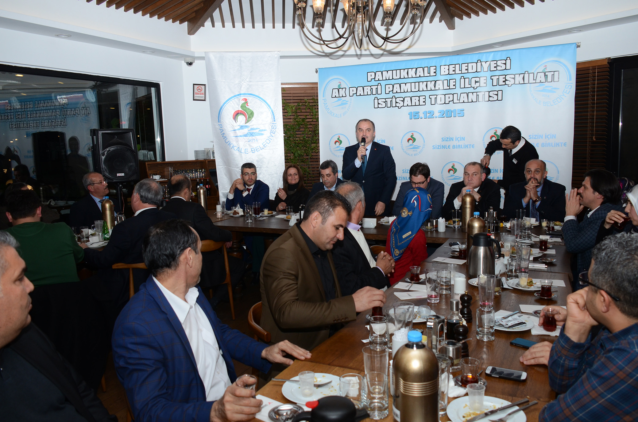 Sabanoğlu Restoranda gerçekleştirilen AK Parti Pamukkale İlçe Teşkilatı İstişare Toplantısı’na Pamukkale Belediye Başkanı Hüseyin Gürlesin, AK Parti Pamukkale İlçe Başkanı Hasan Aracı, Pamukkale Belediye Başkan Yardımcıları Selim Arkan, Adnan Kaya, Pamukkale Belediye Meclisi AK Parti Grup Başkanvekili Mehmet Ali Haluk Değirmenci, Pamukkale AK Parti İlçe Kadın Kolları Başkanı Halise Akar, Gençlik Kolları Başkanı Muhammed Vural, ilçe, kadın ve gençlik kolları teşkilatının üyeleri ile Belediye Meclis üyeleri katıldı. AK Parti Pamukkale İlçe Başkanı Hasan Aracı, böylesi güzel bir etkinlikte teşkilat üyelerini bir araya getiren Başkan Gürlesin’e teşekkürlerini iletti. Aracı, İlçe Teşkilatı olarak gerçekleşen bu aile toplantısında istişarelerde bulunarak, daha güçlü bir şekilde yollarına devam edeceklerini belirtti.
