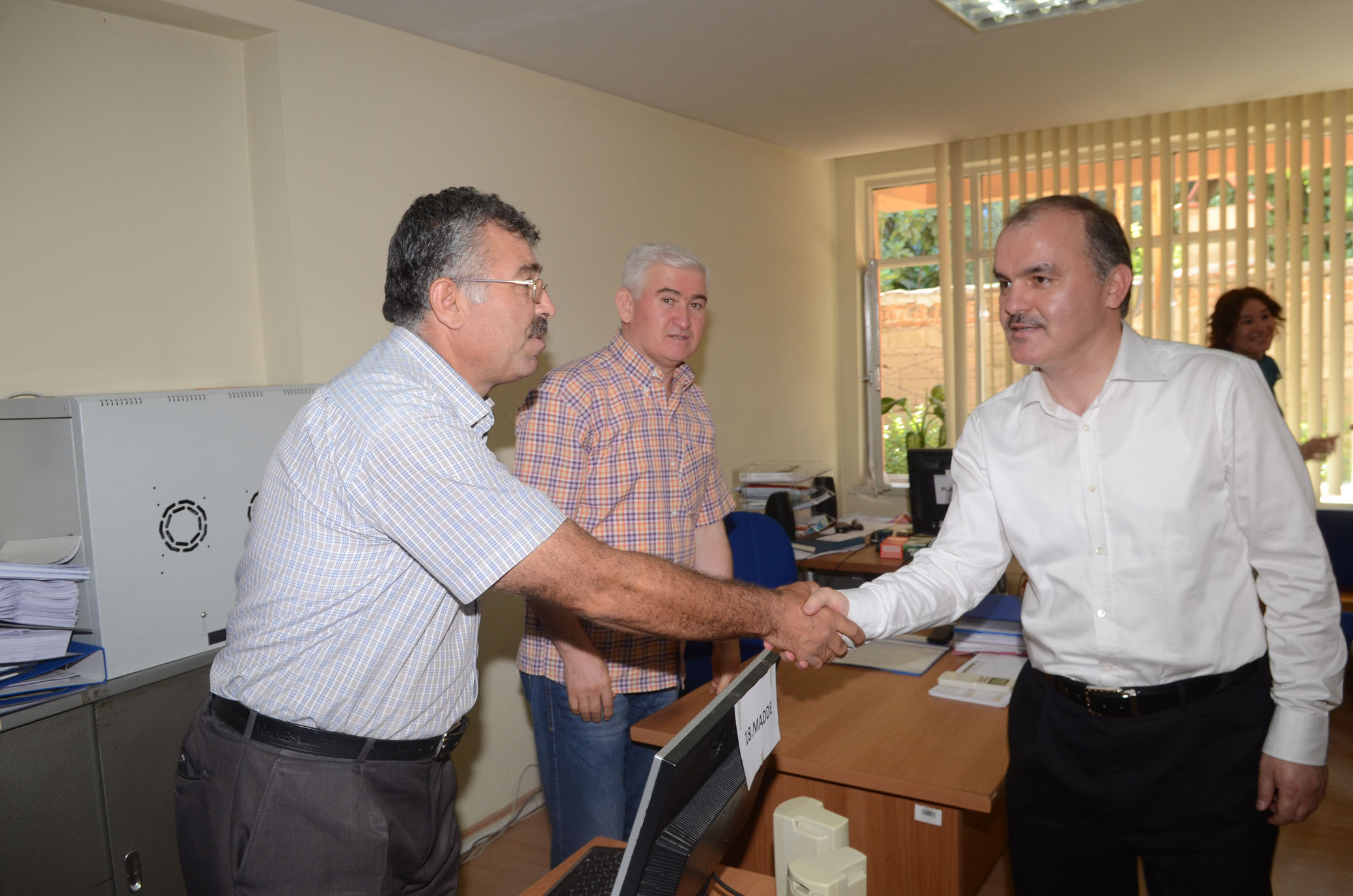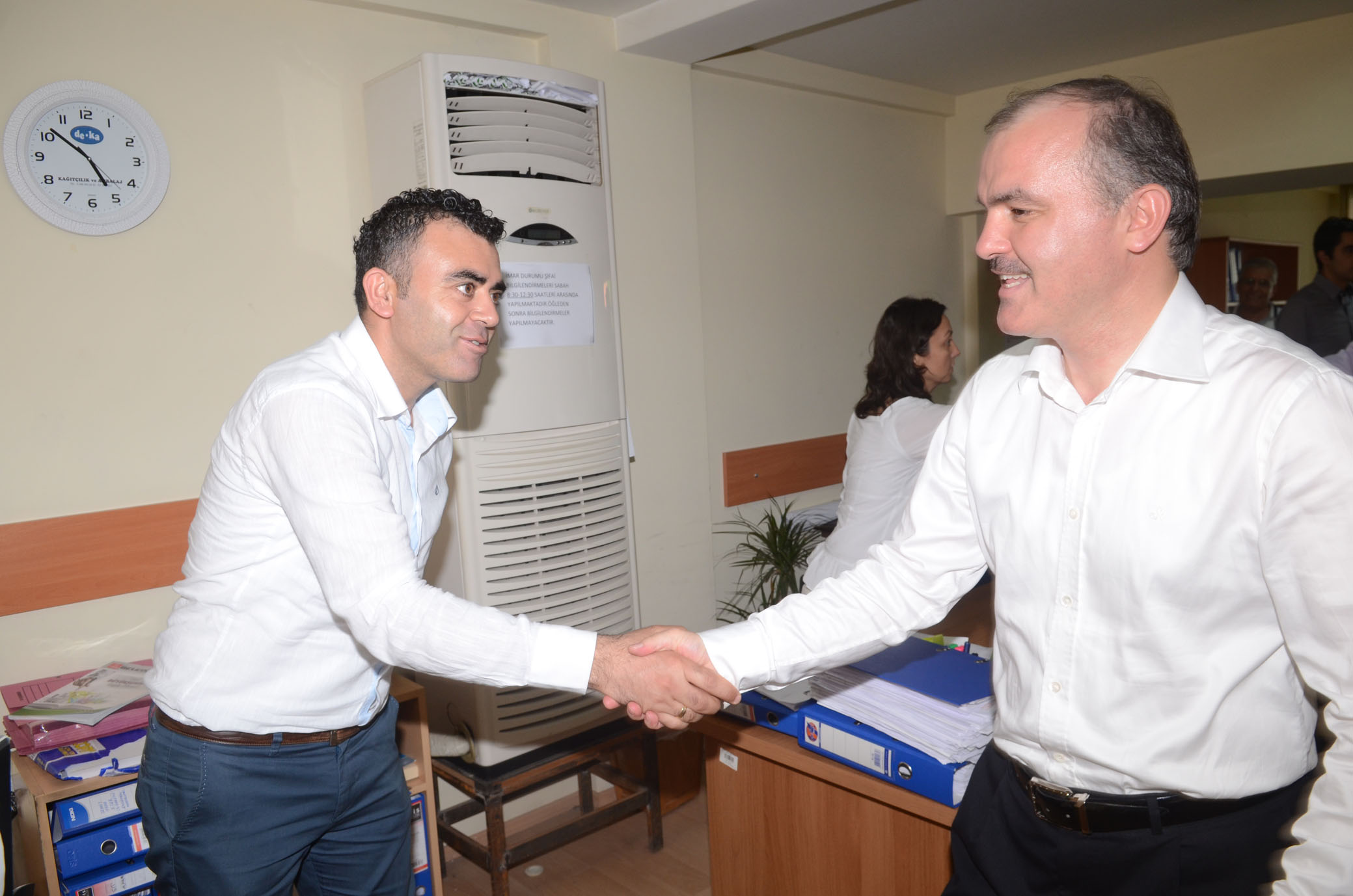 Pamukkale Belediyesi'nde, Ramazan Bayrami coskusu erken basladi. Baskan Gürlesin'in personelle bayramlasma programina, baskan yardimcilari Selim Arkan, Fahrettin Göksu, Veli Demir ve Abdullah Sevinçli de eslik etti. Tüm personelle tek tek tokalasan Baskan Gürlesin, personellerin ailelerine ve yakinlarina selam götürmelerini istedi. Söz konusu uygulamayla Baskan Gürlesin diger belediyelere örnek olacak bir davranisi da hayata geçirmis oldu. Personelin bayramini kutlayan Gürlesin, ?Bayram tatilini iyi degerlendirin, iyi dinlenin ailelerinize ve dostlariniza zaman ayirin ve bayramlasmayi ihmal etmeyin. Bayram vesilesiyle annenizle babanizla ve dostlarinizla hele dargin olduklarinizla mutlaka bayramlasmayi ihmal etmeyin. Ailelerinize selamlarimi iletin. Hepinize keyifli bir bayram diliyorum' dedi.