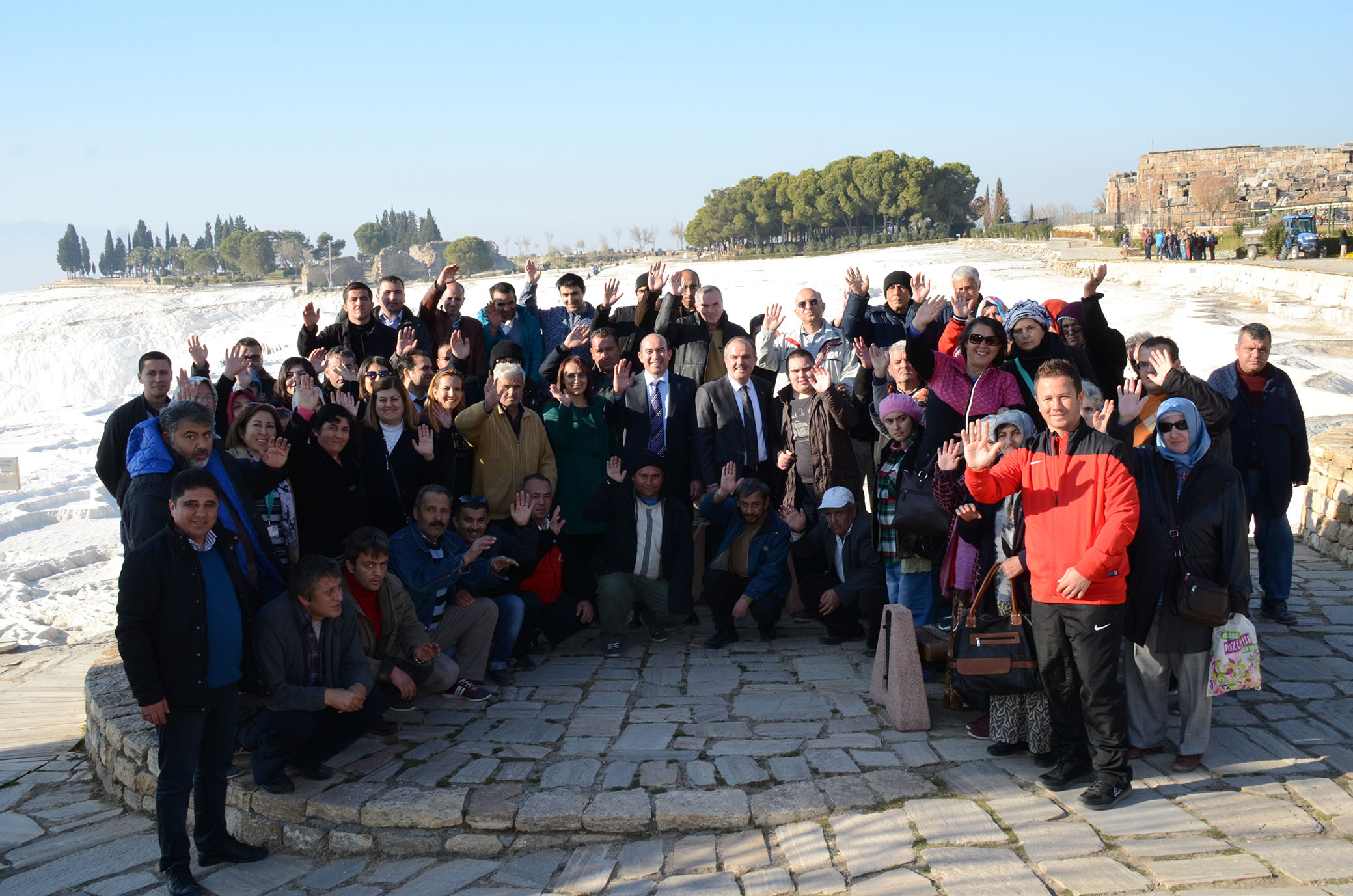 Pamukkale Belediyesi; Pamukkale Kaymakamlığı ve Denizli Kamu Hastaneleri Birliği Genel Sekreterliği ile birlikte Toplum Ruh Sağlığı Merkezi’nde tedavi gören vatandaşları Pamukkale’ye götürdü. Dünyanın göz bebeği Pamukkale’de beyaz travertenlerin görselinde unutulmaz bir gün geçiren ekip, Hierapolis Antik Kenti’ni de gezme fırsatı buldu. Önemli sosyal bir etkinliği gerçekleştirdiklerini belirten Pamukkale Belediye Başkanı Hüseyin Gürlesin, bu tür motivasyon artırıcı gezilere ve sosyal etkinliklere devam edeceklerini söyledi.