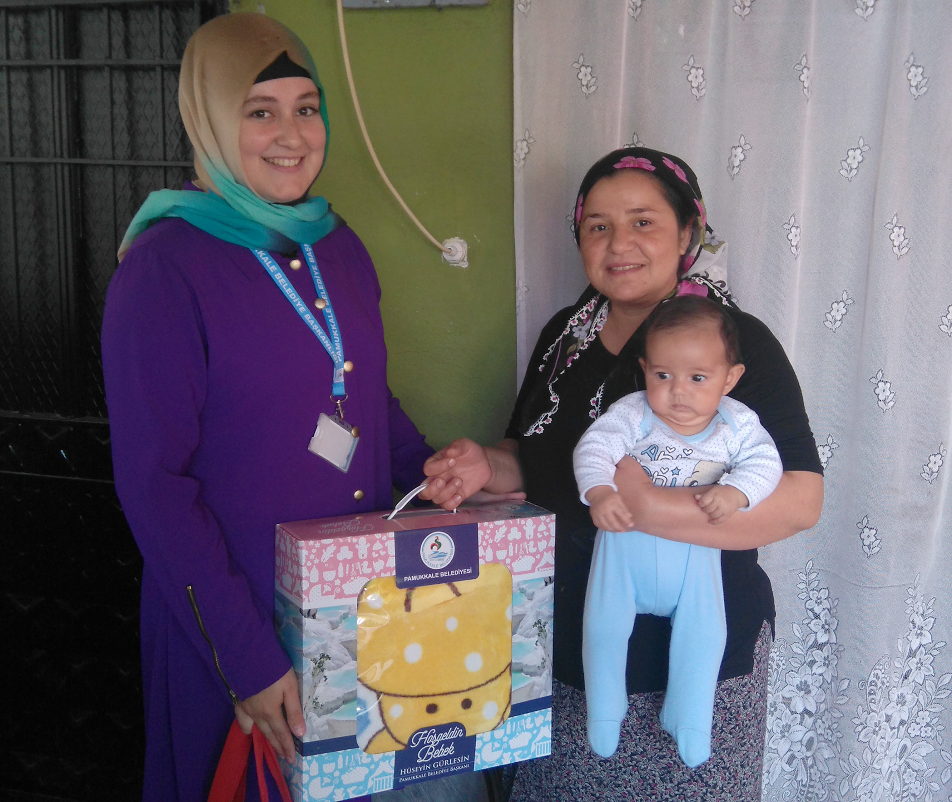 Pamukkale Belediyesi, 2015 yılında sosyal belediyecilik anlamında birçok güzel örneğe imza atarak örnek olmayı başarmıştı. O projelerden birisi de ilçede ikamet eden ve yeni bebeği olan çiftlerin, o mutluluk anlarına ortak olunarak bir bebeğin ihtiyaç duyduğu malzemeler, battaniye ve annenin gündelik yaşamında kullanacağı modern bir çantanın hediye edilmesi oldu. Pamukkale Belediyesi Kültür ve Sosyal İşler Müdürlüğü’nün ekipleri ilçede yaşayan ve yeni bebekleri olan istisnasız tüm çiftleri bir bir ziyaret ederek, hediyeleri ulaştırdı. Pamukkale İlçesi’nde 2015 yılında 3969 bebek dünyaya geldi. Ekipler 3000 bin aileye hediyeleri ulaştırdı. Ancak adres değişikliği yapan veya ziyaret noktasında evlerinde bulunamayan ailelere ise yine bir bir ulaşılarak hediyeleri verilmeye devam ediyor. Evlerinde bulunamayan ailelerin kapılarına not bırakılarak, geri dönülmesi isteniyor.