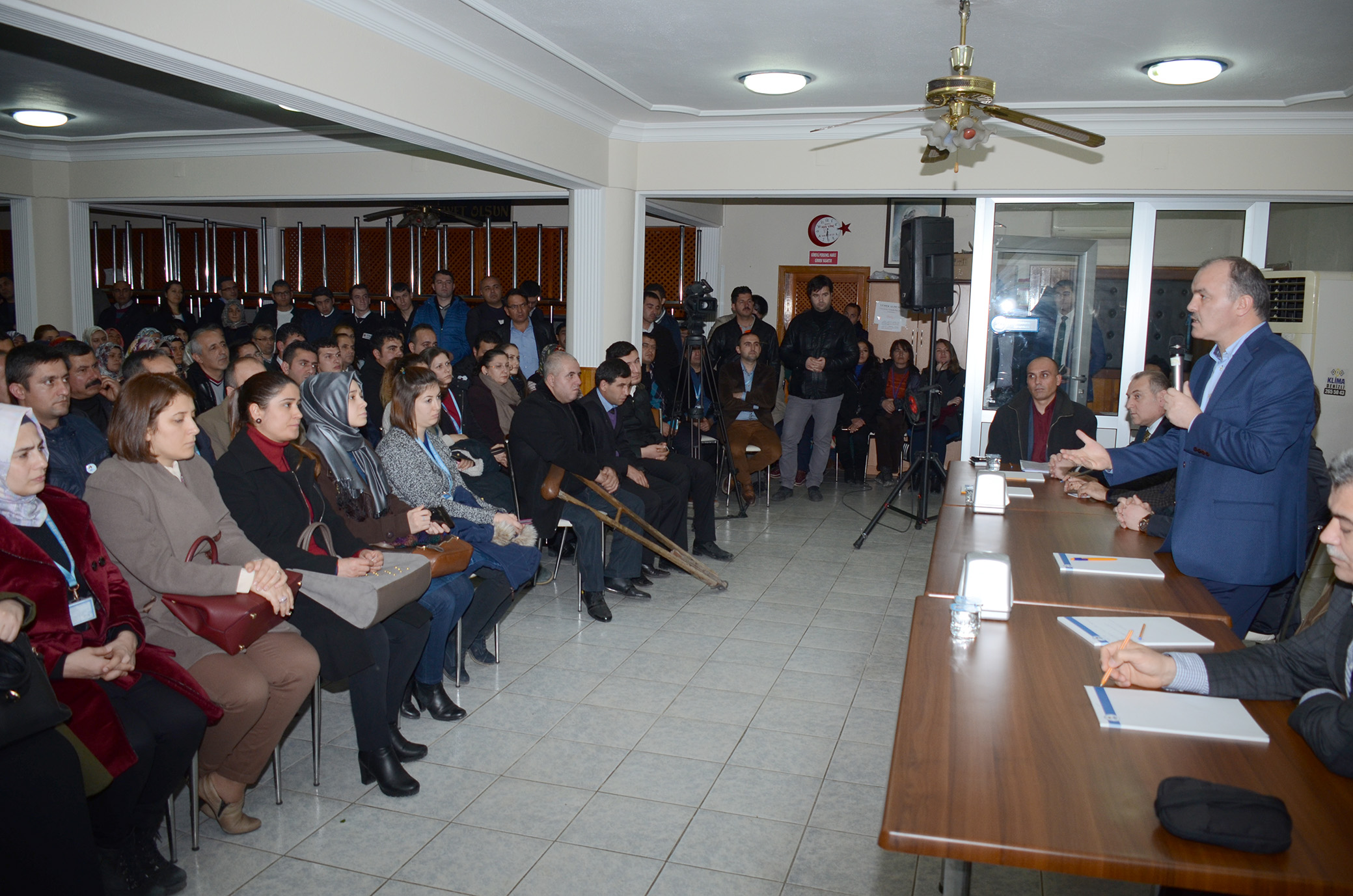 Pamukkale Belediye Başkanı Hüseyin Gürlesin, belediye personeliyle bir araya geldi. Belediye yemekhanesinde gerçekleştirilen toplantıda Pamukkale Belediyesi Başkan Yardımcıları Selim Arkan, Adnan Kaya, Veli Demir, Abdullah Sevinçli ve Türkay Gözlükaya’da hazır bulundu. Belediye personelinin çalışmalarla ilgili görüş ve önerilerini de alan Başkan Gürlesin, 2016 yılı başta olmak üzere hayata geçecek, planlanan yatırımlarla ilgili de bilgi verdi. “Ortaya çıkan eserler tüm Pamukkale Belediyesi çalışanlarının ortak başarısıdır” diyen Başkan Gürlesin, şunları söyledi, “Pamukkale İlçemiz 320 bin nüfusuyla bir uçtan bir uca 70 kilometreyi bulan uzunluğu ile ilimizin en büyük ilçesi. Pamukkale İlçemiz 24 ilden daha büyük bir durumda. Vatandaşlarımızın bize verdiği görev doğrultusunda 22 aydır ilçemize bilinir belediyecilik hizmetlerinin yanı sıra sosyal belediyecilik anlayışıyla belediyemizde görevli tüm personelimizle hizmet veriyoruz. ‘Pamukkale’de yaşamak bir ayrıcalık olacak’ sloganıyla çıktığımız bu yolda ardı ardına yatırımları hayata geçiriyor, geleceği planlıyoruz. 2015 yılında olduğu gibi 2016 yılında ve dönemimiz boyunca yoğun bir çalışma takvimi ve yatırım atağı ile birçok projeyi inşallah birlikte hayata geçireceğiz.”