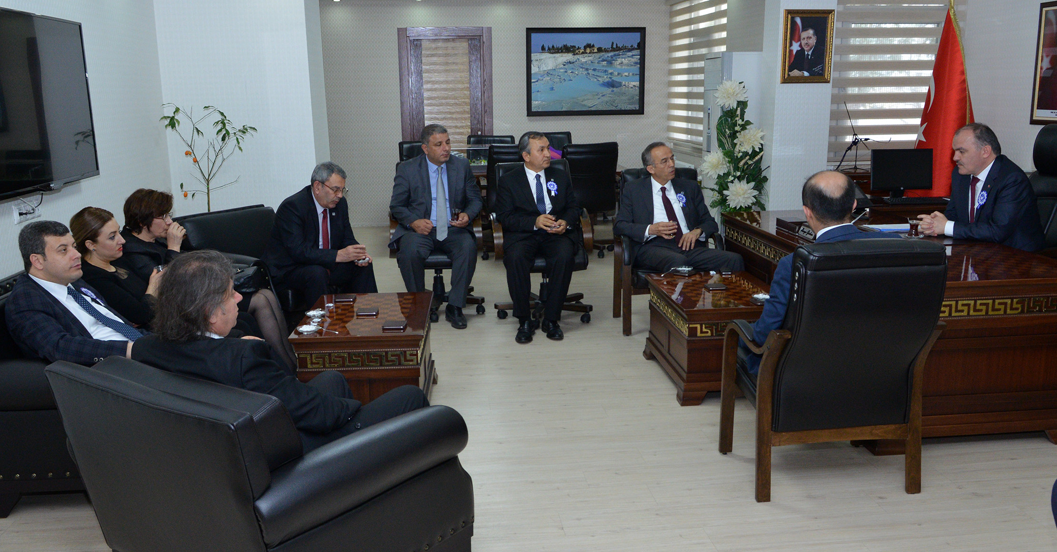 Denizli Serbest Muhasebeci Mali Müşavirler Odası Başkanı Necdet Yılmaz ve yönetim kurulu üyeleri, Muhasebeciler Günü dolayısıyla Pamukkale Belediye Başkanı Hüseyin Gürlesin’e ziyarette bulundu. Ziyaretten duyduğu memnuniyeti dile getiren Başkan Gürlesin’e Oda Başkanı Yılmaz, gün dolayısıyla Denizli Serbest Muhasebeci Mali Müşavirler Odası kokartını taktı.