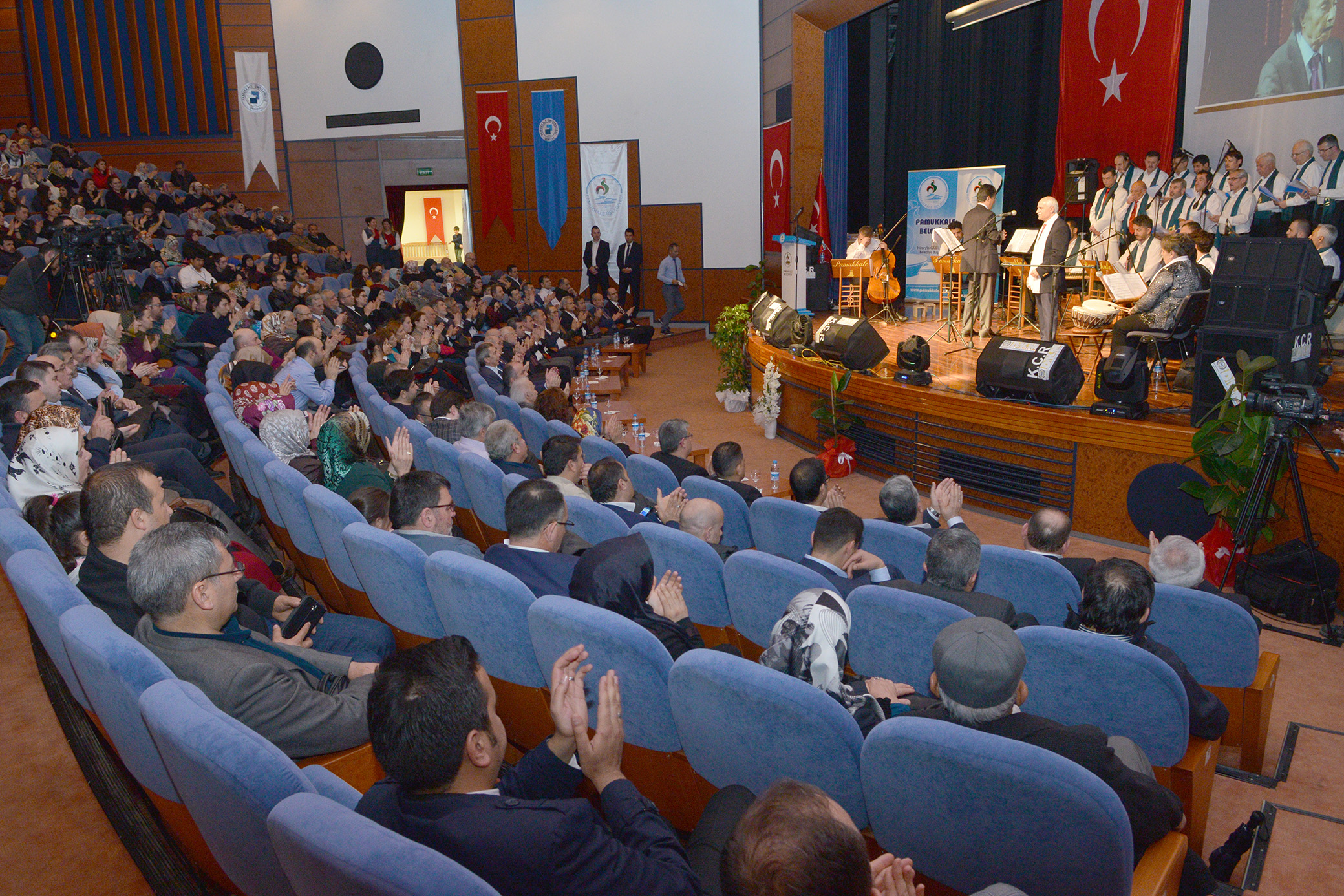 Başkan Gürlesin, konuşmasının ardından merhum sanatçının ikiz kardeşi Hadis Alimi Said Hatiboğlu ile ünlü sanatçının oğulları Ahmet ve Itri Hatiboğlu’na davetlerini kırmayıp geldikleri için teşekkür ederek, hediyelerini verdi. Başkan Gürlesin ayrıca böylesi manevi atmosferi yüksek, müzik dolu bir gece yaşattıkları için Koro şefi Erol Çiftçi’ye çiçek taktim etti.