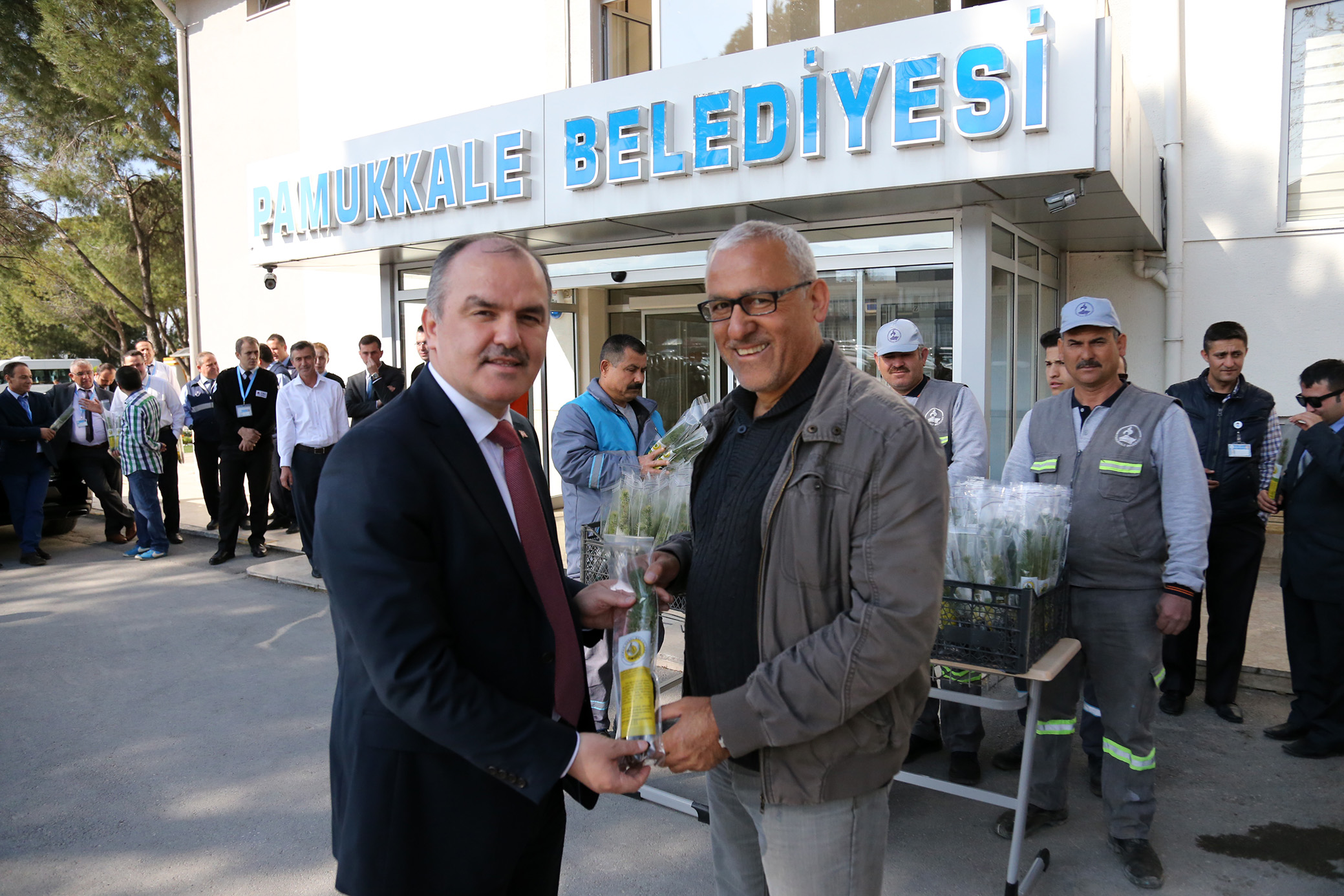 Pamukkale Belediye Başkanı Hüseyin Gürlesin, 21 Mart Dünya Ormancılık Günü ve Orman Haftası kapsamında belediye personeline ve vatandaşlara fıstık çamı fidanı dağıttı. Başkan Gürlesin, yeşil dokuyu, ormanları, doğayı korumanın herkesin görevi olduğuna vurgu yaptı.