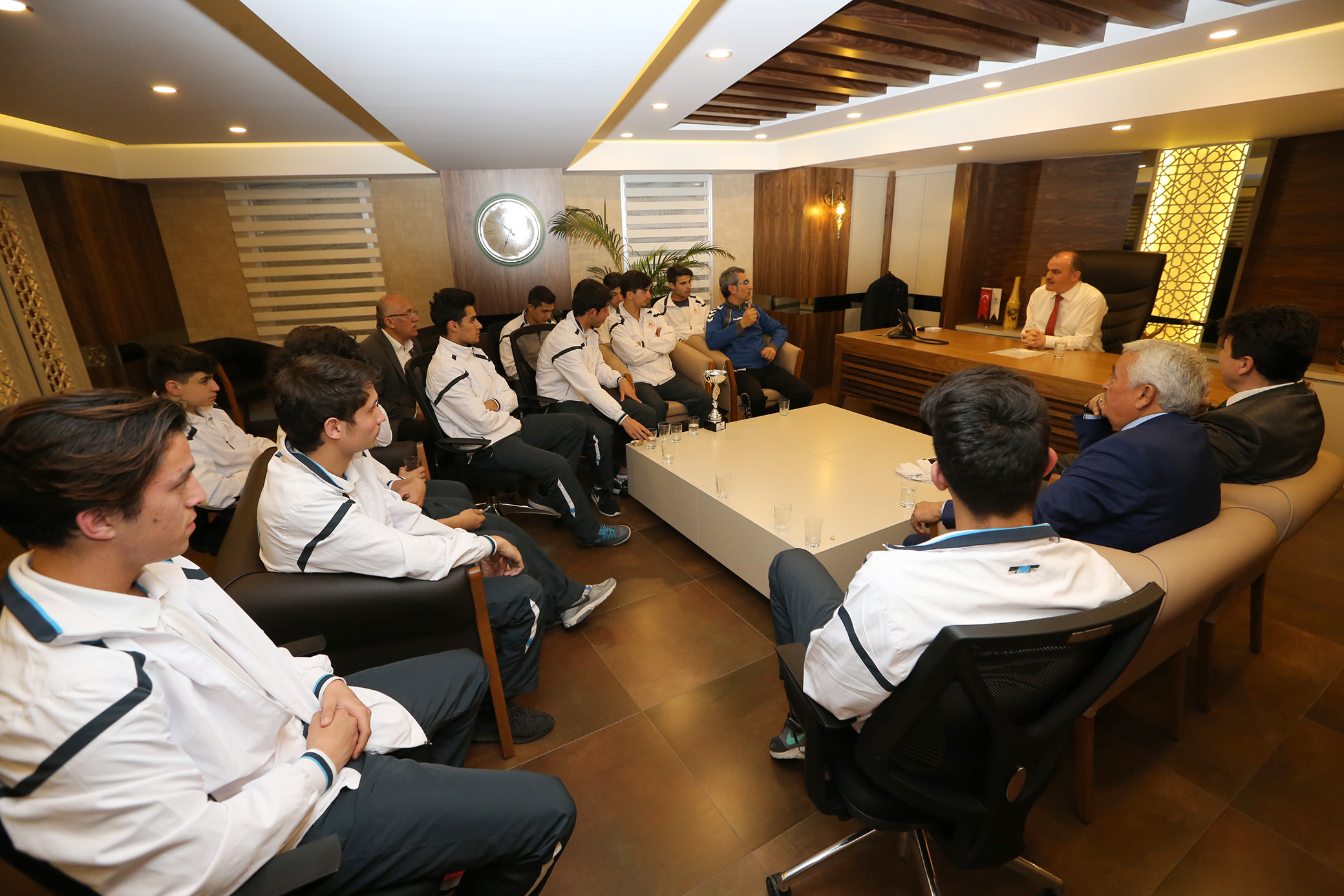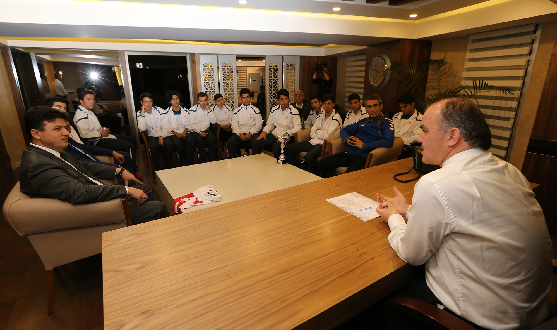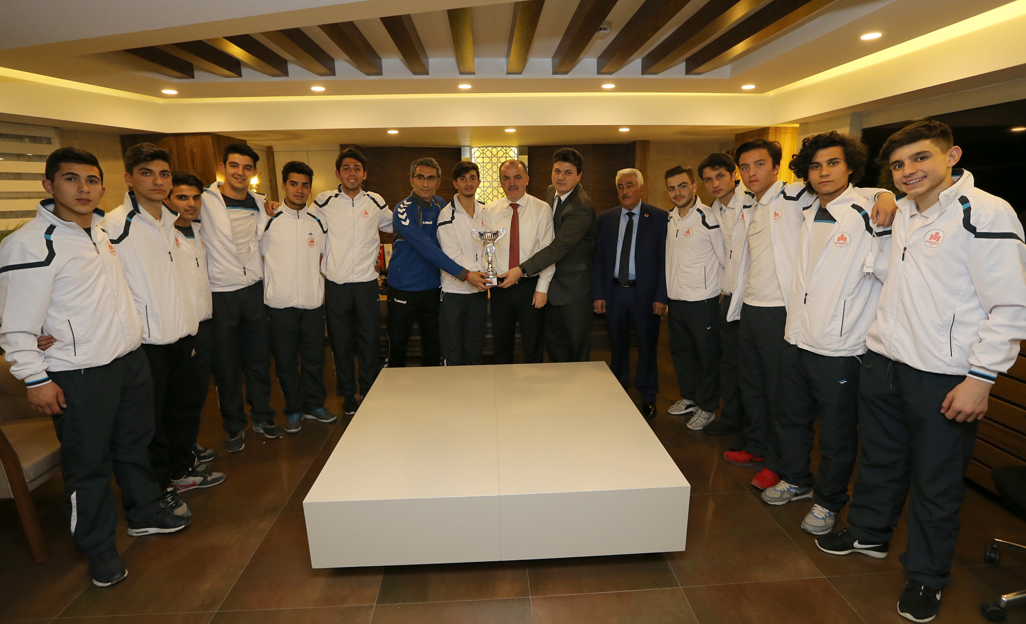 Türkiye şampiyonasına giderken kazanmaları durumunda okullarına halı saha yapacağı sözünü verdiğini hatırlatan Başkan Gürlesin, “Şampiyon olursanız bir ödül açıklamıştım. Okulunuza bir halı saha sözü vermiştim. Bugün kupayla yanımızdasınız. Halı saha ile ilgili ölçümleri biz yaptırdık. Sizin vesilenizle okulunuza bir halı sahayı kısa zamanda yaparak öğrencilerimizin hizmetine sunacağız” dedi. Ziyarette Başkan Gürlesin, takım oyuncularıyla birlikte Türkiye Şampiyonası kupasıyla hatıra fotoğrafı çektirdi.