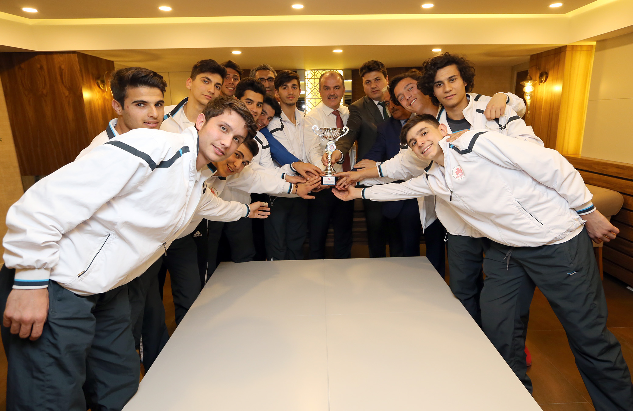 Anafartalar Mesleki ve Teknik Anadolu Lisesi Müdürü Asım Gülhan, Futsal Takımlarının başarısının temelinde Başkan Gürlesin’in verdiği desteğin yer aldığını belirterek, “Sizin desteğiniz, takım oyuncularımızın azmi ile bugün Türkiye Kupasını Denizli’mize, Pamukkale İlçemize getirdik. Bu başarıda en büyük paylardan biriside sizin bizlere sunduğunuz imkanlarla gerçekleşti. Kupa sevincimizi ve hedeflerimizi de bu ziyaretimizle sizlerle paylaşma imkanı bulduk. Şimdi yine Pamukkale Belediyemizin sponsorluğunda Dünya kupasını inşallah ülkemize getireceğiz” dedi. Okul Beden Öğretmeni, Takım Antrenörü Yasin Düzgün’de Başkan Gürlesin’e sunduğu desteklerden dolayı teşekkürlerini ileterek, “Takım olarak tamamen motive durumdayız. Hedefimiz dünya kupası” dedi.