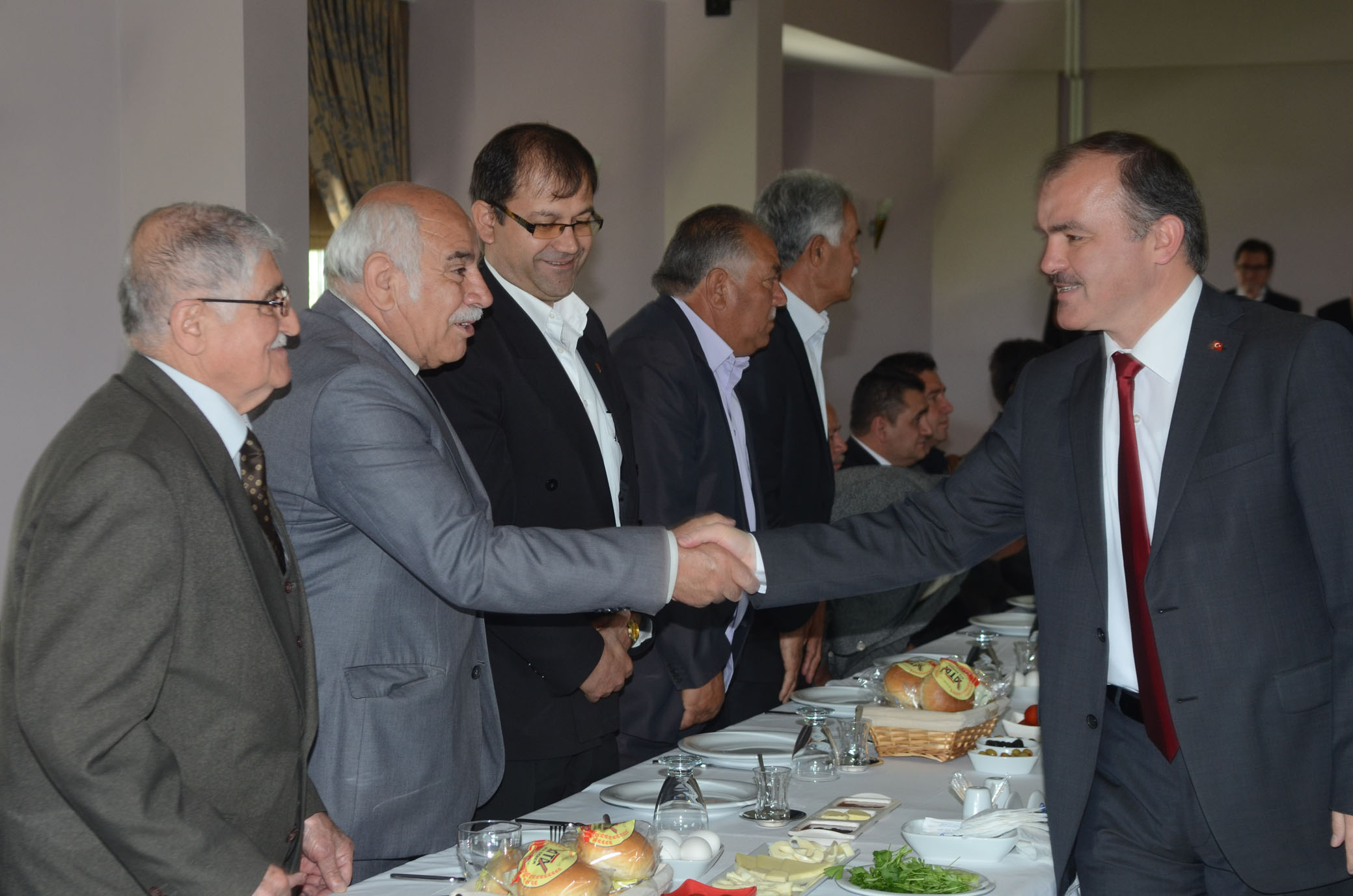 Baskan Gürlesin, aralarinda Muhtarlar Dernegi Baskani Sebahattin Çolak, ilk kez seçilen, yillardir görevini sürdüren köy ve mahalle muhtarlarinin bulundugu belediye sinirlari içinde yer alan 68 muhtarla kahvaltili toplantida bir araya geldi.