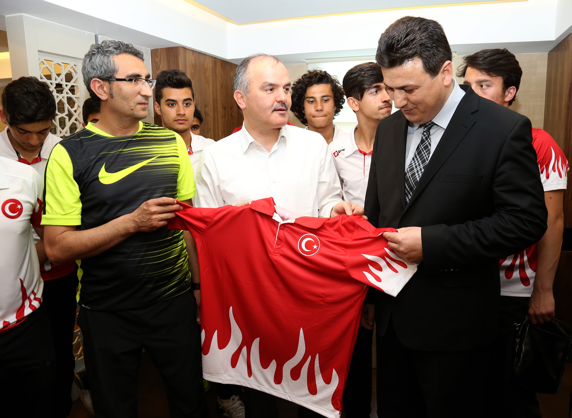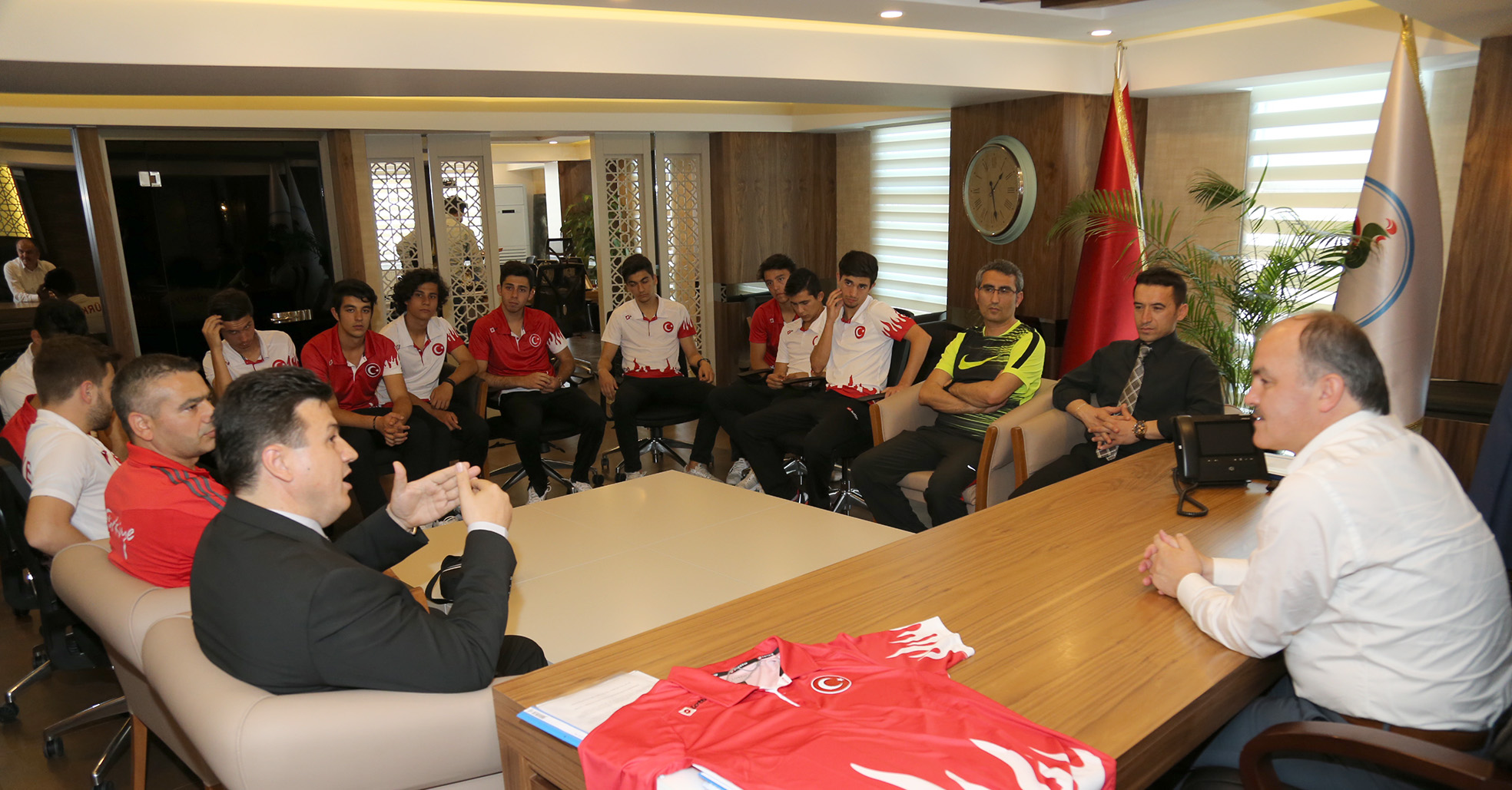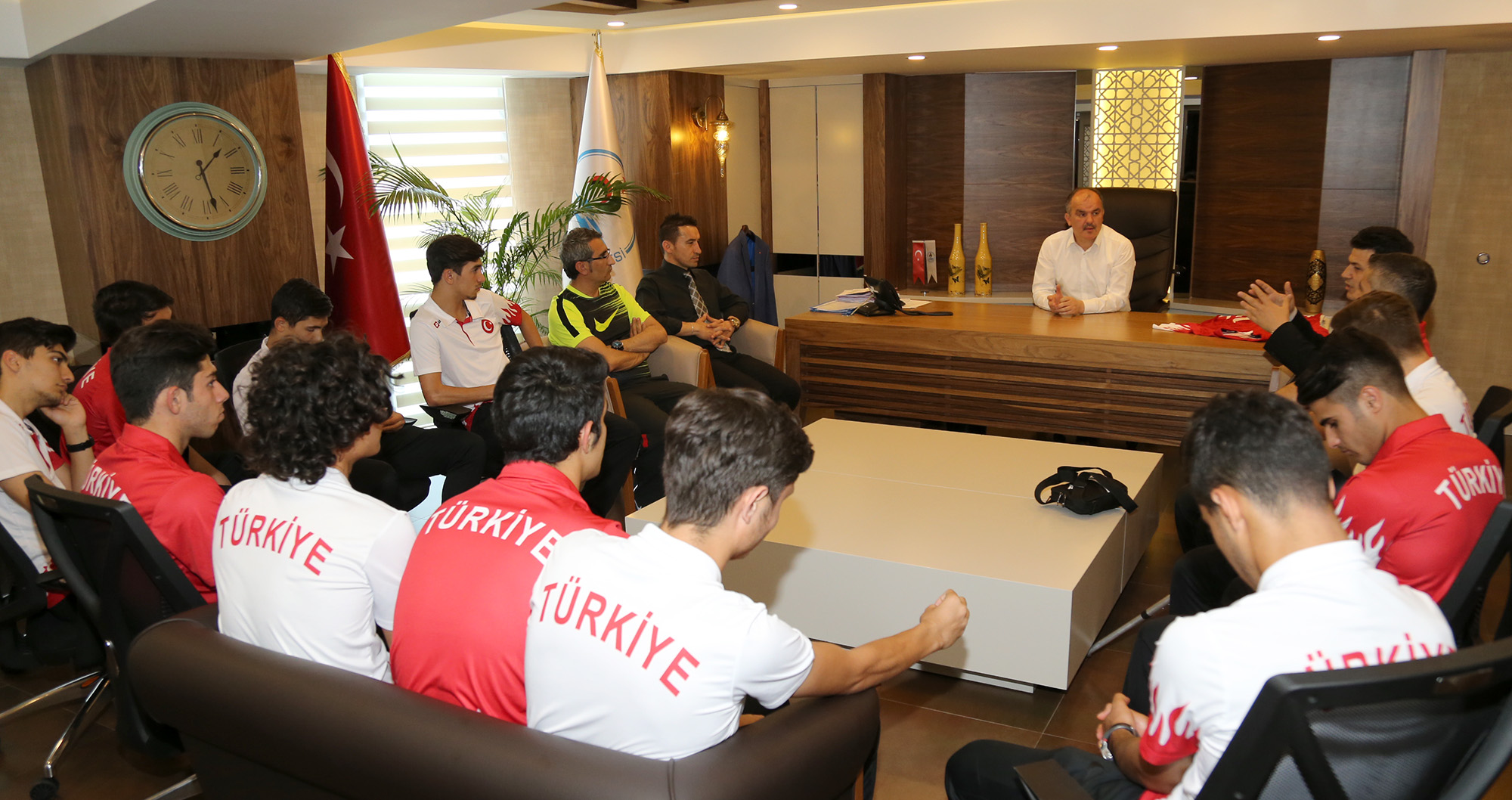 Pamukkale Belediyesi’nin sponsorluğunda Gençler Futsal Türkiye Şampiyonu olan ve Dünya Kupasında 7’ncilik elde eden Anafartalar Futsal Takımı, Pamukkale Belediye Başkanı Hüseyin Gürlesin’e teşekkür ziyaretinde bulunarak, milli takım forması hediye etti.