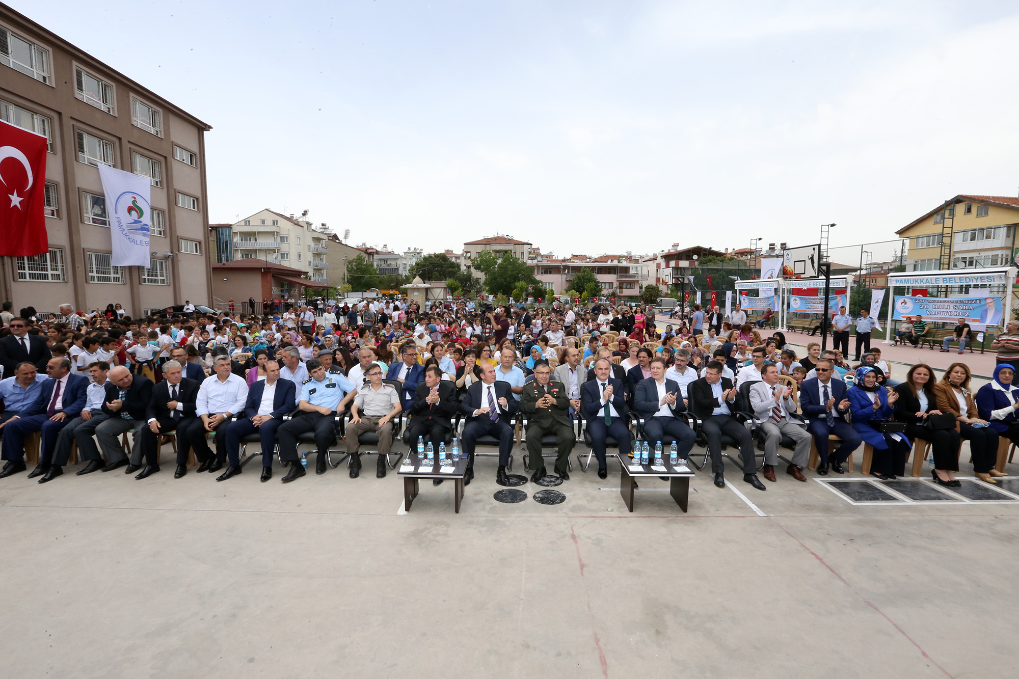 Pamukkale İlçesinde birçok noktada spor tesisleri yatırımı yapılarak hizmete açıldığına vurgu yapan Pamukkale Kaymakamı Veysel Beyru ise, “Başkan Gürlesin belediye çalışmalarında, sportif, sosyal kültürel alanlarda ve eğitim alanında ortaya koyduğu çalışmalarla örnek bir kişi. Çocuklarımızın yüzlerine bakıyorum, hepsi sevinçli, mutlu. Bütün yaptığımız çalışmalar, öğretmenlerimizin akıttığı alın teri, Belediye Başkanımızın ve ona destek veren Belediye Meclisi Üyelerimizin, yardımcılarının bütün fedakarlıklarla okullarımıza kazandırdığı, sosyal tesisler, yarının geleceği olan sevgili çocuklarımızın öncelikli olarak mutlu olmasına hizmet etsin. Onları vatanına, milletine, bayrağına bağlı ve onu koruyan gençler ve nesiller yetiştirmeye imkan tanısın” dedi.