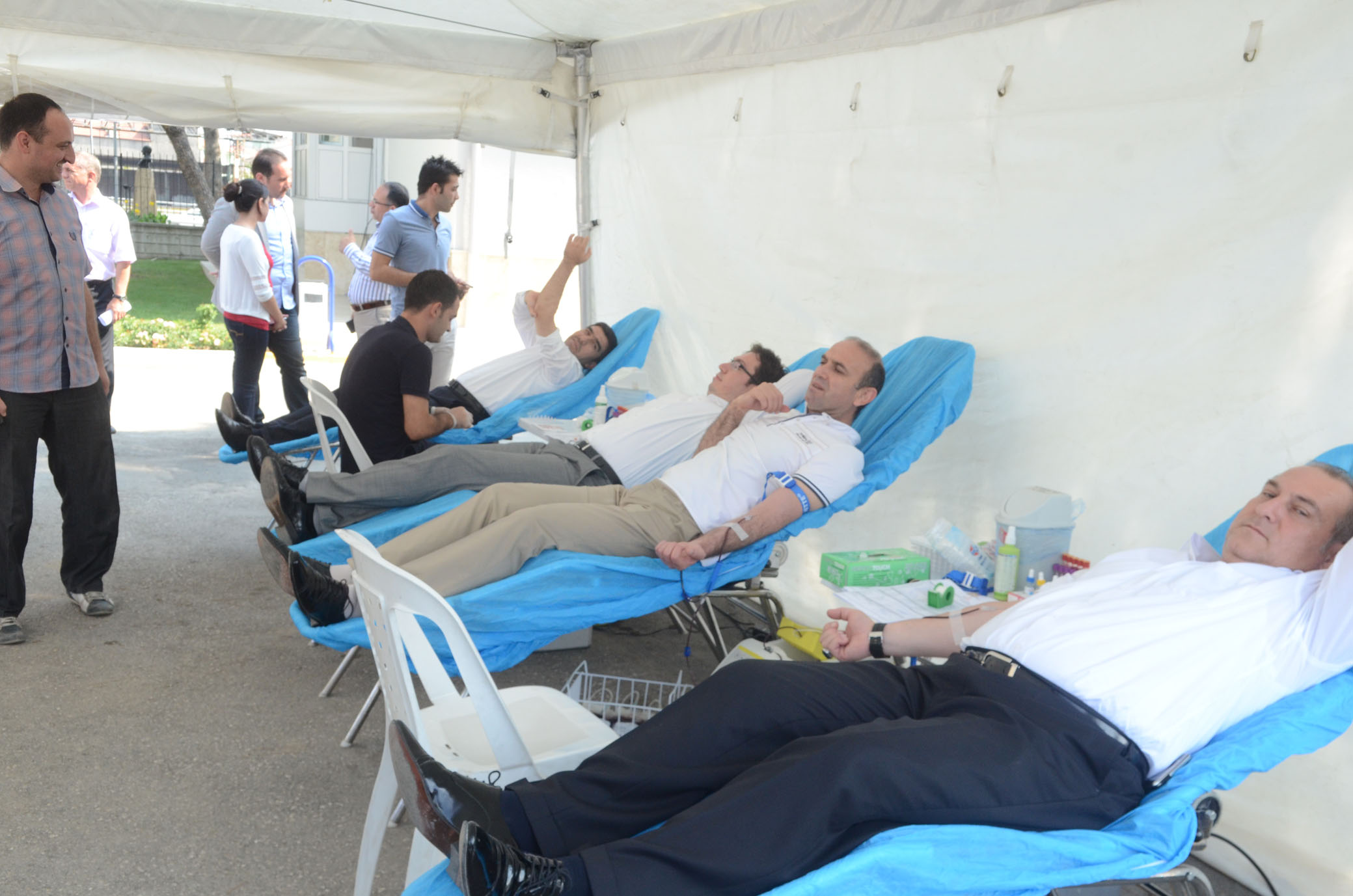 Belediye, yerel yönetimlere örnek olacak projeye imza atti. Kan stoklarindaki yetersizlik sonucu, Baskan Gürlesin'den Baskan Yardimcilari Selim Arkan, Fahrettin Göksu, Abdullah Sevinçli ve Veli Demir'e, meclis üyelerinden ve belediye personeline kadar herkes kan bagisinda bulundu. Böylece kan stoklarinin istenilen düzeye çikarilmasina destek verildi. Belediye bahçesine kurulan Kizilay Çadiri, gün boyu kan bagisinda bulunmak isteyen belediye çalisanlarina hizmet verdi. Baskan Hüseyin Gürlesin de, bahçedeki çadira gelerek kan bagisinda bulundu. Bagis sonrasi açiklama yapan Baskan Gürlesin, kan vermenin önemine isaret etti. Kan stoklarindaki alma sonucu çözüm için hemen harekete geçildigini ifade eden Baskan Gürlesin, söyle dedi: ?Pamukkale Belediyesi olarak kan verme kampanyasina biz de destek vermek amaciyla böyle bir kampanya baslattik. Kanin azaldigi noktasinda bize bilgi geldi. Biz de baskanlik ve meclis üyeleri ile personel olarak böyle bir çalisma da yer aldik. Bugün gün boyu kan merkezindeki görevli arkadaslar burada kan alacaklar. Kan çok önemlidir. Üretilmeyen 2 sey vardir, biri kan diger de topraktir. Bu nedenle herkesin kan bagisina destek vermesi gerekir. Bugün belki kana ihtiyacimiz olmayabilir ama her an bizler bu kana ihtiyaç duyabiliriz. Bundan dolayi bütün vatandaslarimizi bilinçlendirmek amaciyla yerel yöneticiler olarak örnek olmak için bizler de kan vermek istiyoruz. Belediye çalisan arkadaslarimiz yogun destek var. Bilinçli olmak örnek olmak çok önemlidir. Belirli araliklarla kan vermek saglik açisindan son derece faydalidir. Bizde bu bilinç dogrultusunda öncü olmak istedik. Ben bütün halkimizi kan vermeye davet ediyorum. Çünkü çok çok önemli bir konudur. Sagligi elverisli olan herkesin kan vermesini bekliyorum.' Gün boyu sürecek kampanyada 200 ünite dolayinda kan bagisinda bulunulmasi bekleniyor.