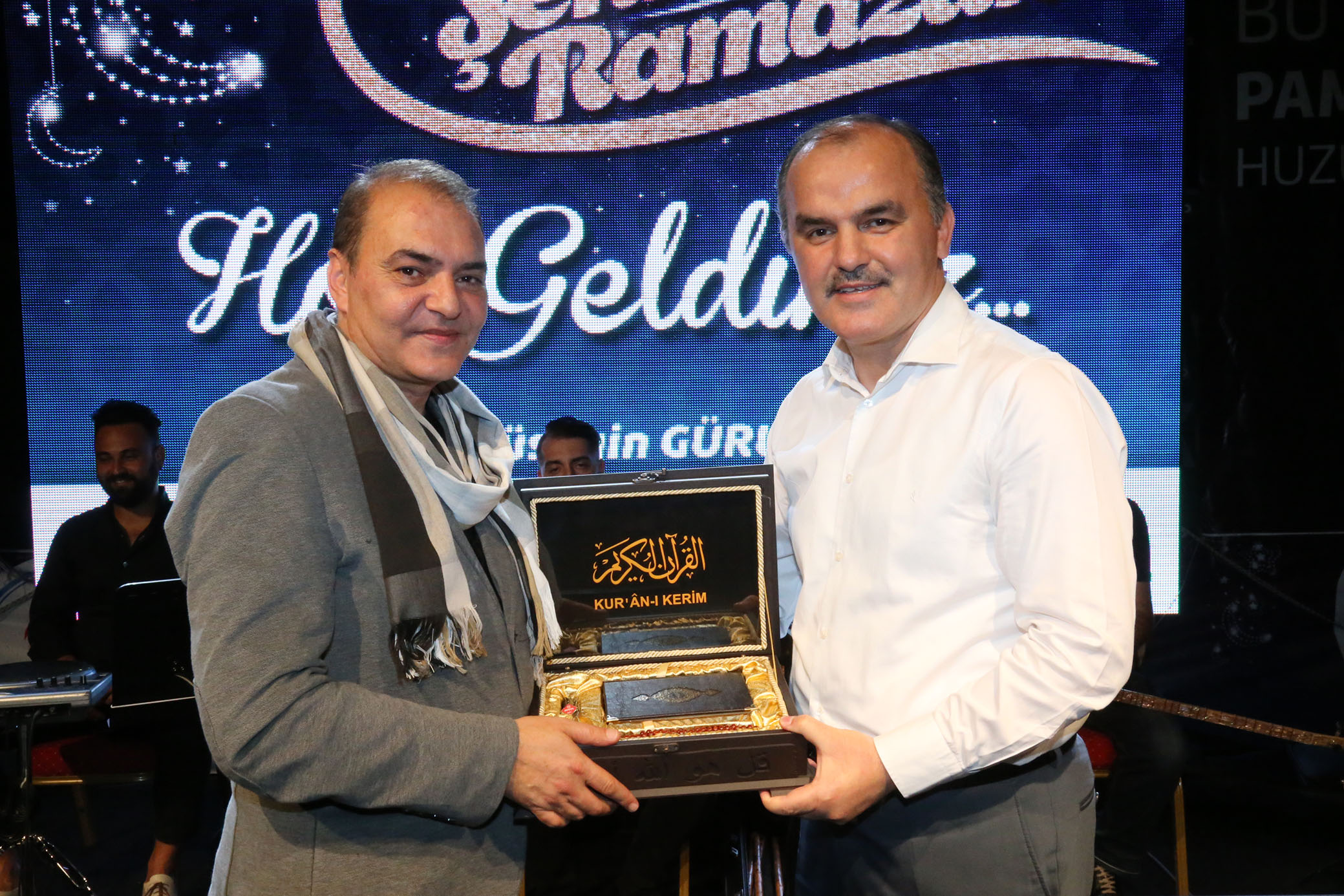 Konser sonunda ünlü sanatçı Aykut Kuşkaya, tüm ilçe halkına ve etkinliklere katılan vatandaşlara güzel bir Ramazan Gecesi yaşattığı için teşekkür eden Pamukkale Belediye Başkanı Hüseyin Gürlesin, sanatçıya içerisinde Kuran-ı Kerim’in yer aldığı bir sanduka hediye etti.