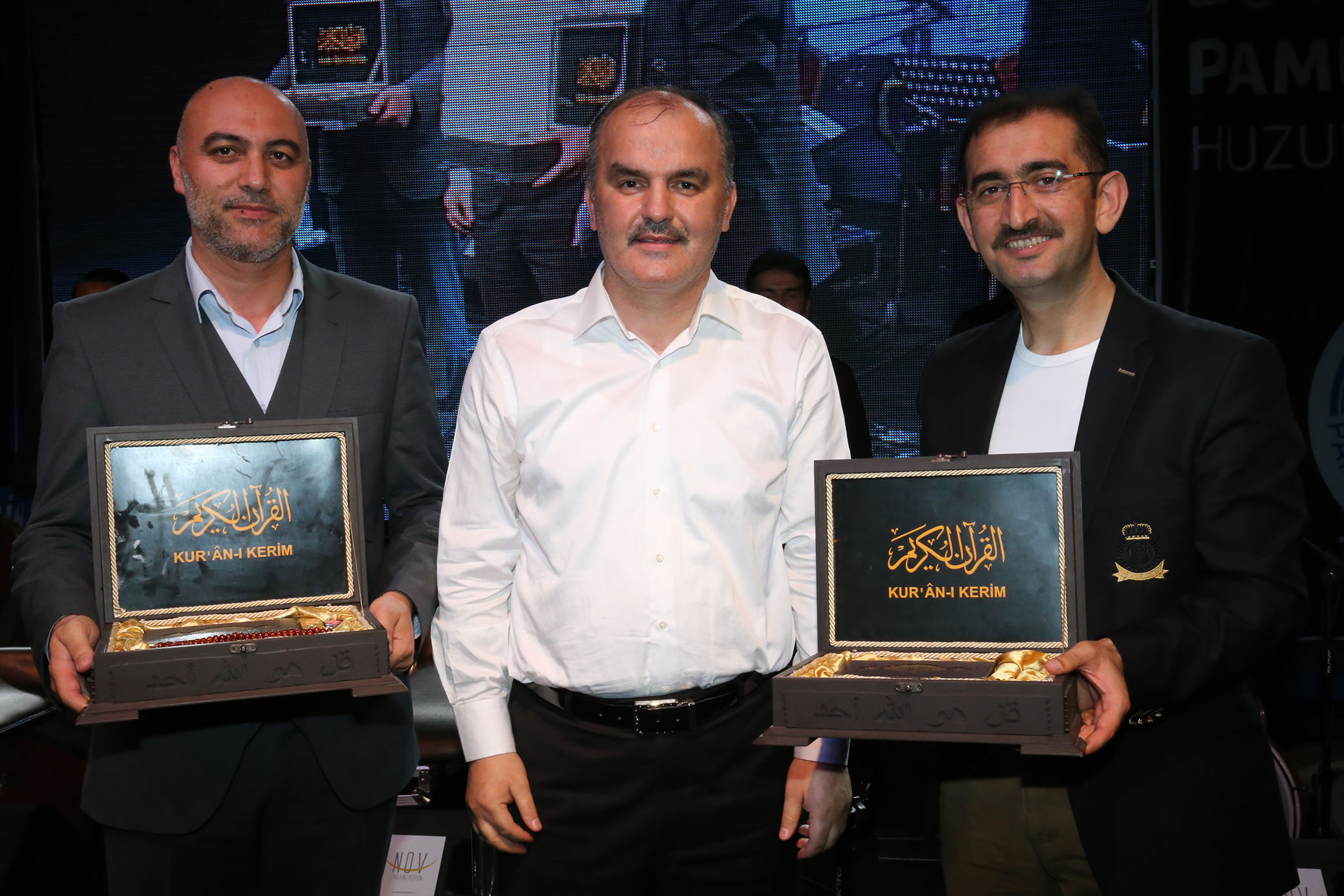 Karahayıt’ta Ramazan Geceleri programıyla ilçede Ramazan ayının maneviyatına yakışır etkinliklerin devam ettiğini belirten Pamukkale Belediye Başkanı Hüseyin Gürlesin, programın sonunda sahneye çıkarak sanatçılara teşekkür etti. Ezgi sanatçıları Fatih Koşan ve Mehmet Saraçoğlu’nin şiir, ezgileriyle duygu yoğunluğu yaşattığını, Peygamber Efendimize atfedilen naat-i şeriflerle gönüllere seslendiklerini aktaran Başkan Gürlesin, sanatçılara içerisinde Kuran-ı Kerim, tespih ve asansın bulunduğu birer sanduka hediye etti.