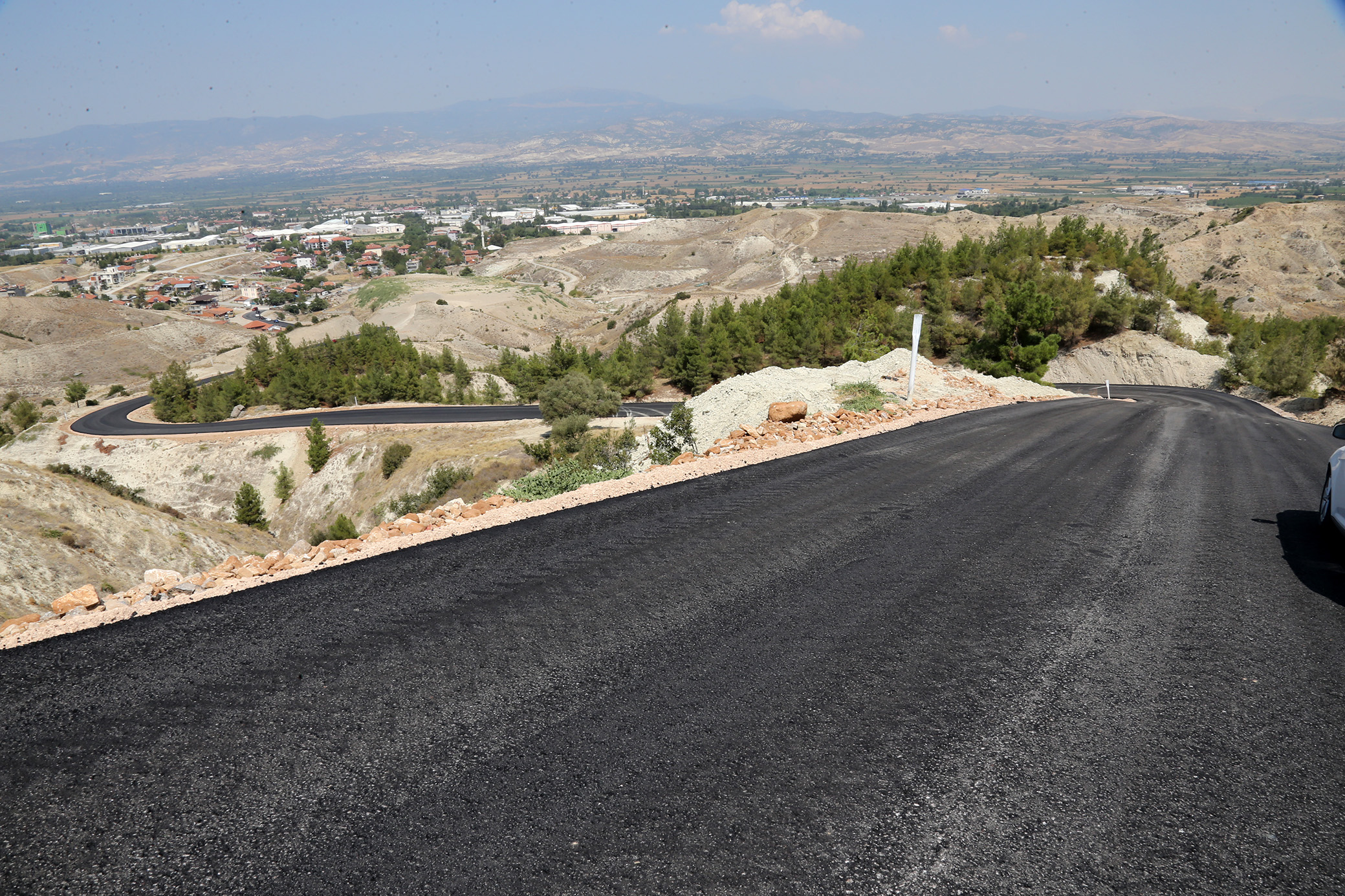 Pamukkale Belediyesi üst yapıda yatırım atağını sürdürüyor. Pamukkale Belediye Başkanı Hüseyin Gürlesin’in ilçe genelinde başlattığı üst yapı çalışması tüm hızıyla devam ediyor. Merkez mahallelerden en uç noktadaki mahallelere kadar her noktada üstyapı çalışmaları ara vermeksizin sürüyor. Pamukkale Belediyesi üst yapı atağında önemli bir çalışmayı daha tamamlayarak halkın hizmetine açtı. 2 milyon liralık bir yatırımla Pamukkale Belediyesi, Karakurt’un yukarı mahallesi ile Kale Mahallesini açtığı yolla birbirine bağladı. Sıcak asfalt çalışmasında sona gelinen 3,2 kilometre uzunluğundaki yolda Başkan Gürlesin incelemelerde bulundu.