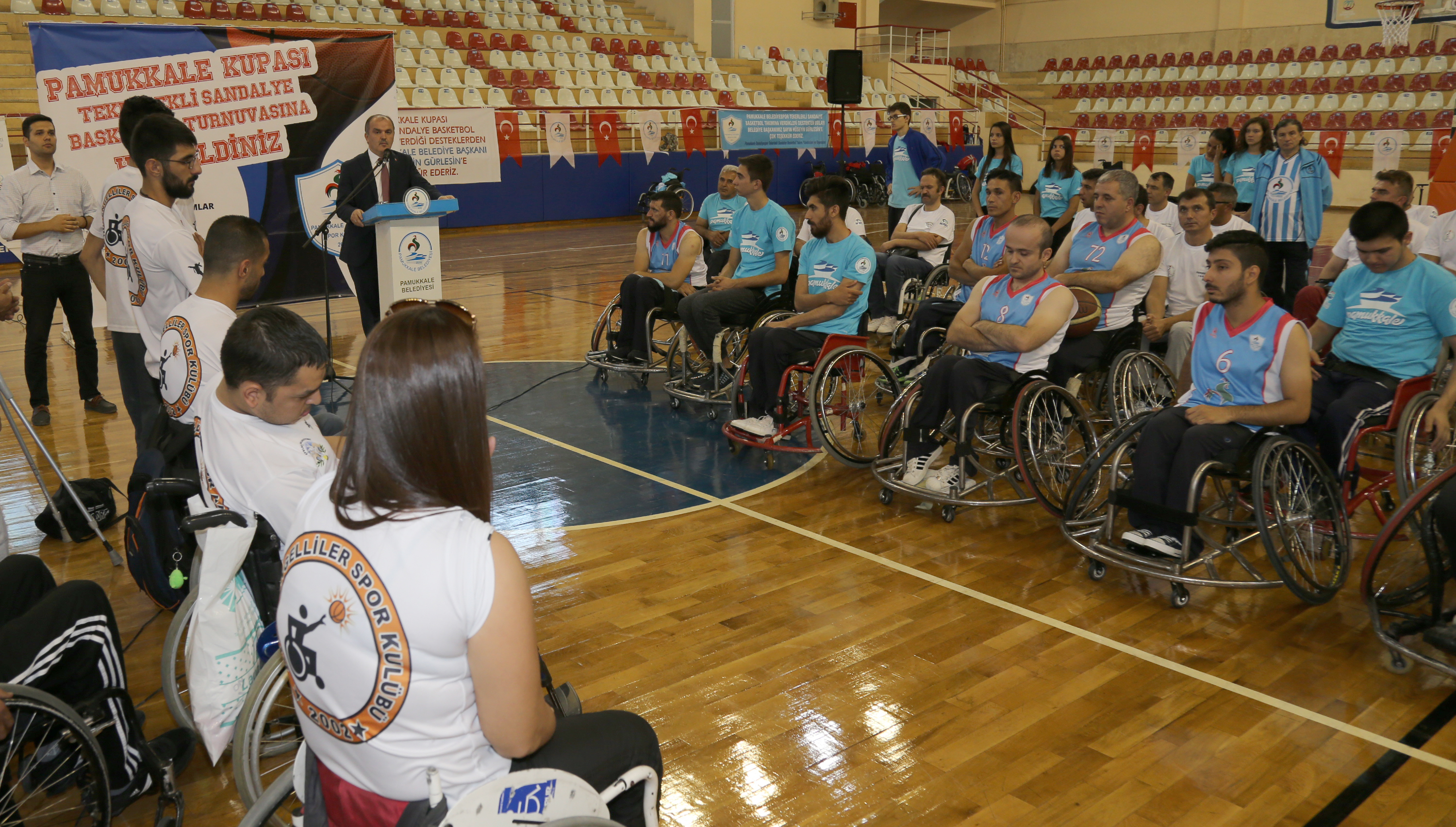 Pamukkale Belediye Spor Kulübü’nün organize ettiği “Pamukkale Kupası Tekerlekli Sandalye Basketbol Turnuvası” başladı. Hasan Güngör Spor Salonu’nda 5 takımın katılımı ile yapılan turnuvanın açılışında konuşan Pamukkale Belediye Başkanı Hüseyin Gürlesin, “Biz engelliler pozitif ayrımcılık yapıyoruz. Kurduğumuz kulüpte ilk faal olan branşımız tekerlekli sandalye basketbol takımı oldu” dedi.