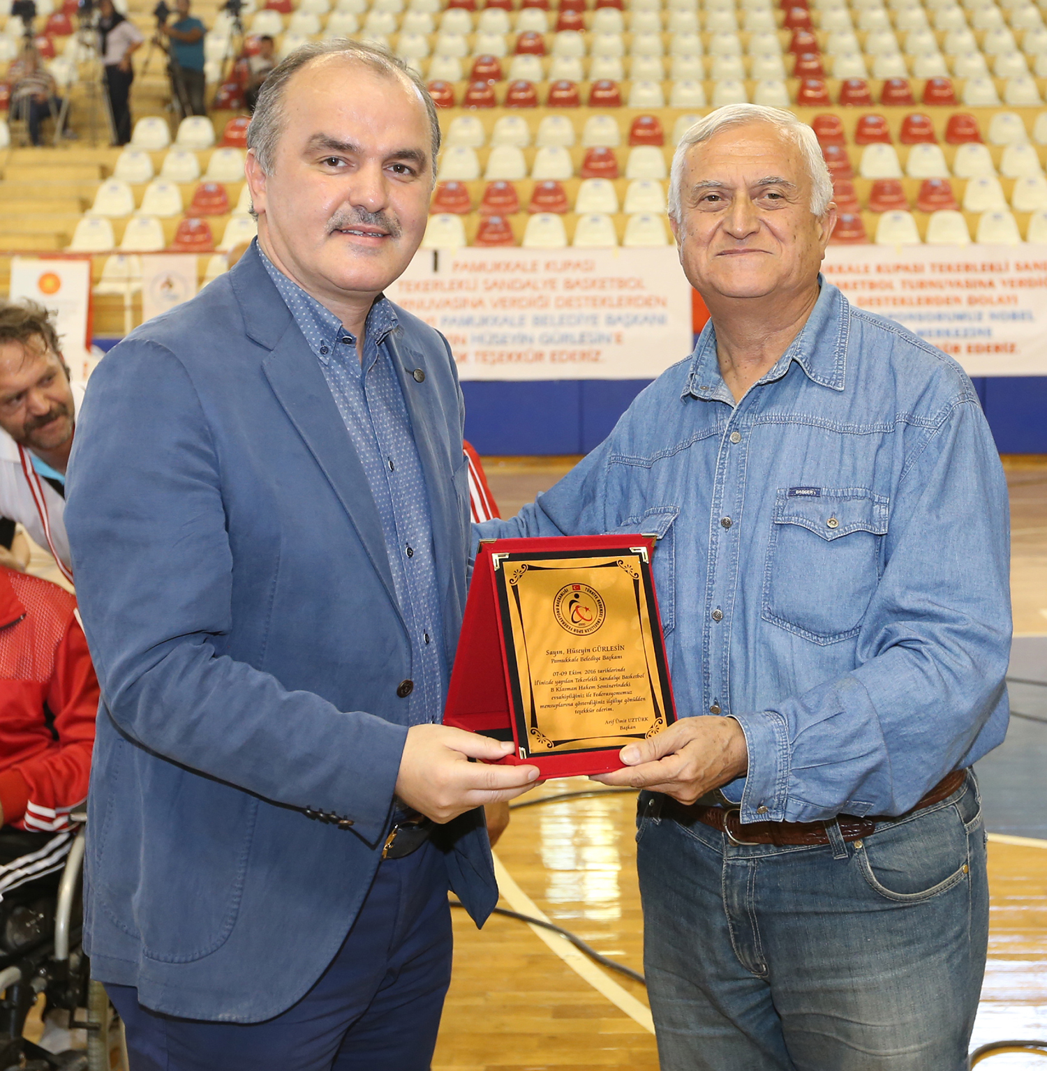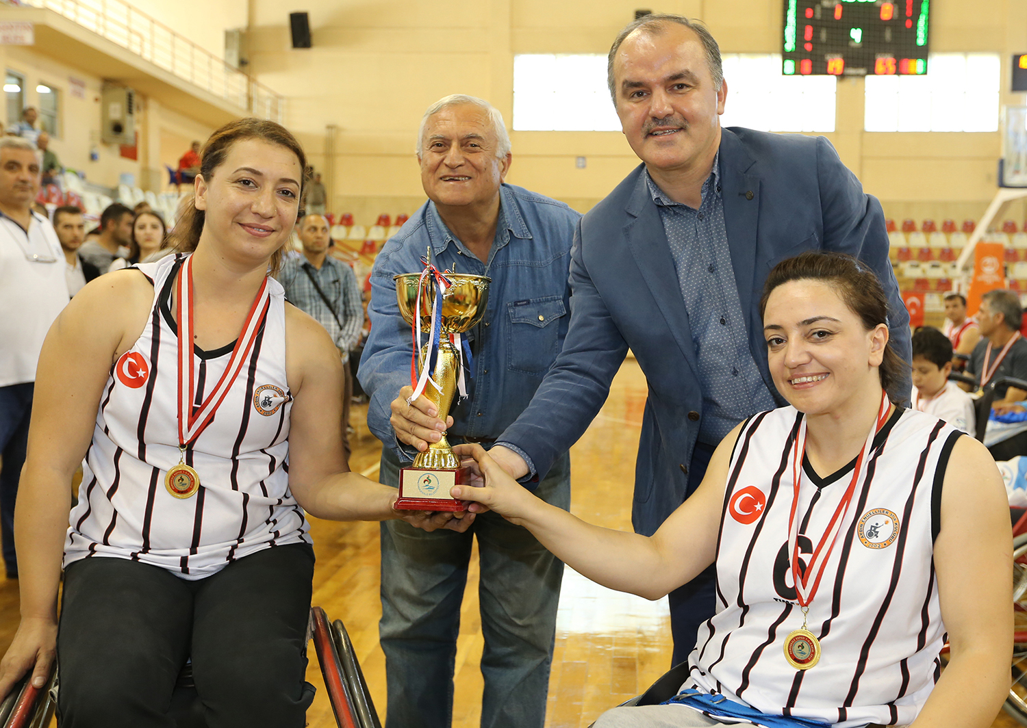 “Pamukkale Kupası Tekerlekli Sandalye Basketbol Turnuvası”nda beşinci olan Yozgat Sorgun Engelliler Spor Kulübü’nün kupa ve madalyalarını Bedensel Engelliler Federasyonu Merkez Hakem Komitesi Başkanı Eyüp Sabri Çiçek verirken, dördüncü olan Pamukkale Belediyespor Kulübü’nün kupa ve madalyalarını Gençlik Hizmetleri Spor İl Müdürü Ahmet İbanoğlu verdi. Turnuvanın üçüncülüğü kazanan Eskişehir Engelliler Spor Kulübü’nün ödüllerini Nobel Tıp Merkezi Yönetim Kurulu Başkanı Dr. Turgay Sehil verirken, turnuvanın ikincisi İskenderun Atletik Gençlik ve Spor Kulübü’nün ödülleri Pamukkale Belediye Başkanı Hüseyin Gürlesin tarafından teslim edildi. Pamukkale Kupası’nda şampiyon olan Aydın Bedensel Engelliler Spor Kulübü’nün madalyalarını Pamukkale Belediye Başkanı Hüseyin Gürlesin takarken kupayı Başkan Gürlesin ile birlikte Türkiye Bedensel Engelliler Federasyonu Asbaşkanı Nejat Yeniatakan teslim etti. Yeniatakan, katkılarından dolayı Başkan Gürlesin’e teşekkür plaketi verdi.