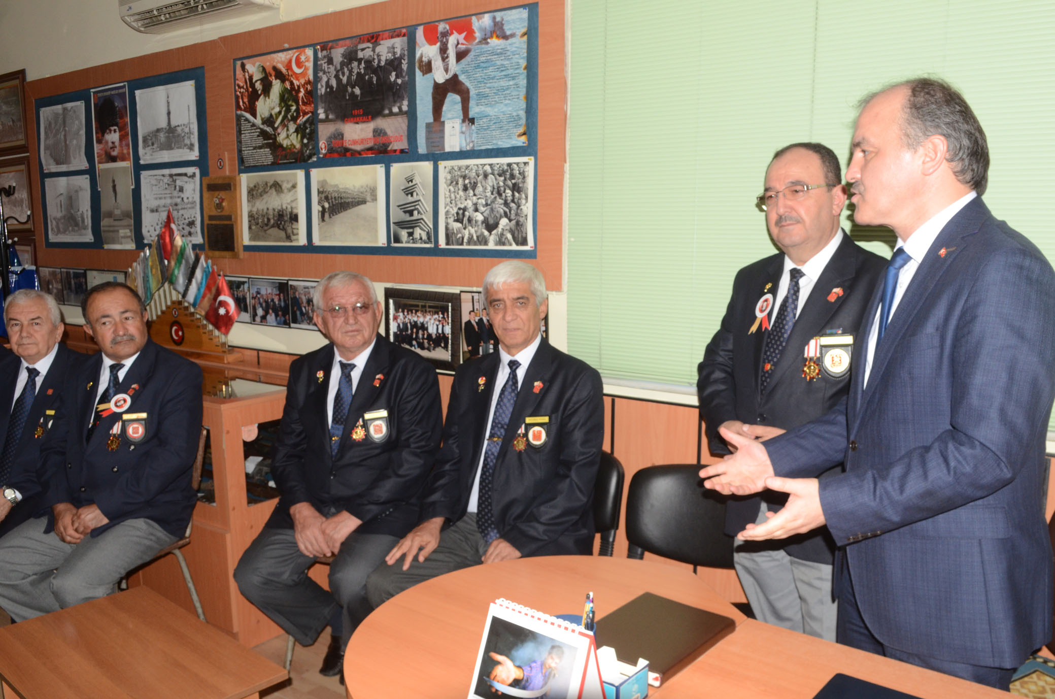 Baskan Gürlesin, Sehitler ve Gaziler Haftasi etkinlikleri kapsaminda Muharip Gaziler Dernegi'ne gitti. Muharip Gaziler Dernegi Baskani Hamdi Helvacilar ve beraberindekiler Baskan Gürlesin'i dernek girisinde karsiladi. Baskan Gürlesin, tüm gazi ve yakinlariyla tek tek tokalasarak sohbet etti. Dernek Baskani Helvacilar, Pamukkale Belediye Baskani Gürlesin'in Özel Idare Baskani oldugu dönemlerden bugüne dernege destegini gördüklerini belirterek, ?Bugün de bizleri ziyaret ederek bu anlamli günde en büyük hediyeyi verdi. Baskanimizi çok yakindan takip ediyoruz. Izledigimiz kadariyla yerinde durmuyor sürekli disarida ve arazide oluyor. Insallah emekleri bosa gitmez. Baskanimiz Gürlesin, 6 ay gibi kisa sürede hizmette ödün vermeyecegini gösterdi. Bu çalismalarin arkasi gelecektir. Özel Idareden kendisini biliyoruz, gelecekte çok daha basarili olacaktir. Böyle bir günde bizi yalniz kirmadigi için tesekkür ediyorum' dedi. Baskan Gürlesin de, sehitler ve gazilerin ayri bir yeri oldugunu söyledi. Sehitler ve gazilerin ayri bir kategoride degerlendirdigini kaydeden Baskan Gürlesin, söyle dedi: ?Onlari çok farkli kategoride degerlendiririz. Sehitlerimiz ve gazilerimiz ile yakinlari, canini, malini evladini ortaya koymus ve bugünlere gelinmistir. Onun için sizlerin yeri farklidir. Tüm sehitlerimizi basta Gazi Mustafa Kemal Atatürk olmak üzere rahmetle aniyoruz. Gazilerimize de Allah uzun ömürler versin diyoruz. Sizler bizim çok özel ve degerlisiniz. Biz sizleri seviyoruz. Özel Idare Baskanligi döneminde içimizde kalan bir ukdemiz var. Insallah onu yerine getirecegiz. O dönem bazi sartlar nedeniyle yapamadik ve o sözü bugüne sakladik. Insallah gazilerimize kiyafet sözünü yerine getirecegiz. Sizlerin toplum içinde farkli bir yeriniz oldugunuzu hissettirecegiz. Insallah o sözümüzü kisa sürede yerine getirecegiz' dedi. Daha sonra Baskan Gürlesin ve gaziler ile yakinlari, birlikte fotograf çektirdi.