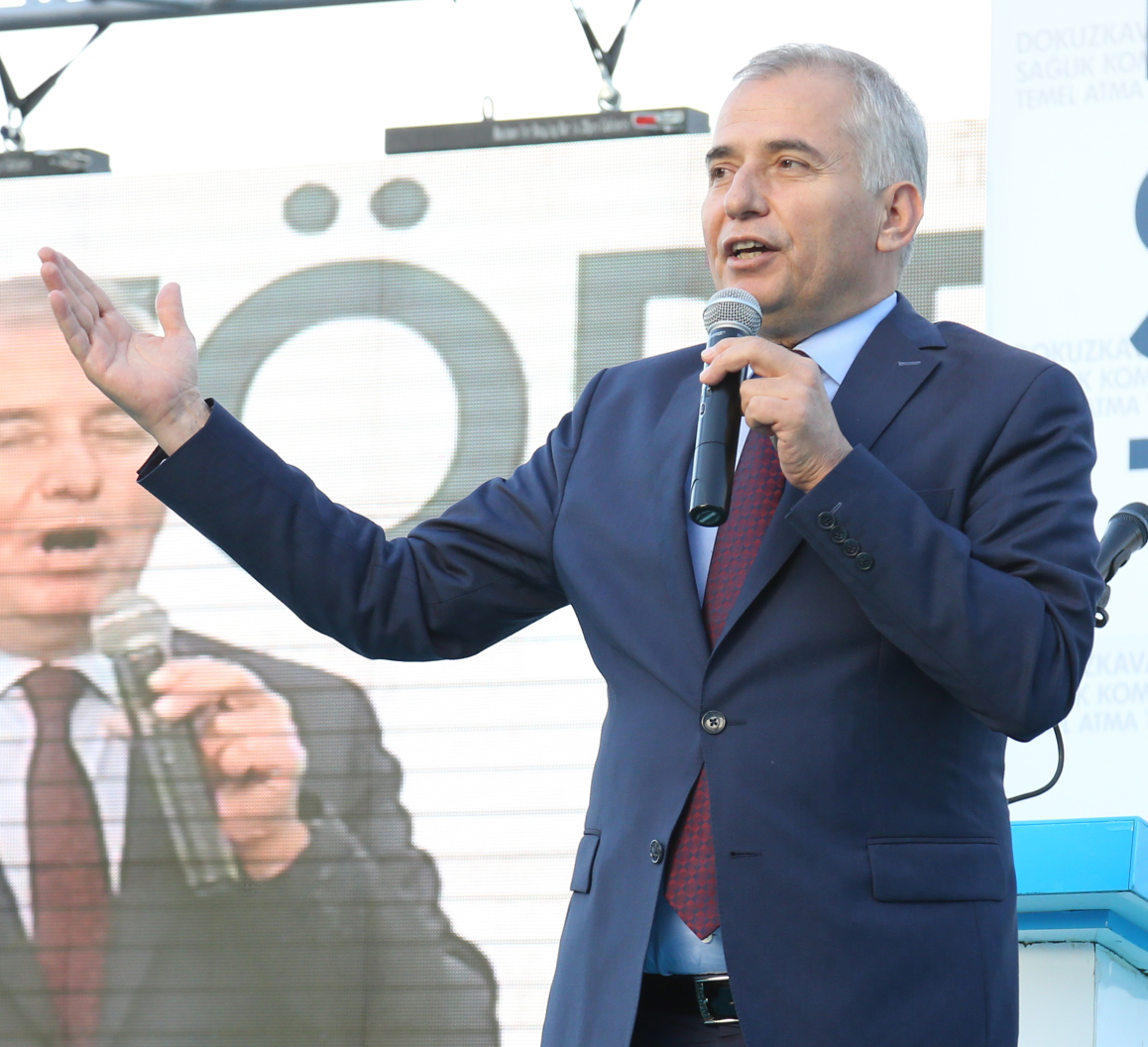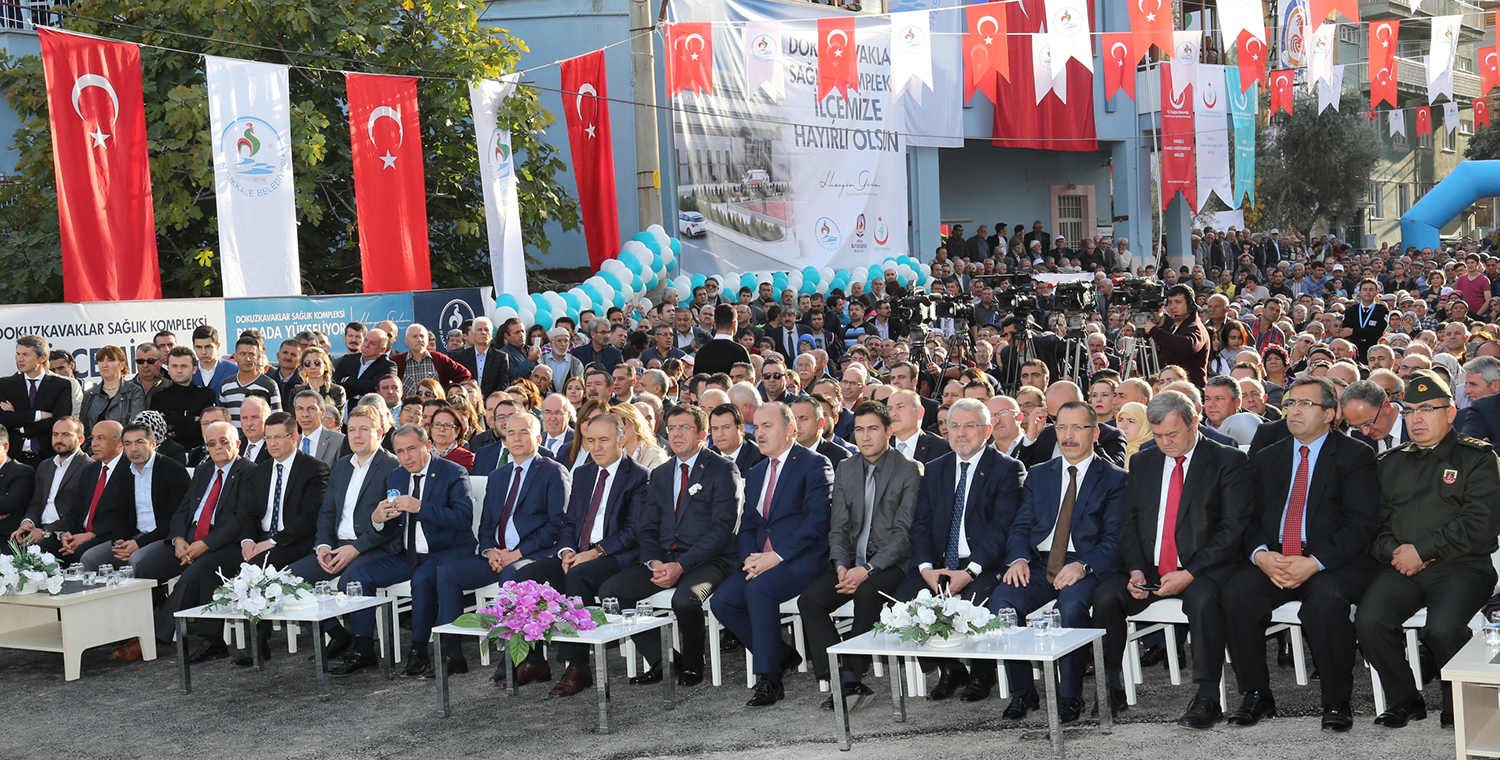 Ekonomi Bakanı Nihat Zeybeksi ise konuşmasında ‘Dokuzkavaklar Sağlık Kompleksi’nin Türkiye’de bir ilk olduğunu ifade ederek, “Bizim belediye başkanı olduğumuz zamanlarda bir projeyi hayat geçirmek mümkün olmuyordu. Çünkü bir hizmet yapmak isteseniz hemen ‘bu belediyenin işi değil’ derlerdi. Biz risk alıp bir çok projeyi hayat geçirdik. Pamukkale Belediye Başkanı Hüseyin Gürlesin de bu önemli proje ile ilke imza attı. Böylece ilk kez bir belediye hastane yapmış oluyor. Arsasını Büyükşehir Belediyesi verirken, Pamukkale Belediyesi 18 milyon lira harcayarak sadece vatandaşın sağlık hizmetine daha çabuk ulaşmasını sağlamak için projeye imza attı. Ben ülkede örneği olmayan bu projenin tamamlandıktan sonra Sağlık Bakanlığı’na devredilerek halka hizmet vermesi sağlanacak. Bunun için başta Pamukkale Belediye Başkanı Hüseyin Gürlesin olmak üzere Denizli Büyükşehir Belediyesi’ne, Kamu Hastaneleri Genel Sekreterliği’ne ve emeği geçen herkese teşekkür ediyorum” dedi. ‘Dokuzkavaklar Sağlık Kompleksi’nin Denizli için çok büyük bir nimet olduğunun altını çizen Ekonomi Bakanı Nihat Zeybekci, “Artık eskiden günlerce hastanede muayene, ilaç kuyruğuna girip şifa aranıyordu. Ama Ak Parti, halkın sağlık hizmetine en kısa yoldan ulaşması için sağlıkta önemli devrimler yaptı. Bu komplekste devrimin devamı niteliğinde. Tesisin tüm halkımıza hayırlı olmasını dilerim” dedi. Konuşmaların ardından “Dokuzkavaklar Sağlık Kompleksi”nin temeli İl Müftüsü Mehmet Aşık’ın dualarıyla protokol üyeleri tarafından atıldı.