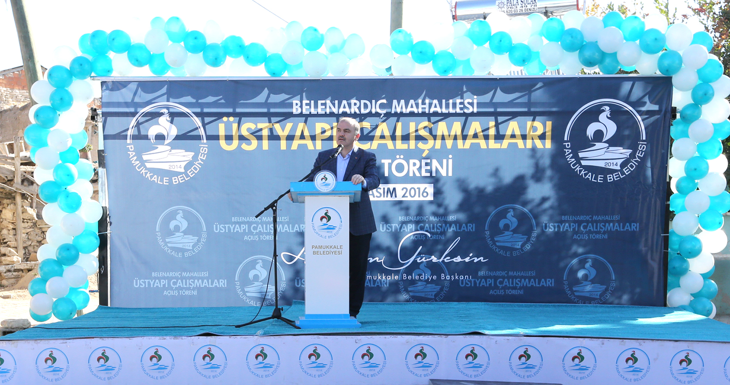 Pamukkale Belediye Başkanı Hüseyin Gürlesin, törende yaptığı konuşmada göreve geldikleri ilk günden bu yana 68 mahalleye de hizmet götürdüklerini ifade ederek, “Belenardıç mahallemizde üst yapı çalışmaları büyük oranda bitti. Artık bu mahallemizde vatandaşlarımız tozdan ve çamurdan kurtulmuş oluyor. Mahallemizde sadece parke taşı yapmadık. Arazi yollarının genişletilmesi ve mezarlık çevresinin düzenlemesi de yapıldı. Ayrıca MOBESE kameraları da yıl sonuna kadar tamamlanış olacak. Çeşitli kalemlerden oluşan çalışmalarımız devam edecek. Halkımızın kapalı pazaryeri talebi var. Onu da görev süremiz sonuna kadar yerine getirmek istiyoruz. Bizler halkımızın derdiyle dertleniyoruz. Bize verilen emanetin bilinciyle son güne kadar çalışmaya devam edeceğiz. Çalışmalarımızı bu yönde yapıyoruz. Üst yapı çalışmaları mahallemize hayırlı olsun” dedi.