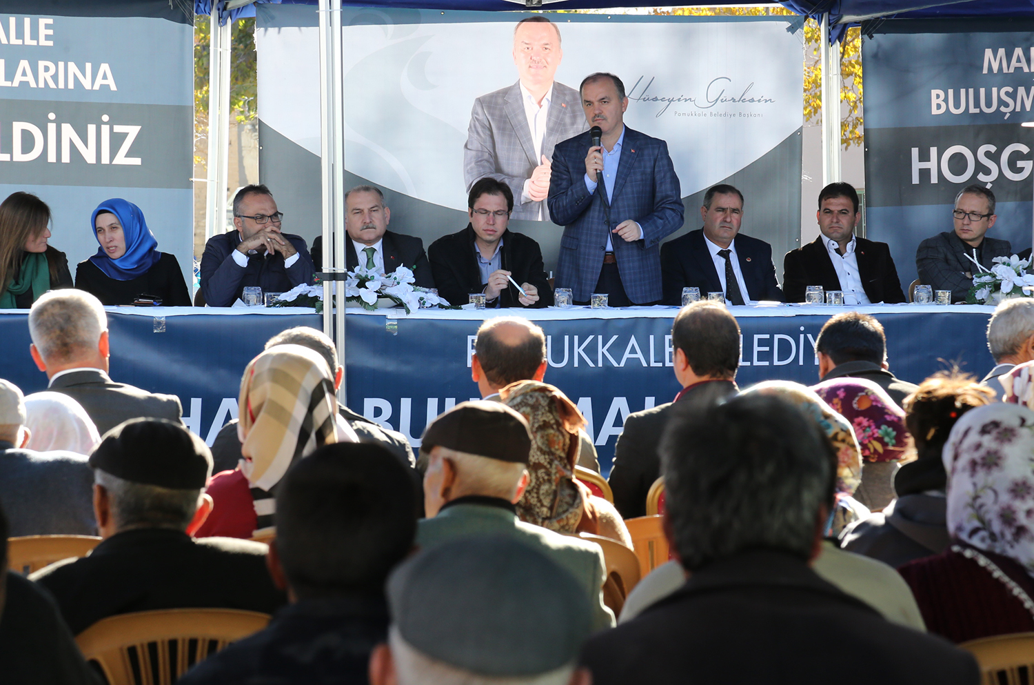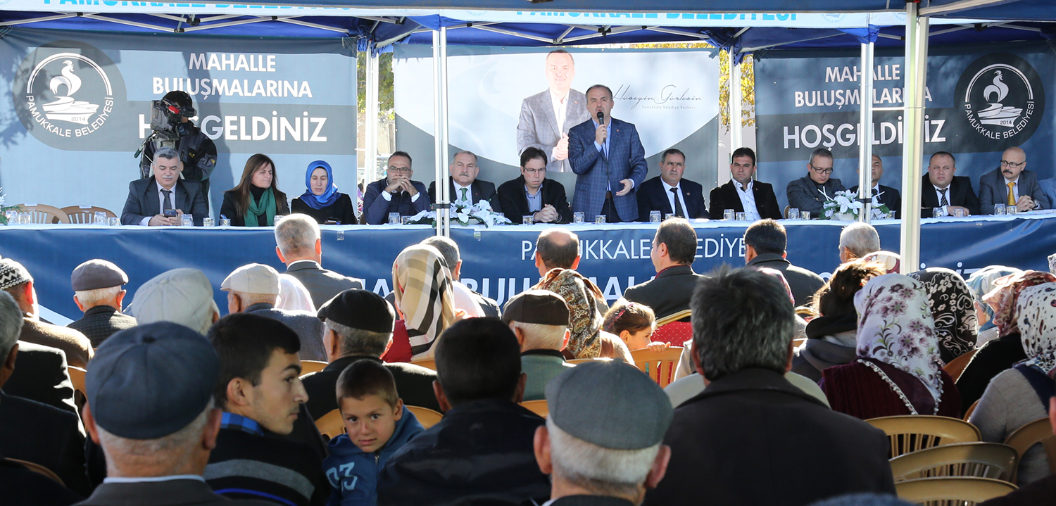 Pamukkale Belediyesi’nin 30 Mart 2014’te kurulan bir belediye olduğunu ifade ederek konuşmasına başlayan Pamukkale Belediye Başkanı Hüseyin Gürlesin, mazbatayı alarak hizmet etmeye başladıkları 8 Nisan 2014’ten bu güne kadar 68 mahalleye de dokunmayı hedeflediklerini ve bunu başardıklarını söyledi. “Bize güvenerek verdiğiniz bu emanetin hakkını vermek için gece gündüz demeden çalışıyoruz” diyen Başkan Gürlesin, “Biz göreve başladığımız günden bu yana 331 bin insanımızın yaşadığı 68 mahallemize mutlaka ulaştık. En acilleri başta olmak üzere ne gerekiyorsa yerine getirdik. Belenardıç merkeze 31 kilometre uzaklıkta bir mahalle. Bizim Belenardıç gibi 68 mahallemiz var. Yükümüzün ağırlığının farkındayız. Ancak sizlerin verdiği destekle yine sizlere hizmet etmek bize nasip oldu. İyi planlamayla halkımızın taleplerini yerine getirmek için çalışıyoruz. Belenardıç bize destek verdi, biz de hizmetlerimizle teşekkür ediyoruz. Ancak biz siyasi duruma bakmadan 68 mahallemizde de hizmet götürüp, halkımızın mutlu olmasını sağlamaya çalışıyoruz. Ben ve ekibim ile birlikte tüm belediye personelimiz halkımızın hizmetkarı olduğunu bilerek çalışmalarına devam ediyor” dedi.