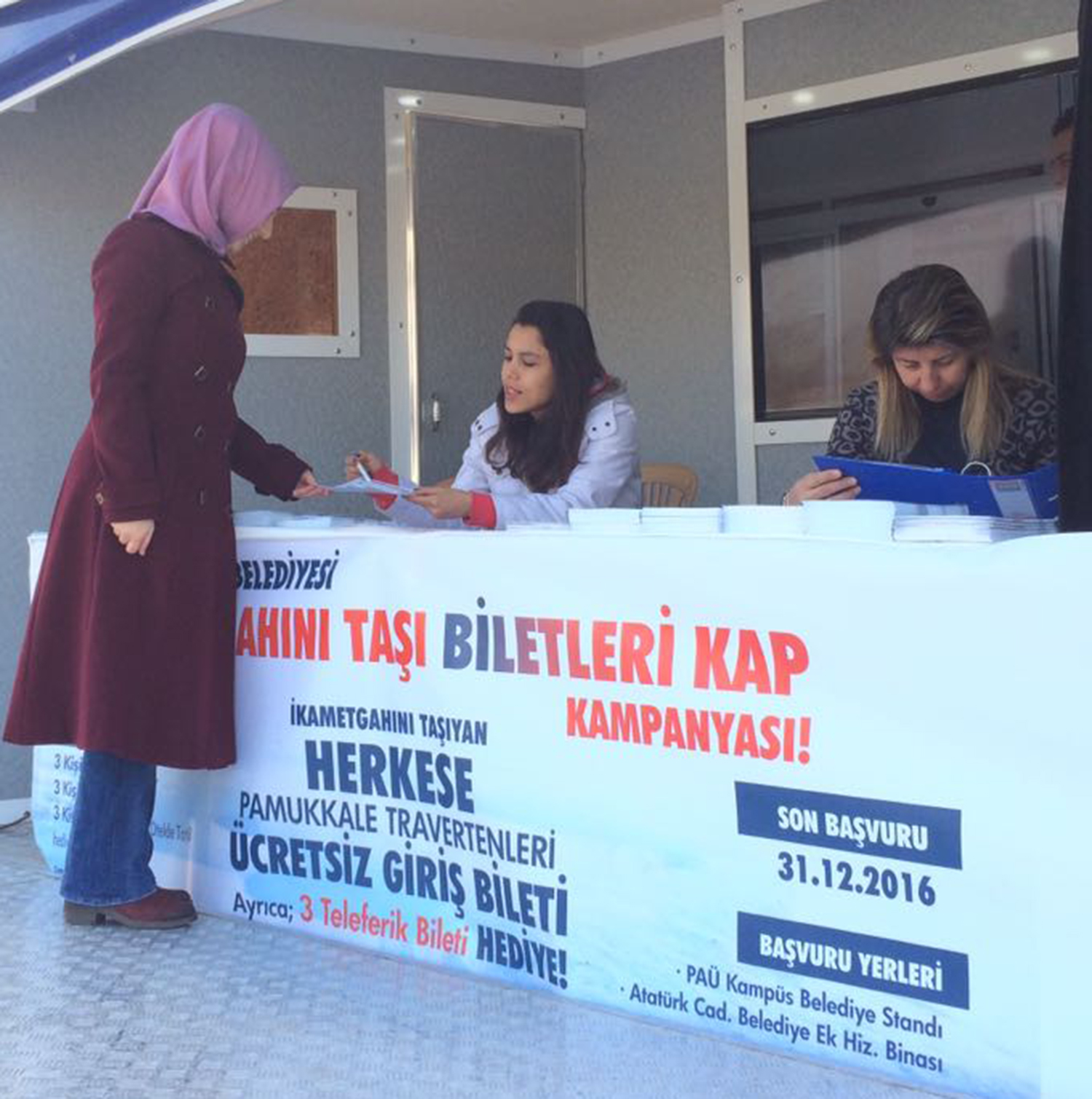 İlçe sınırları içinde Pamukkale Üniversitesi’ni de bulunduran Pamukkale Belediyesi, bu üniversitenin öğrencileri için çeşitli projeleri hayata geçiriyor. Geçen yıl ilki yapılan ““İkametgâhını Taşı, Bileti kap” kampanyasının ikincisine başvurular başladı. Kampanya çerçevesinde eğitim hayatlarını Pamukkale Üniversitesi’nde devam eden ve ilçe sınırları içinde ikamet eden öğrencilerinin ikametgâhlarını Pamukkale ilçesine taşımaları halinde çeşitli ödüller alabilecek.