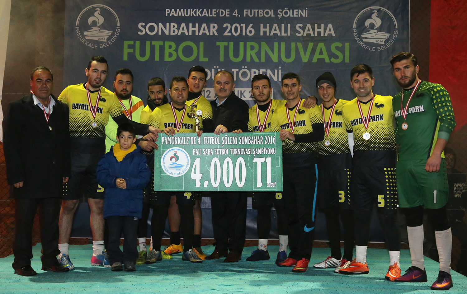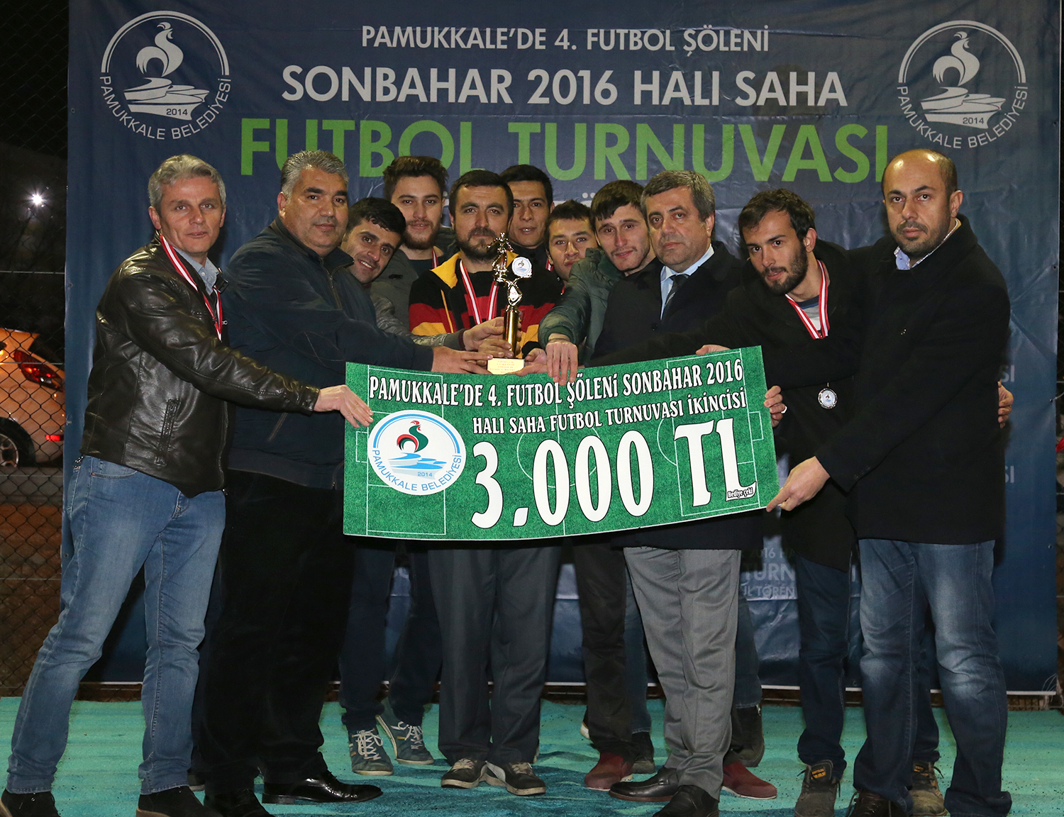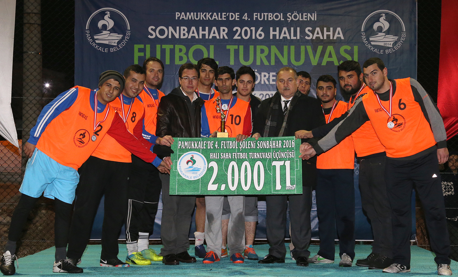 Pamukkale Belediyesi’nin düzenlediği “Pamukkale’de 4. Futbol Şöleni Sonbahar 2016 Halı Saha Futbol Turnuvası”nda mutlu sona ulaşan takım belli oldu. Karahayıt’ta oynana final grubunun son maçında Çerkez Mahallesi Akköyspor’u 5-2 yenen Pamukkale FC takımı oldu. Pamukkale Belediye Başkanı Hüseyin Gürlesin, şampiyon takımın kupa, madalya ve ödüllerini verirken, “Mahalleler arası kaynaşmayı sağlamak amacıyla düzenlediğimiz turnuvamız centilmence geçti. Dereceye giren takımları kutluyorum” dedi.