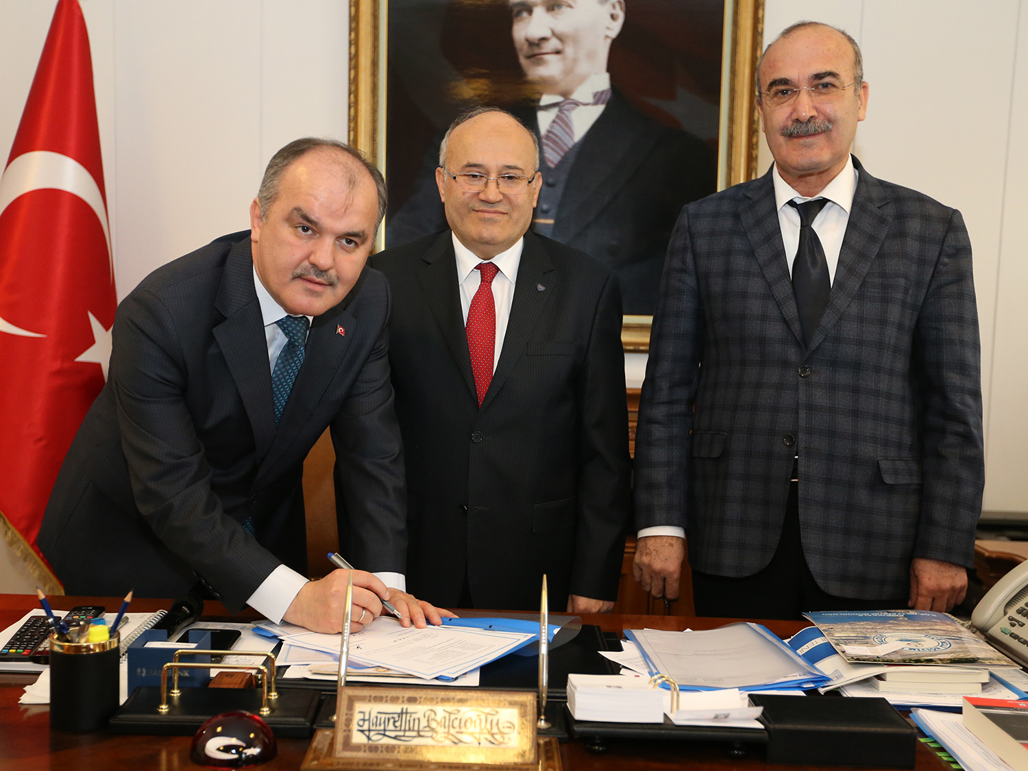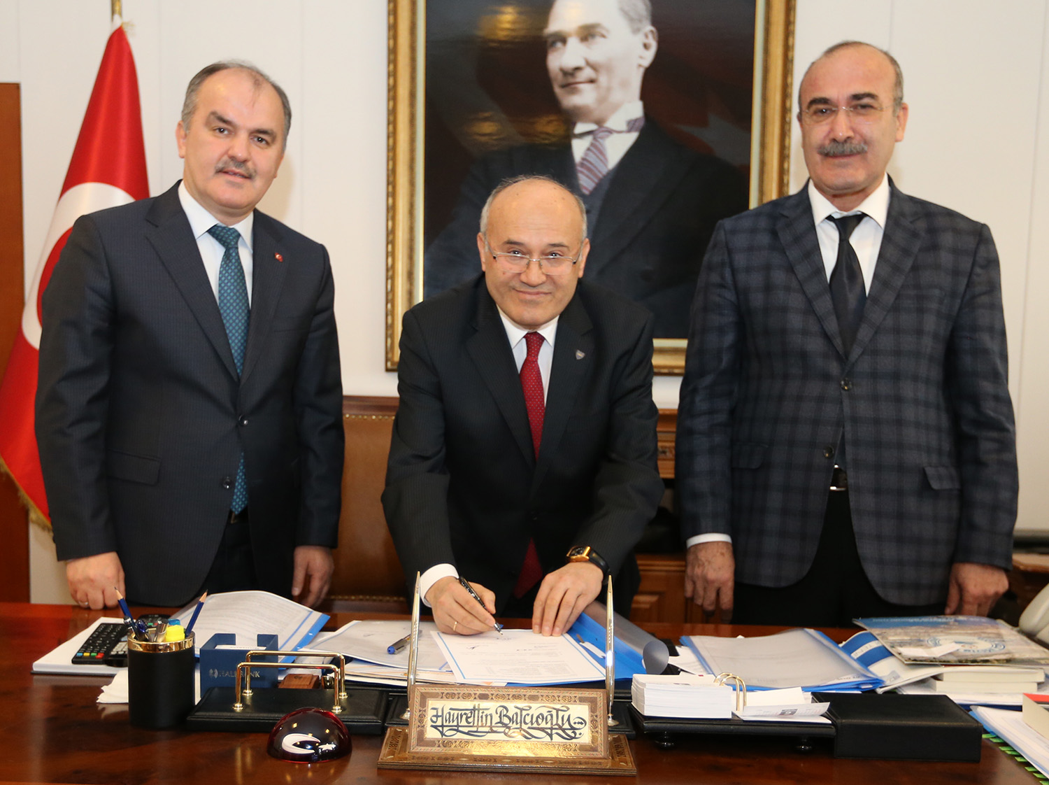 Pamukkale Belediye Başkanı Hüseyin Gürlesin ise spora ve eğitime büyük önem verdiklerini ifade ederek, “Geçen yıl Pamukkale Belediyesi olarak halı sahalar yaptık. Bunların 8 tanesi okulların bahçesinde idi. Bu halı sahaları Milli Eğitim Müdürlüğü’ne devrediyoruz. Bu sahalar gündüzleri yine ücretsiz bir şekilde öğrencilere tahsis edilecek. Akşamları da o bölgede yaşayan vatandaşlarımızın kullanımına açılacak. Cüzi bir miktarla kiralanacak olan halı sahalardan sağlana gelir Okul Aile Birlikleri’ne katkı olacak. Biz bu tesisler sayesinde hem spora hem de eğitime destek vermiş olduk. Eğitime ne kadar yatırım yapılırsa azdır. Biz de Pamukkale Belediyesi olarak eğitime ve spor yatırım yapmaya devam edeceğiz” diye konuştu. Konuşmaların ardından konuyla ilgili protokol Pamukkale Kaymakamı Hayrettin Balcıoğlu, Pamukkale Belediye Başkanı Hüseyin Gürlesin ve Pamukkale İlçe Milli Eğitim Müdürü Reşat Erdoğan tarafından imzalandı.