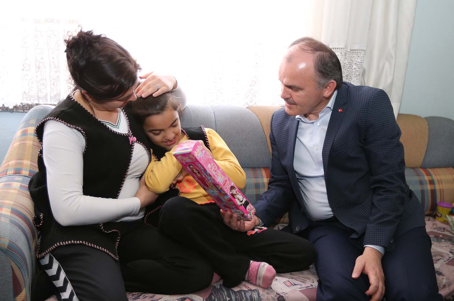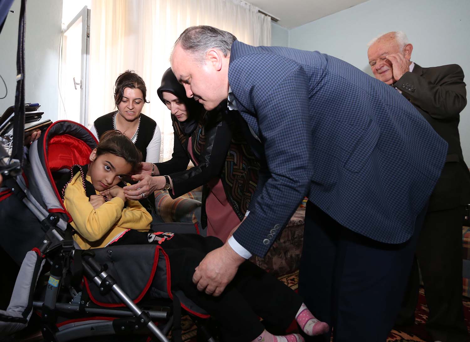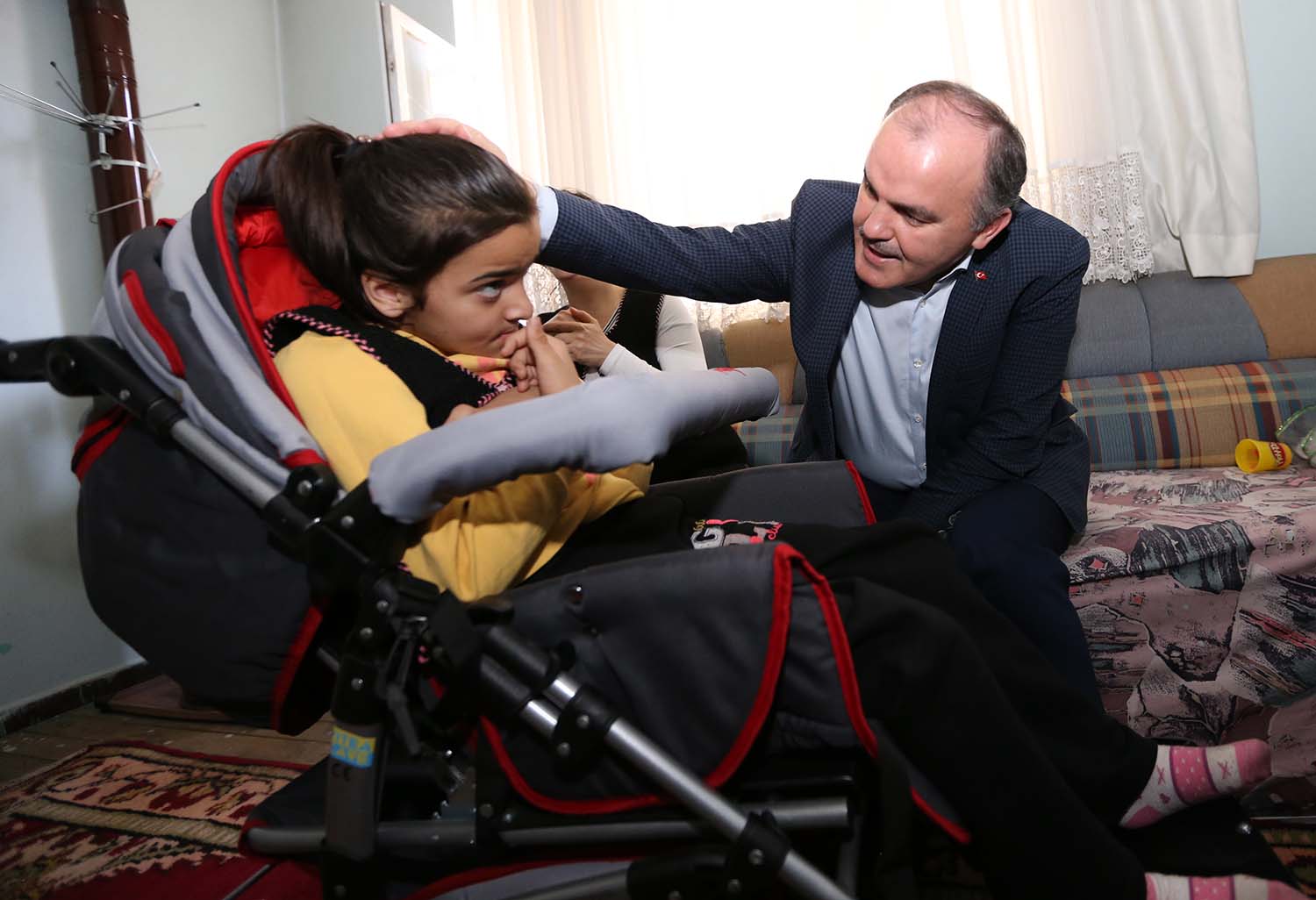 Topraklık Mahallesi’nde yaşayan aileyi evinde ziyaret eden ve Sude’ye moral veren Pamukkale Belediye Başkanı Hüseyin Gürlesin “Ailemizin diğer ailelerimize örnek olmasını istiyoruz. Sude kızımız gibi ya da farklı bir durumu olan ilçe sınırlarımız içerisinde yaşayan ailelerimizin bizlere ulaşmalarını istiyorum. Başvurularını yapsınlar, bizlerde inceleyelim ve gerçekten ailenin yardıma ihtiyacı varsa, bir anlamda ellerinden tutup onların dertleriyle dertlenmek istiyoruz” dedi. Başkan Gürlesin, anne Özlem Çetin’in dışarıda kızını daha rahat gezdirebilmesi, sosyal yaşama dahil kolay adapte olabilmesi açısından engelli bebek arabasının aile için büyük önem arz ettiğini belirtti. Gürlesin, “Bizler sosyal belediyecilikte çok farklı olduğumuzu iddia ediyoruz. Sosyal Market başta olmak üzere hasta yatağı, engelli arabası hediyelerimiz devam ediyor. Ailelerimizin derdi derdimiz, sıkıntısı sıkıntımız ve mutlulukları da mutluluğumuz oluyor. Bizim yapmak zorunda olduğumuz işlerimiz var ama Sude kızımızın yüzünü güldürmenin hepsinin üzerinde bir görev olduğunu düşünüyorum. Amacımız ailelerimizin hayır dualarını almak. Biz sosyal belediyecilik uygulamalarımızla farklılığı göstermek istiyoruz. Günlük işler peşinde değiliz uzun vadeli gönülleri hitap bir belediye olduğumuzu gösterme gayretindeyiz” diye konuştu.