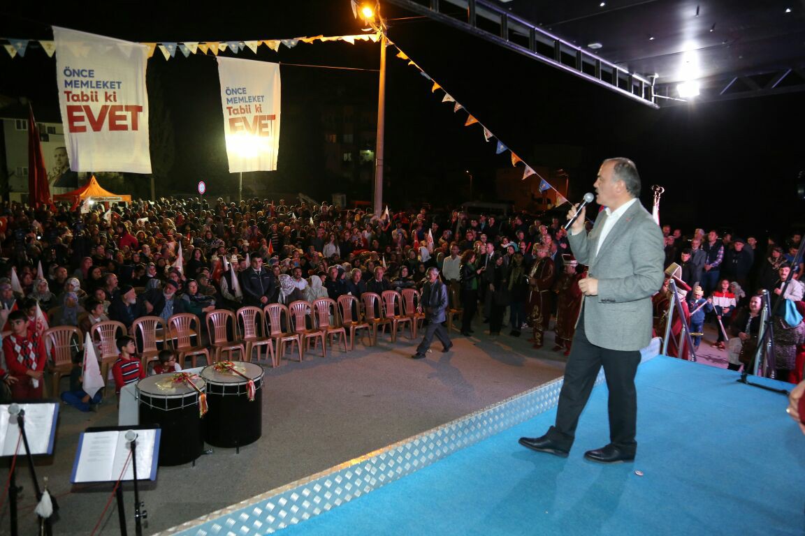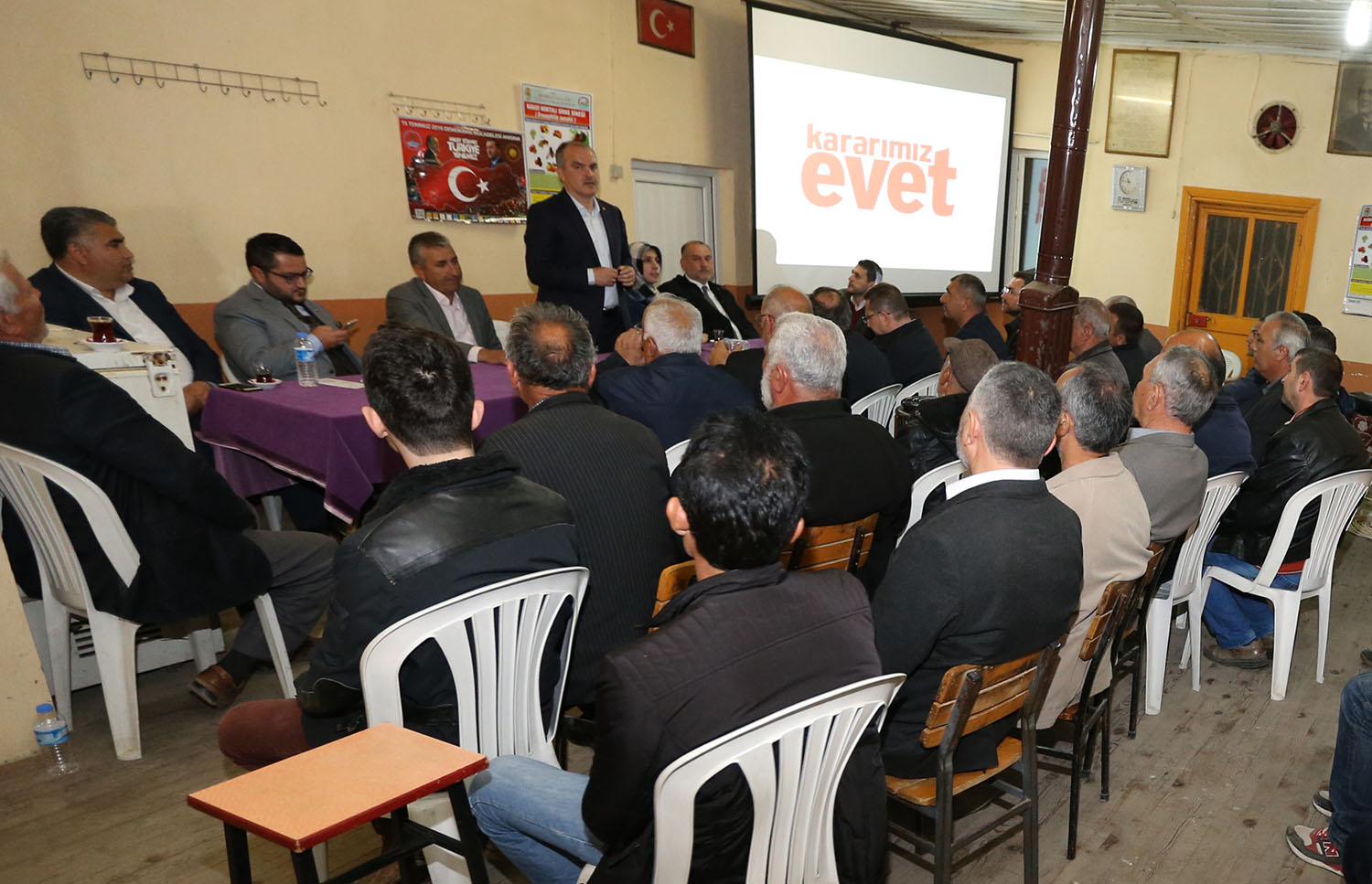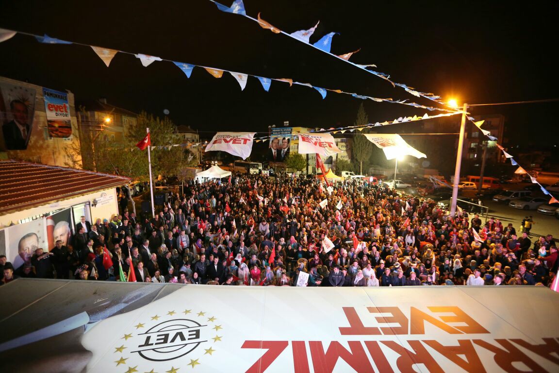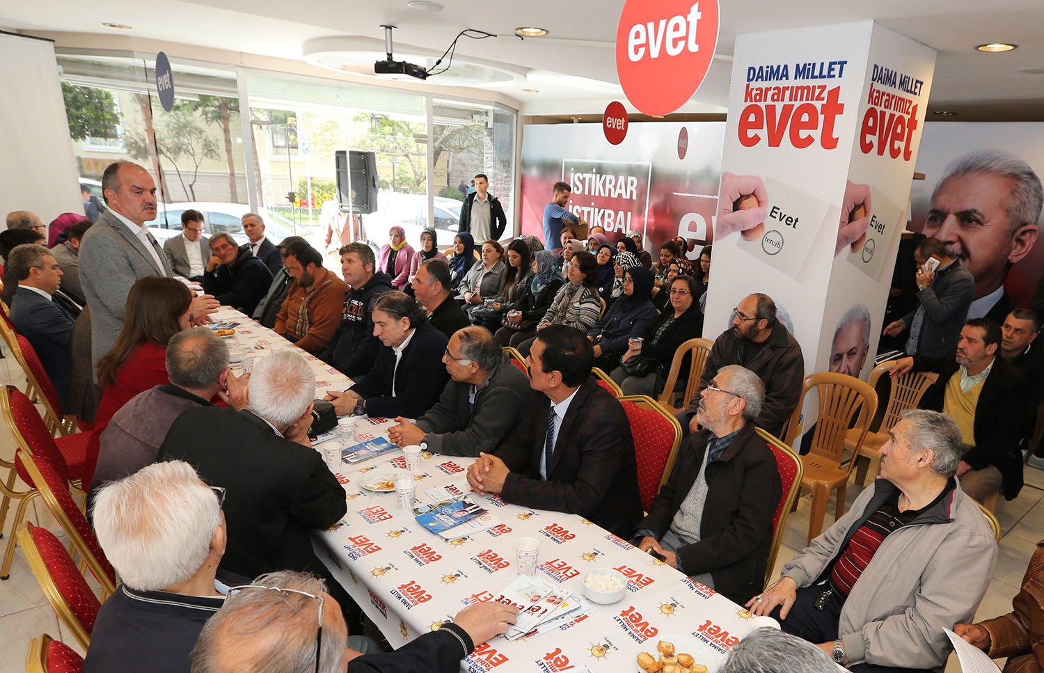 Pamukkale Belediye Başkanı Hüseyin Gürlesin, 16 Nisan’da vatandaşların Türkiye için ‘evet’ demeleri gerektiğini ifade ederek, “Anayasa değişikliği ile Türkiye’nin ayağındaki prangalar sökülecek. Türkiye büyümeye, gelişmeye daha hızlı bir şekilde devam edecek. O nedenle 18 maddenin yer aldığı bu değişikliğe vatandaşlarımızın onay vermesi için değişiklikleri kendilerine her fırsatta anlattık. Bazen iş yerlerini ziyaret ettik, bazen mitingler düzenledik bazen de kahvehanelerde bir araya geldik. Biz referandumda nelerin değişeceğini anlatmak için gece gündüz demeden çalıştık. 68 mahallemizin tamamına en az 2’şer kez gittik. Bazı mahallelerde ise defalarca bilgilendirme toplantıları düzenledik. Neredeyse ulaşmadığımız vatandaşımız kalmadı. 15 Temmuz Delikliçınar Şehitler Meydanı’ndaki Yeni Camii arkasındaki Pamukkale Seçim Bilgilendirme Merkezi’nde de halkımızla buluştuk. Bizim tek bir amacımız var o da Türkiye’nin daha iyi noktalara ulaşması. Halkın daha iyi şartlarda yaşaması. O’nun tüm Pamukkaleli vatandaşlarımızın 16 Nisan’da ‘evet’ demesini bekliyoruz. Türkiye, için, bayrak için, millet için, istikrar için, istikbal için ‘evet’ denmesini bekliyoruz. Ben ülke genelinde, Denizli’de ve ilçemizde ‘evet’in kazanacağına inanıyorum” dedi.