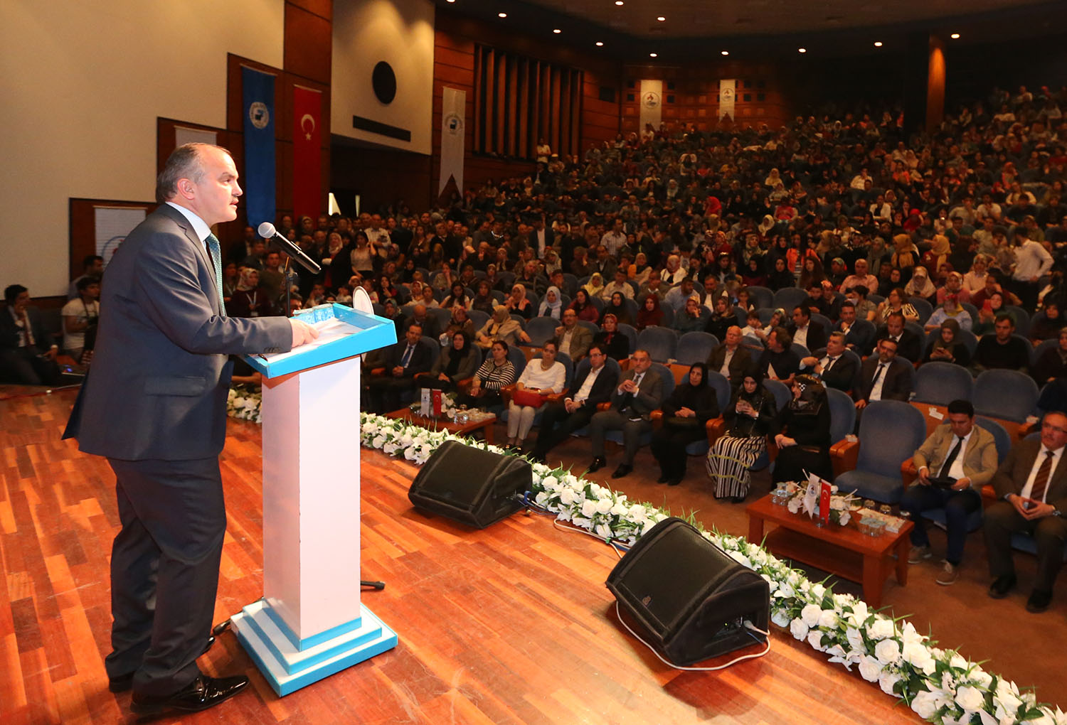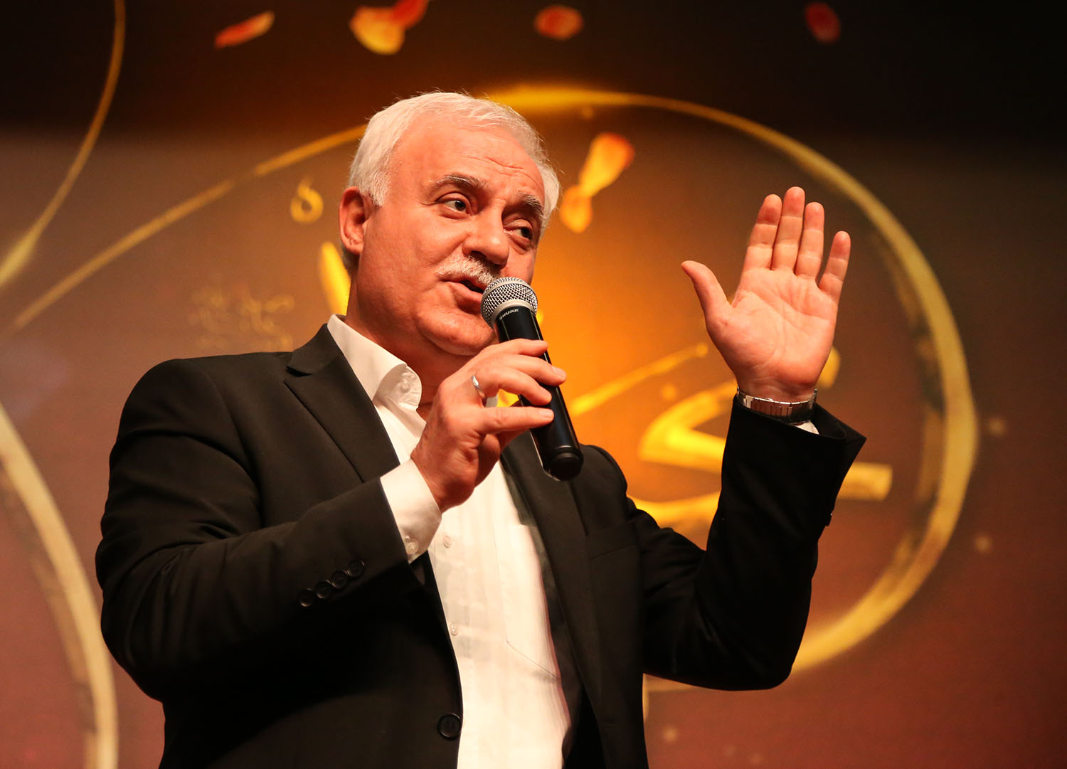 Daha sonra ise ünlü İlahiyatçı Prof. Dr. Nihat Hatipoğlu sahne aldı. Kutlu doğum etkinliğini organize eden Pamukkale Belediye Başkanı Hüseyin Gürlesin’e teşekkür ederek konuşmasına başlayan Prof. Dr. Nihat Hatipoğlu, Peygamber Efendimizin hayatını ve çektiği zorlukları anlattı. “Kuran’ı Kerim baştan sona Peygamber Efendimiz Hz. Muhammed(sav)’in hayatını anlatıyor” diyen Prof. Hatipoğlu, “Kuran’ı Kerim’i anlamak O’nu anlamaktır. Peygamber Efendimiz Miraç’a çıktı, Taif’te taşlandı, Mekke’de zulüm gördü, Bedir’de zafer kazandı, Uhud’da yara aldı sonra hicret etmek zorunda kaldı. Dostlarını, akrabalarını bir bir kaybetti. Ama o İslam dinini yayma davasından hiç vazgeçmedi. Tüm hayatını ibadet ederek ve İslam dinini yaymakla geçirdi. Peygamber Efendimiz son zamanlarda biraz durgunlaştı, sohbetlerini çoğalttı. Veda mahiyetinde son bilgilerini sık sık paylaşır oldu. En son olarak Veda Hutbesi’nde herkesten helallik isteyerek ardından dünyadan ahirete hicret etti” şeklinde konuştu. Programın sonunda Pamukkale Belediye Başkanı Hüseyin Gürlesin, Prof. Dr. Nihat Hatipoğlu ile birlikte programa katılan Ammar Acaroğlu ve Emrullah Uzun’a günün anısına çeşitli hediyeler verdi.