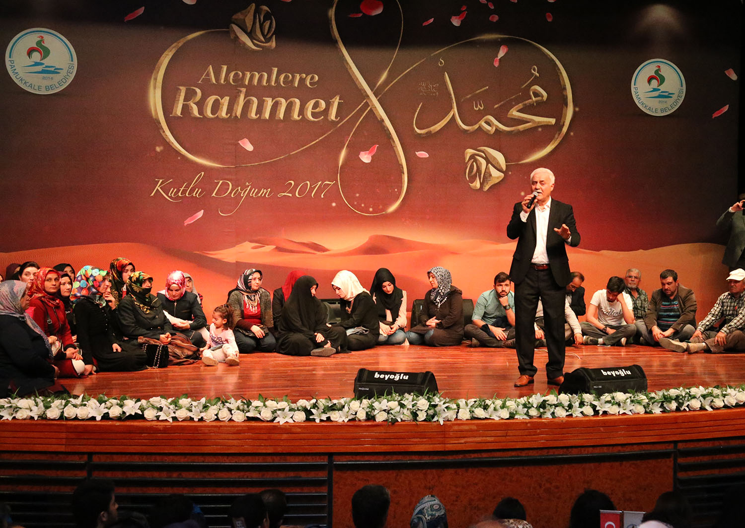 Peygamber Efendimiz Hz. Muhammed(sav)’in doğum yıldönümü olan kutlu doğum haftası nedeniyle Pamukkale Belediyesi, bir anma programı gerçekleştirdi. Bu önemli etkinliğe Pamukkale Belediye Başkanı Hüseyin Gürlesin ev sahipliği yaparken, başkan yardımcıları Selim Arkan, Adnan Kaya, Veli Demir, Türkay Gözlükaya, Abdullah Sevinçli ile PAÜ Rektör Yardımcısı Prof. Dr. Refat Kılınçarslan, AK Parti İl Kadın Kolları Başkanı Aynur Akdemir, Pamukkale Kadın Kolları Başkanı Halise Akar ve çok sayıda Denizlili programa katıldı. . Pamukkale Üniversitesi Kongre ve Kültür Merkezi’nde düzenlenen programa konuşmacı olarak ünlü İlahiyatçı Prof. Dr. Nihat Hatipoğlu katıldı. Denizlilerin yoğun ilgi gösterdiği anma programına salonda adeta izdiham yaşandı. Kuran’ı Kerim tilavetiyle başlayan programda Ammar Acaroğlu ilahiler ve ezgileri ile Emrullah Uzun’un da şiir ve naat dinletisi ile katılanları mest etti.