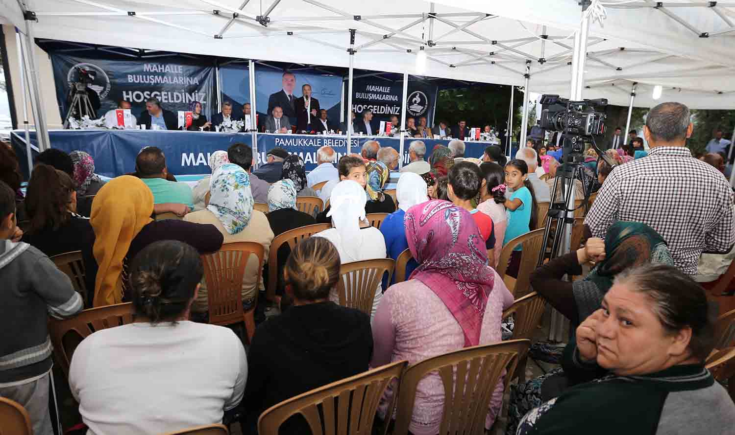 Pamukkale Belediye Başkanı Hüseyin Gürlesin, kıştan sonraki ilk mahalle toplantısının Karakova’da düzenlendiğini kaydederek, “68 mahallemizde şuana kadar 34 buluşma yaptık. 35. buluşmamızı ise burada gerçekleştiriyoruz. Sizlere neler yaptığımızı ve neler yapacağımızı aktaracağız ardından sizleri dinleyerek görüş ve beklentilerinizi alacağız. Tüm ekibimle birlikte burada sizlerin sorunlarını burada alarak çözüm yolu arayacağız. Farklı olduğumuzu bilmenizi isterim. 16 Nisan’da referandum oldu. Biz referandumdan sonra da bu toplantılarımız sürdürüyoruz. Mahalle buluşmalarını ilk defa bizler başlattık. Buna ek olarak halk günleri düzenliyoruz. Nedeni ise sizlerin dertleriyle dertlenip daha fazla hizmet etmektir. Tüm vatandaşlarımızı oraya da davet ediyoruz” dedi.