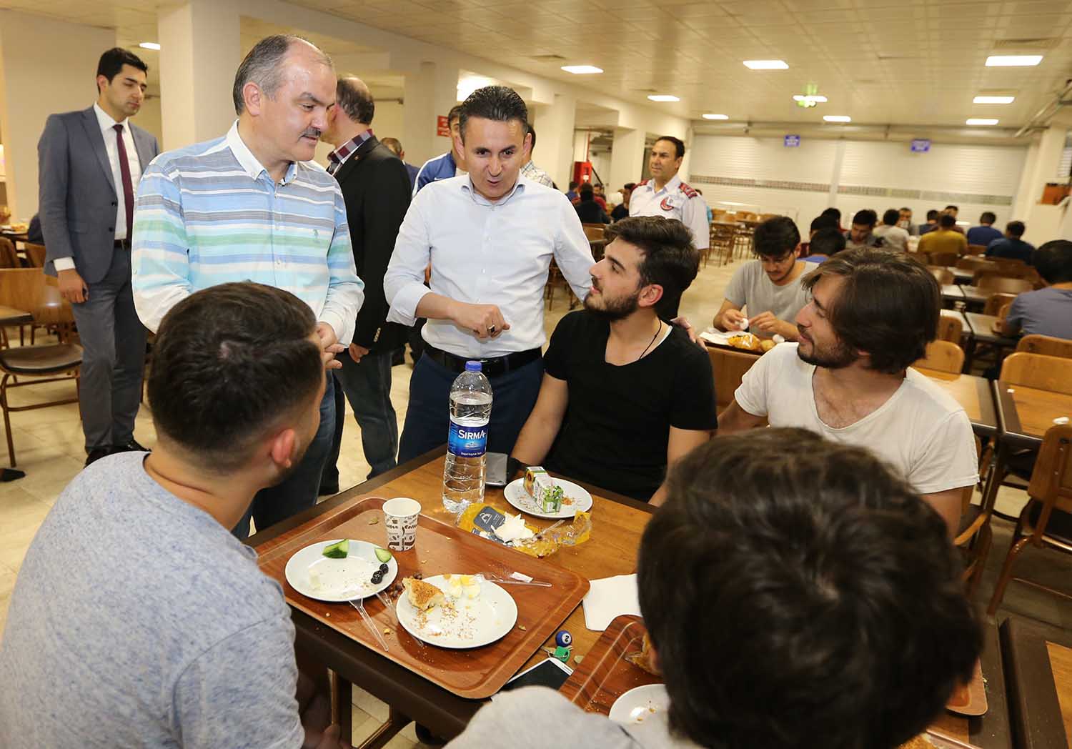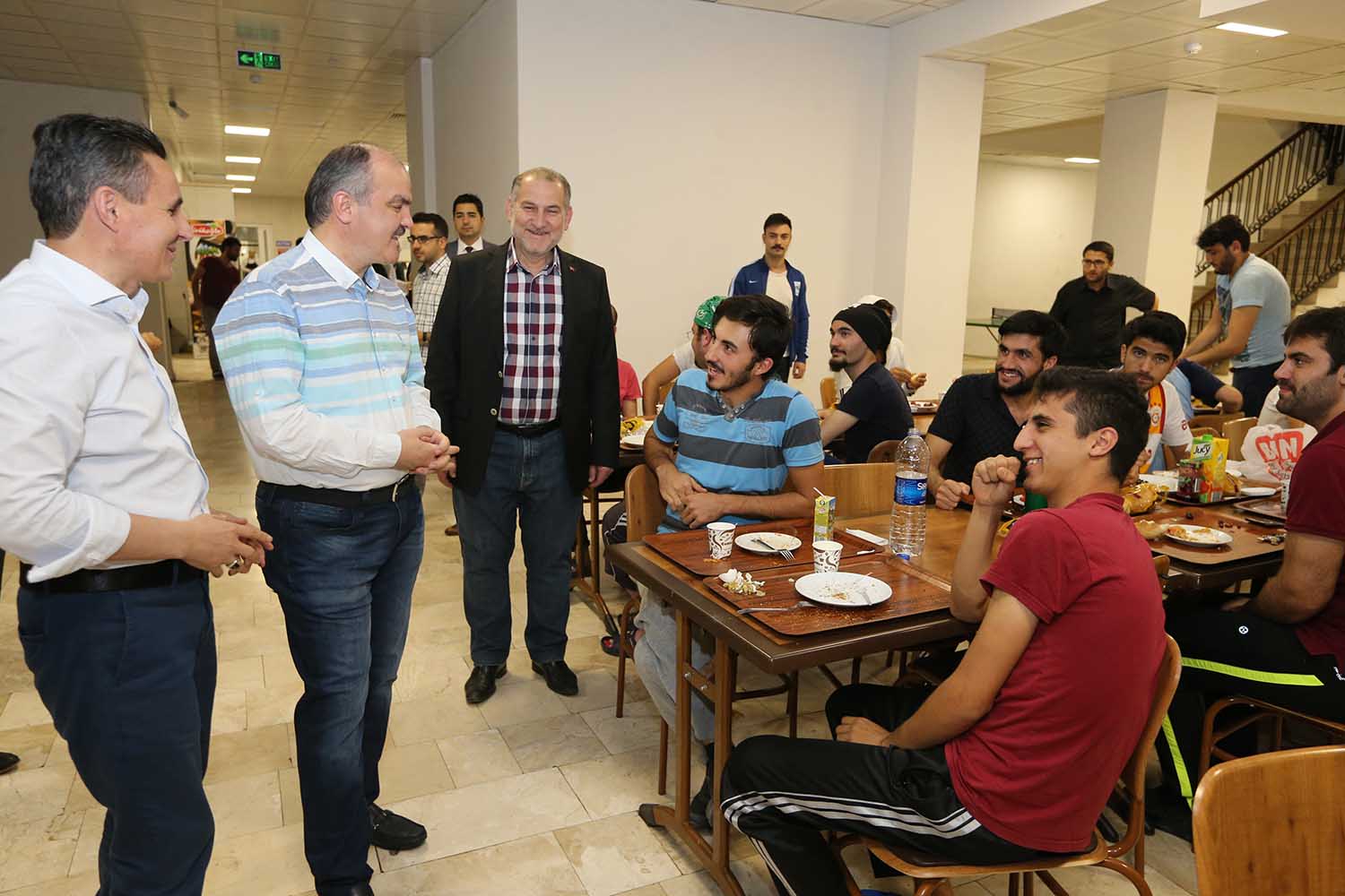 Pamukkale Belediye Başkanı Hüseyin Gürlesin, Denizli Kredi Yurtlar Kurumuna bağlı Prof. Dr. Cevat Akşit Öğrenci Yurdu’nda kalan üniversiteli gençlerin sahur sofralarına misafir oldu. Üniversiteli öğrencilerle sahurda bir araya gelen Başkan Gürlesin, “Bugün siz gençlerimizle Ramazan ayında bir sahur ortamında bir araya gelmekten dolayı çok mutlu olduk” dedi.