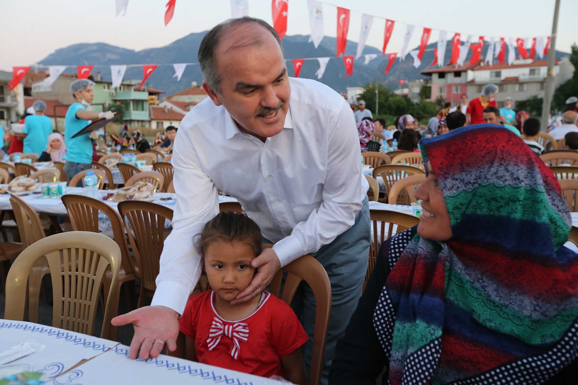 “Rahmet ve bereket ayı olan on bir ayın sultanı ramazan ayının son iftarında da sizlerle bir arada olmaktan dolayı çok mutluyuz” diyen Pamukkale Belediye Başkanı Hüseyin Gürlesin, “ Ramazan’ın manevi atmosferinde aynı sofrada buluşmak, aynı lokmayı paylaşmak, gönül sofrasında bir araya gelmek bizler için büyük bir nimet. Bizler Pamukkale Belediyesi olarak farklı mahallelerde iftar sofraları düzenledik. Amaç daha fazla insanımıza ulaşabilmek. Amacımız insanlarımızdan ayrı olmadığımızı, sizlerden farklı düşünmediğimizi göstermek. Belediye Başkanı olduk, makam sahibi olduk diye sizlerden farklı ne yaşantımız var, ne insanlara bakış açımız var. Ve ramazan ayının güzelliği, özelliği açısından da bakarsak, kardeşçe aynı sofrada buluşmak anlamında, sizlerle bugün burada bir aradayız” dedi.