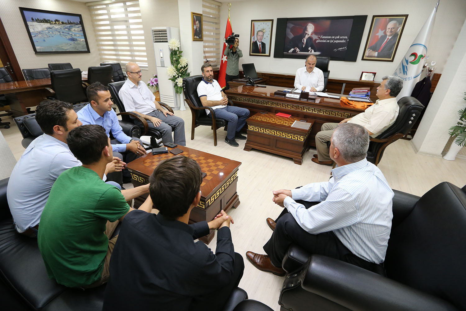 Pamukkale Belediyesi’nin Sağlık İşleri Müdürlüğü’ne bağlı ilaçlama ekibi larva ile mücadele kapsamında geçtiğimiz ay Gözler’den dönerken Eymir yakınlarında fark ettikleri orman yangınına müdahale ederek, binlerce dekarlık ormanı kül olmaktan kurtarmıştı. Pamukkale Belediye Başkanı Hüseyin Gürlesin, ilaçlama ekibinde yer alan Mustafa Arıkan, Ali Selçuk, Ömer Gürsoy, Bilal Topkara, Recep Yenil ve Mustafa Bıyıklı’nın bu örnek davranışını görmezden gelmeyerek kendilerine teşekkür belgesi taktim etti. Pamukkale Belediyesi Başkanlık makamında gerçekleşen teşekkür belgesi taktim törenine Başkan Yardımcısı Veli Demir, Pamukkale Belediyesi Sağlık İşleri Müdürü Murat Altun’da katıldı.