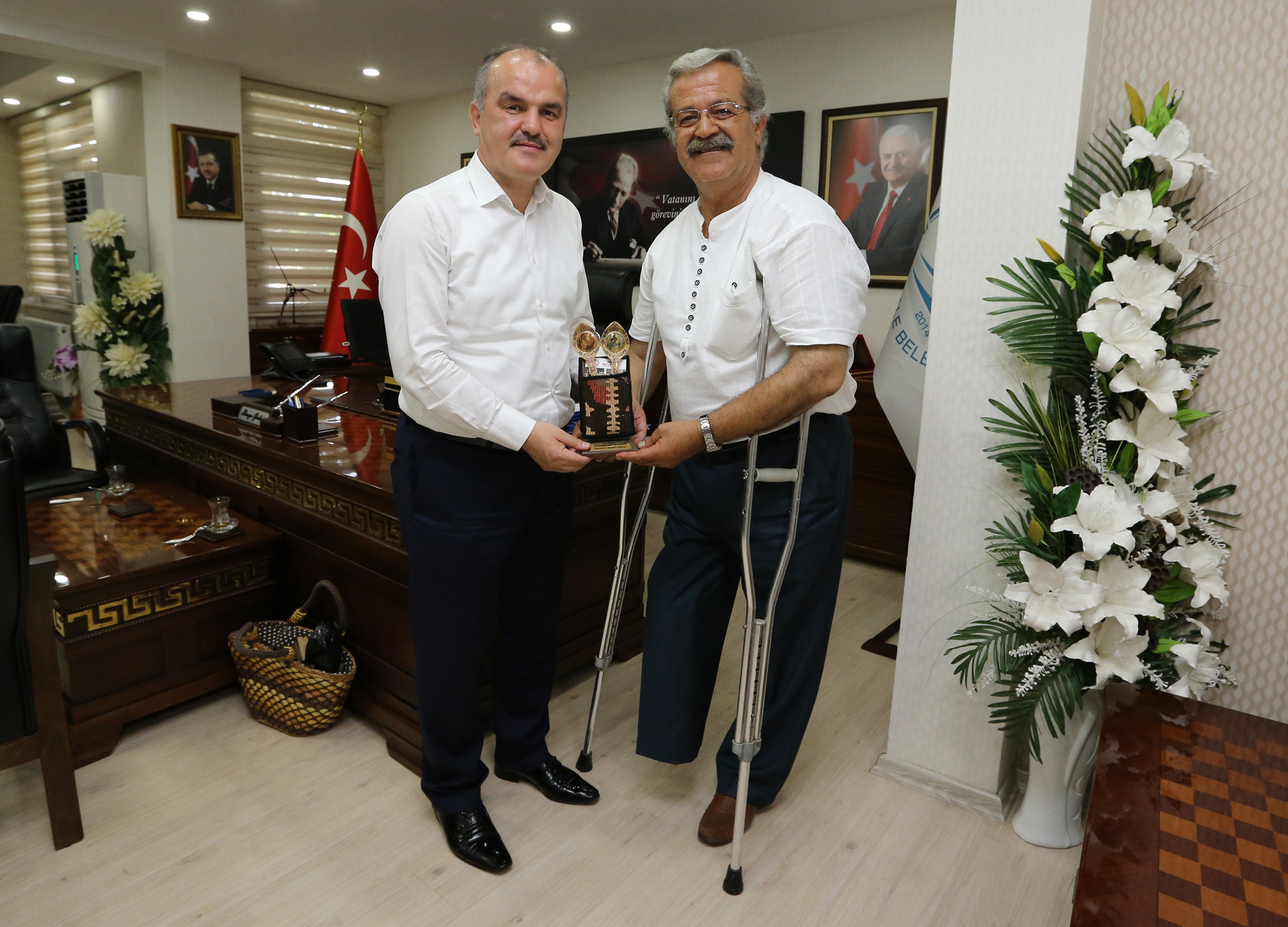 Sonradan engelli bir birey haline gediğini söyleyen Konyalı kaşık ustası, Kültür Bakanlığı’nın ölmeye yüz tutmuş mesleklerin yaşayan ustaları kapsamında Kültür Sanatçısı olduğunu ifade etti. UNESCO Sanatçılığı, Yaşayan Kültür Hazinesi, 2015 yılı Ahilik unvanı ödüllerinin de sahibi olduğunu da belirten Konya'da tahta kaşık oymacılığı sanatının son temsilcilerinden olan Mustafa Sami Onay, “Sayın başkanımızın engellilere yönelik yapmış olduğu destekleri çok iyi biliyoruz. Kendisiyle gurur duyuyoruz. Allah başımızdan eksik etmesin. Gerek sporda, eğitimde, gerek maneviyatta, gerek birebir ziyaretlerinde engellilere ne kadar yardımcı olduğunu, biz Konya’dan duyuyoruz, görüyoruz, takip ediyoruz ve gurur duyuyoruz. Her yerde böyle başkanlarımız olsun diyoruz. Kendisine teşekkür ziyaretine geldik kabul etti. Allah ondan razı olsun. Gönül kapısını geniş eylesin” dedi. Denizli’ye sık sık geldiğini belirten Onay, dışarıdan bir bakan birisi olarak, özellikle Pamukkale Belediyesi’nin gerek temizlikte, gerek mimari olarak, gerekse sosyal projeleri ile farklılığının farkında olduklarını söyledi. Onay, “Pamukkale’de engelsiz bir kent yaratabilmek için ellerinden gelen gayretin yapıldığını, dışarıdan birisi olarak söylüyorum, biz farkındayız. Engelsiz bir kent olduğunu, mimari manasında, temizlik manasında ve yardımseverliği manasında Pamukkale Belediyesi’nin farkının biz farkındayız” diye konuştu.