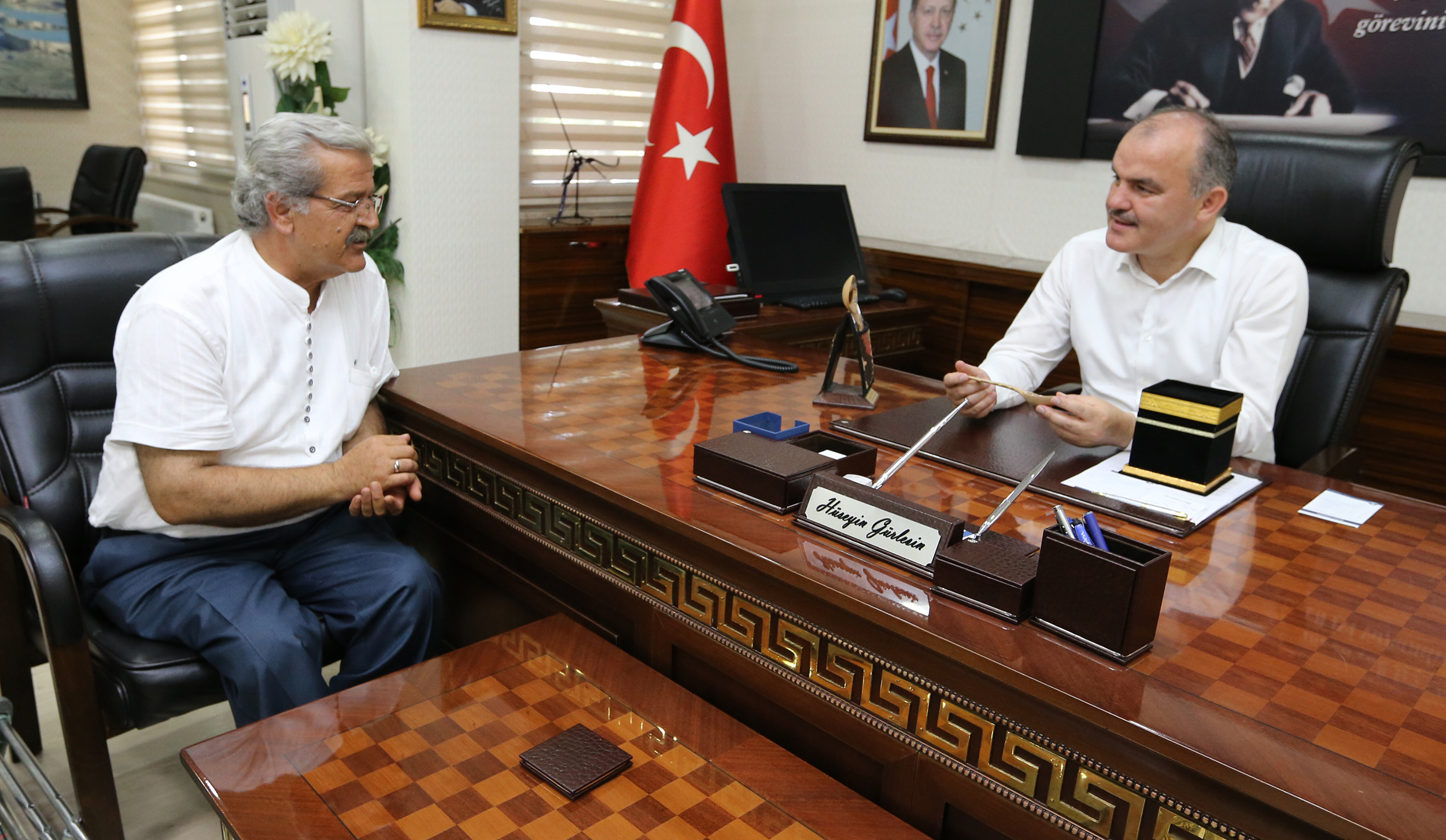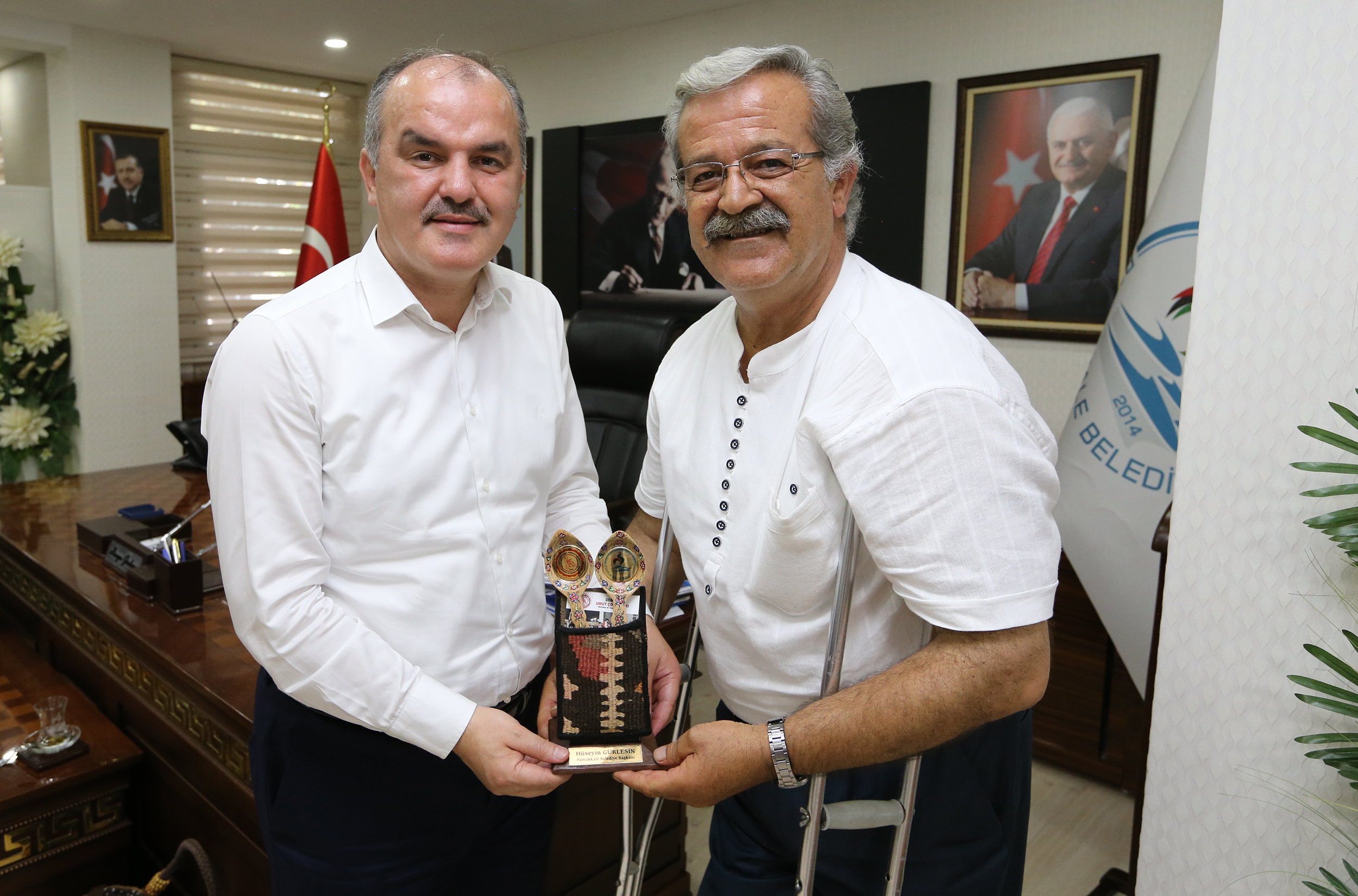 Konya'da tahta kaşık oymacılığı sanatının son temsilcilerinden olan Mustafa Sami Onay ve Denizli Umut Çocukları Derneği üyeleri, Pamukkale Belediye Başkanı Hüseyin Gürlesin’i makamında ziyaret etti. UNESCO ve Kültür Bakanlığı Sanatçısı, Yaşayan Kültür Hazinesi Ödülü sahibi, tahta kaşık oymacılığı sanatının son temsilcilerinden olan Mustafa Sami Onay Pamukkale Belediyesi’nin engellilere yönelik yaptığı çalışmalarını Konya’dan duyduğunu ve gurur duyduğunu belirtti.