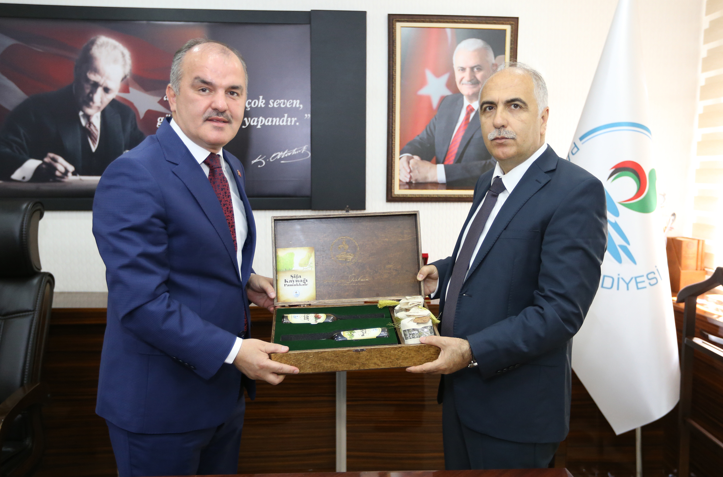 Pamukkale Belediye Başkanı Hüseyin Gürlesin, son Valiler Kararnamesi ile Denizli’ye atanana Vali Hasan Karahan’ı ağırladı. Başkan Gürlesin, ziyarette Vali Karahan’a ilçede yaptıkları yatırımlar ve projeler hakkında bilgiler verdi.